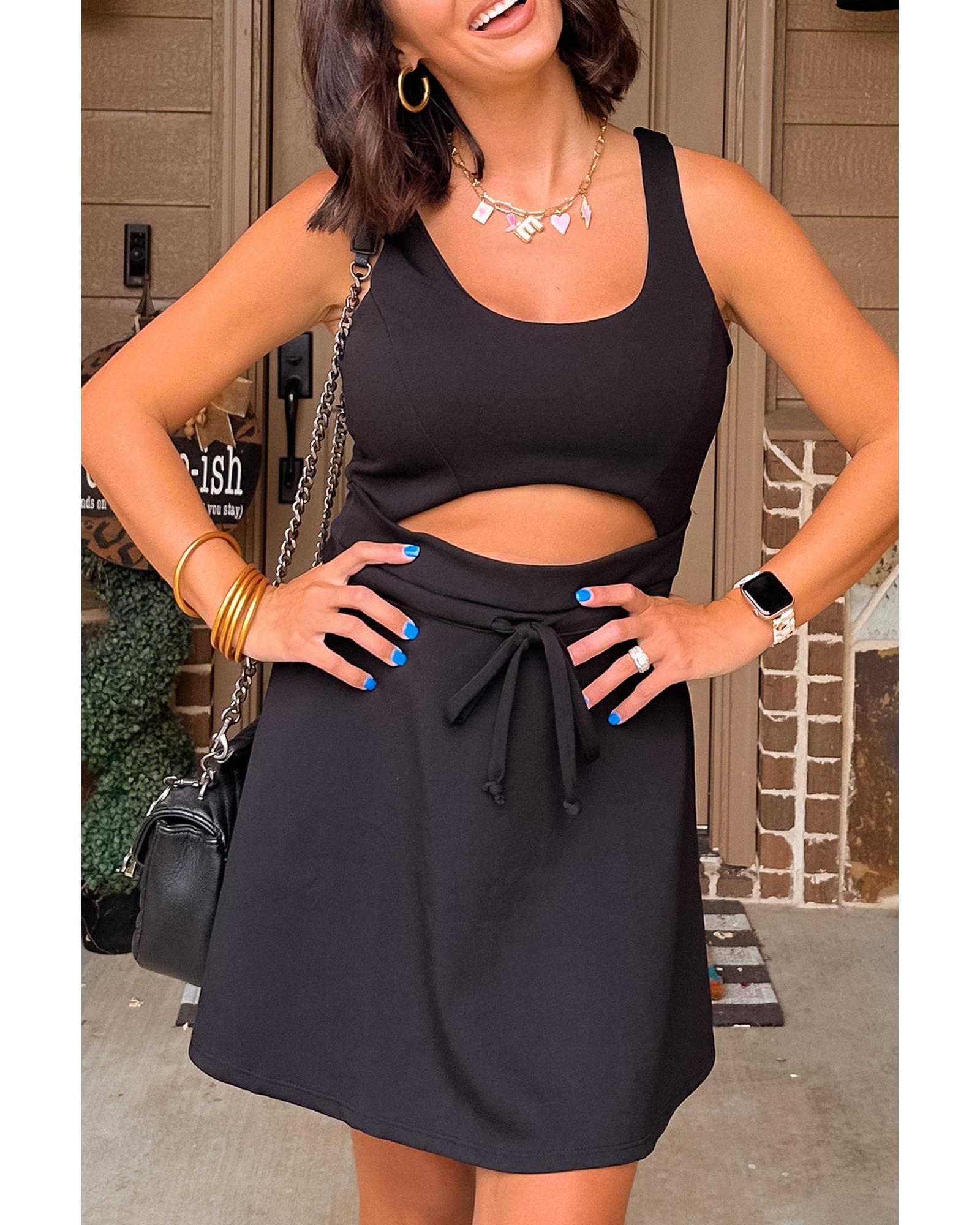 Black Cut Out Front High Waist Tank Mini Dress – L