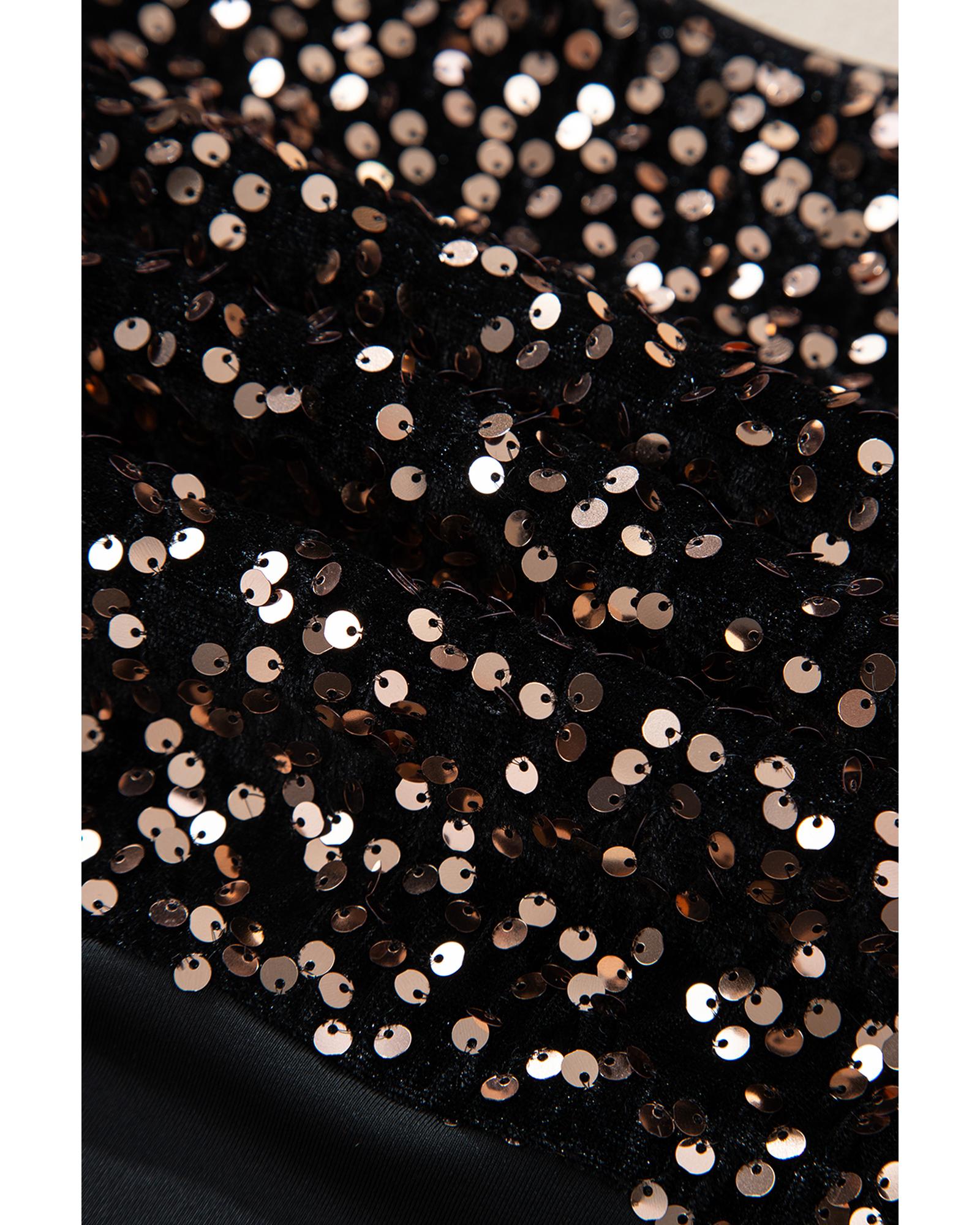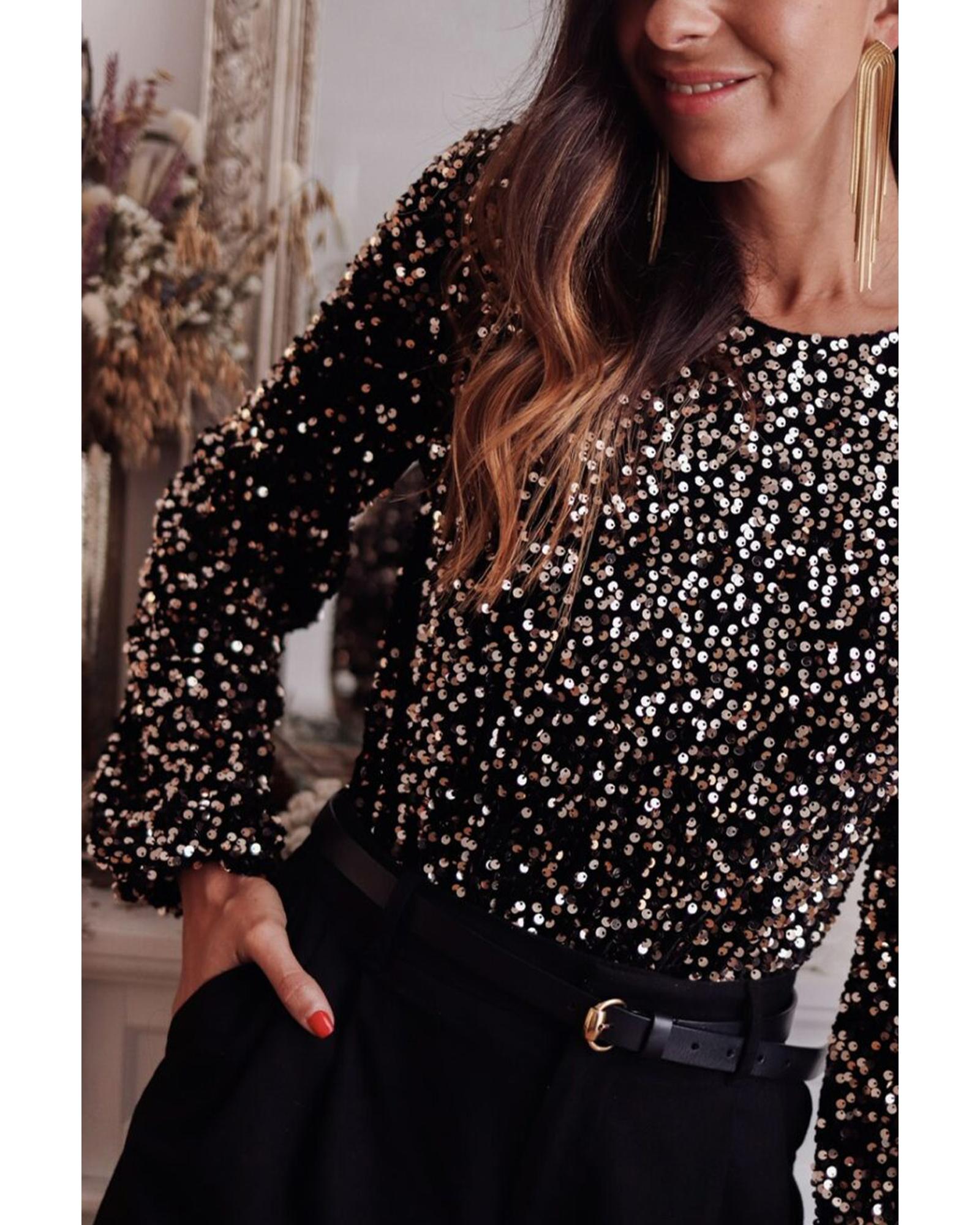Black Deep V Back Sequin Puff Sleeve Bodysuit – L