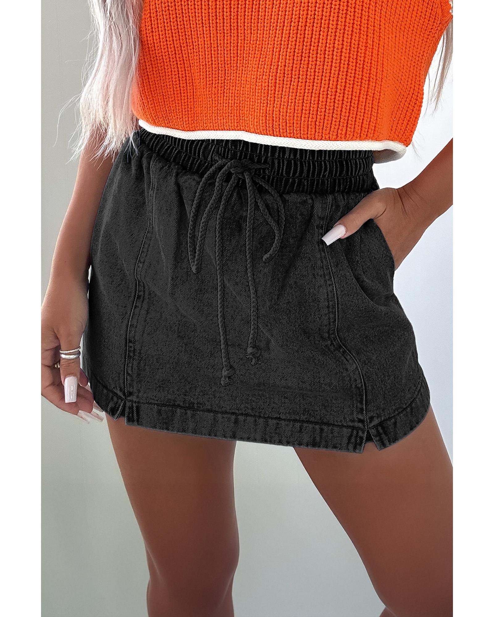 Black Drawstring High Waist Pocketed Denim Shorts – 12 US