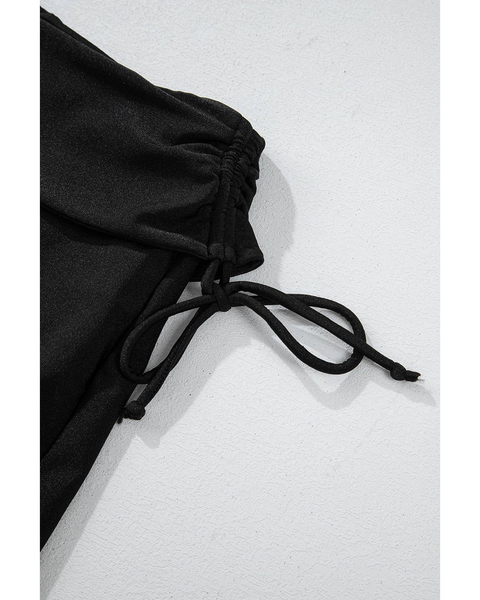 Black Drawstring Ruched High Waist Loose Swim Shorts - L
