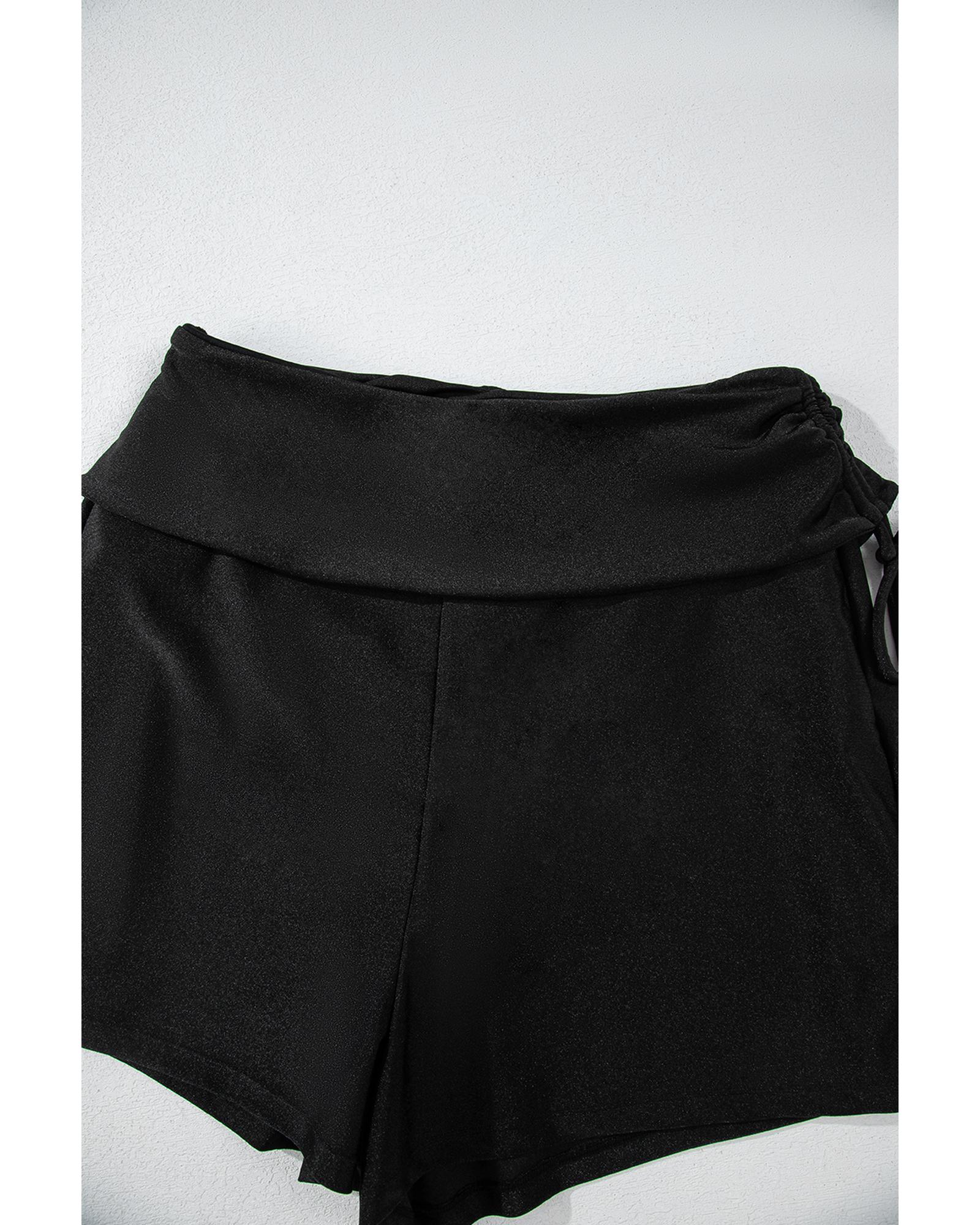Black Drawstring Ruched High Waist Loose Swim Shorts - S