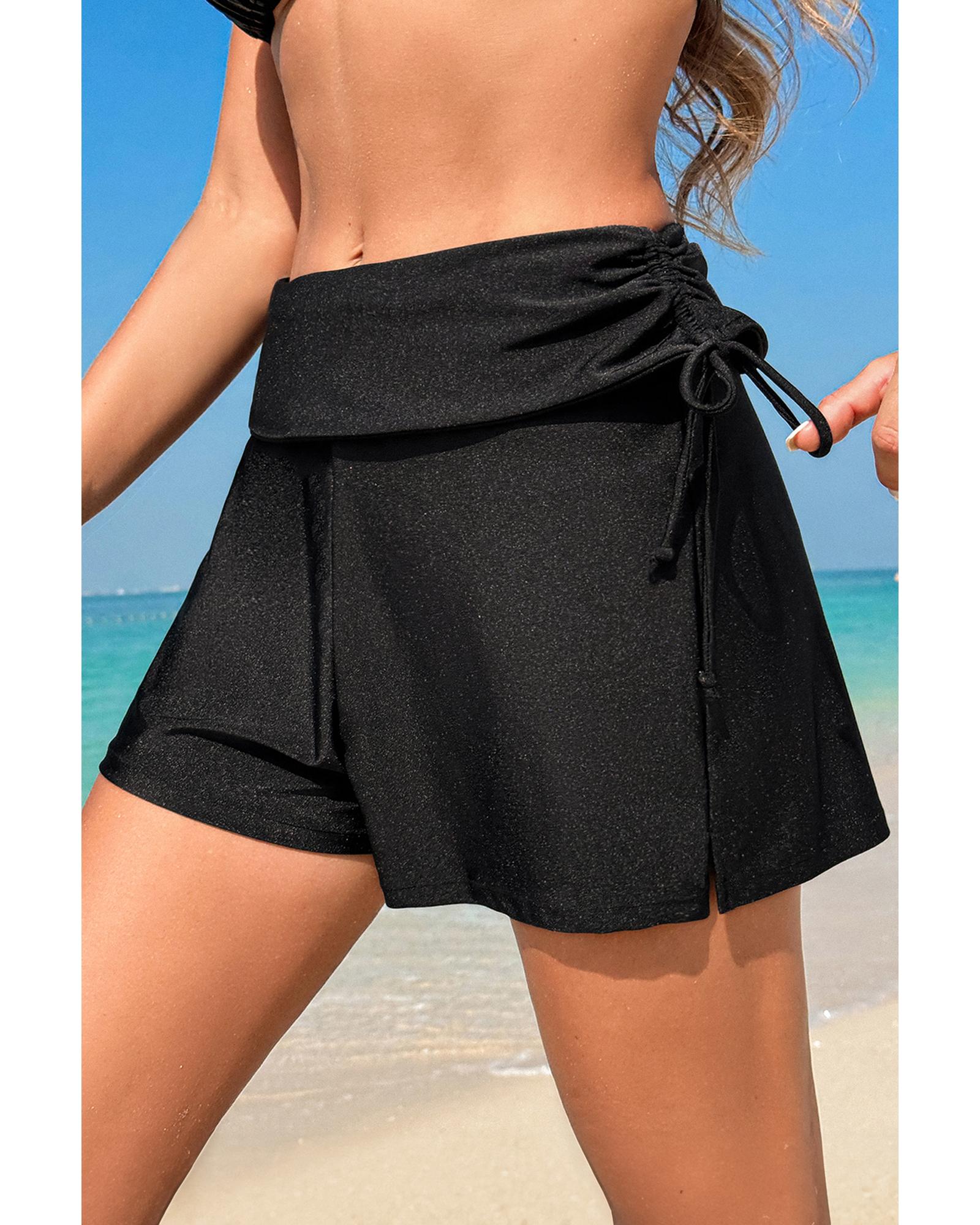 Black Drawstring Ruched High Waist Loose Swim Shorts – S