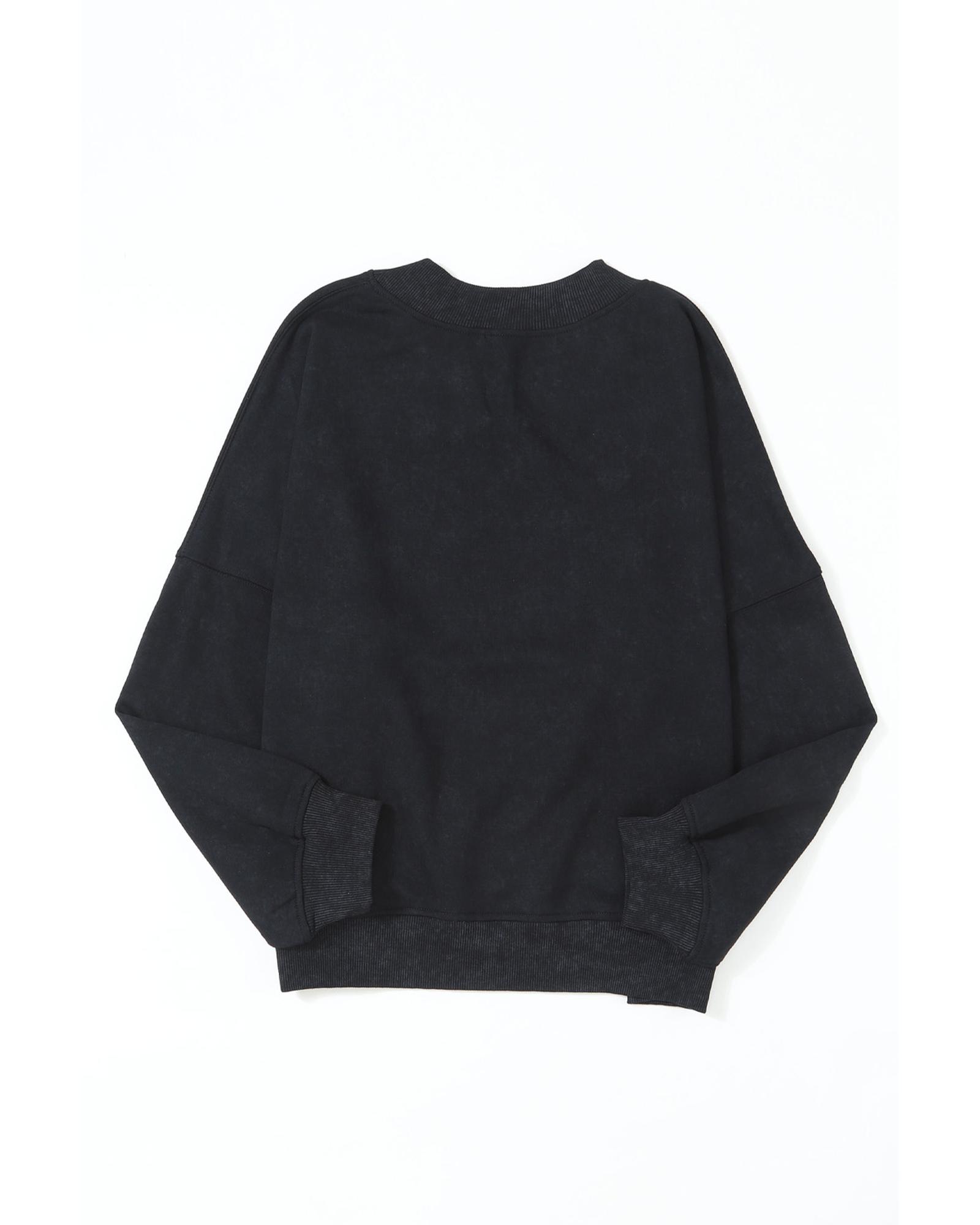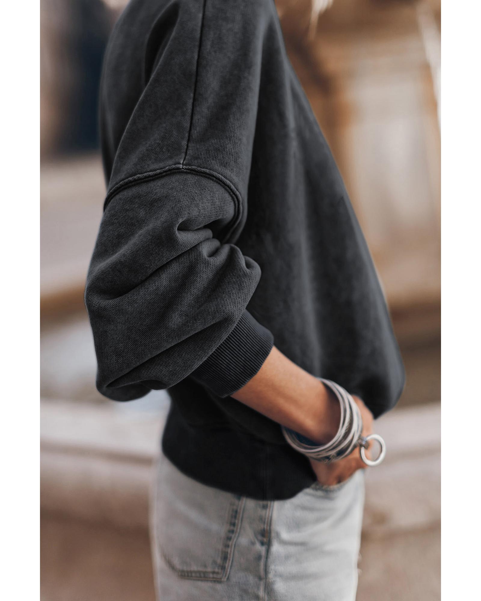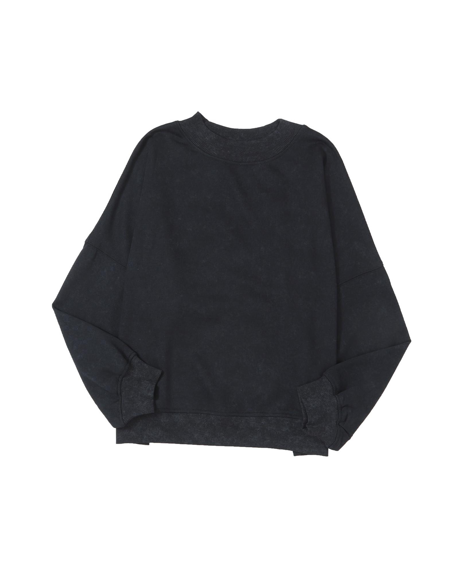 Black Drop Shoulder Crew Neck Pullover Sweatshirt – S