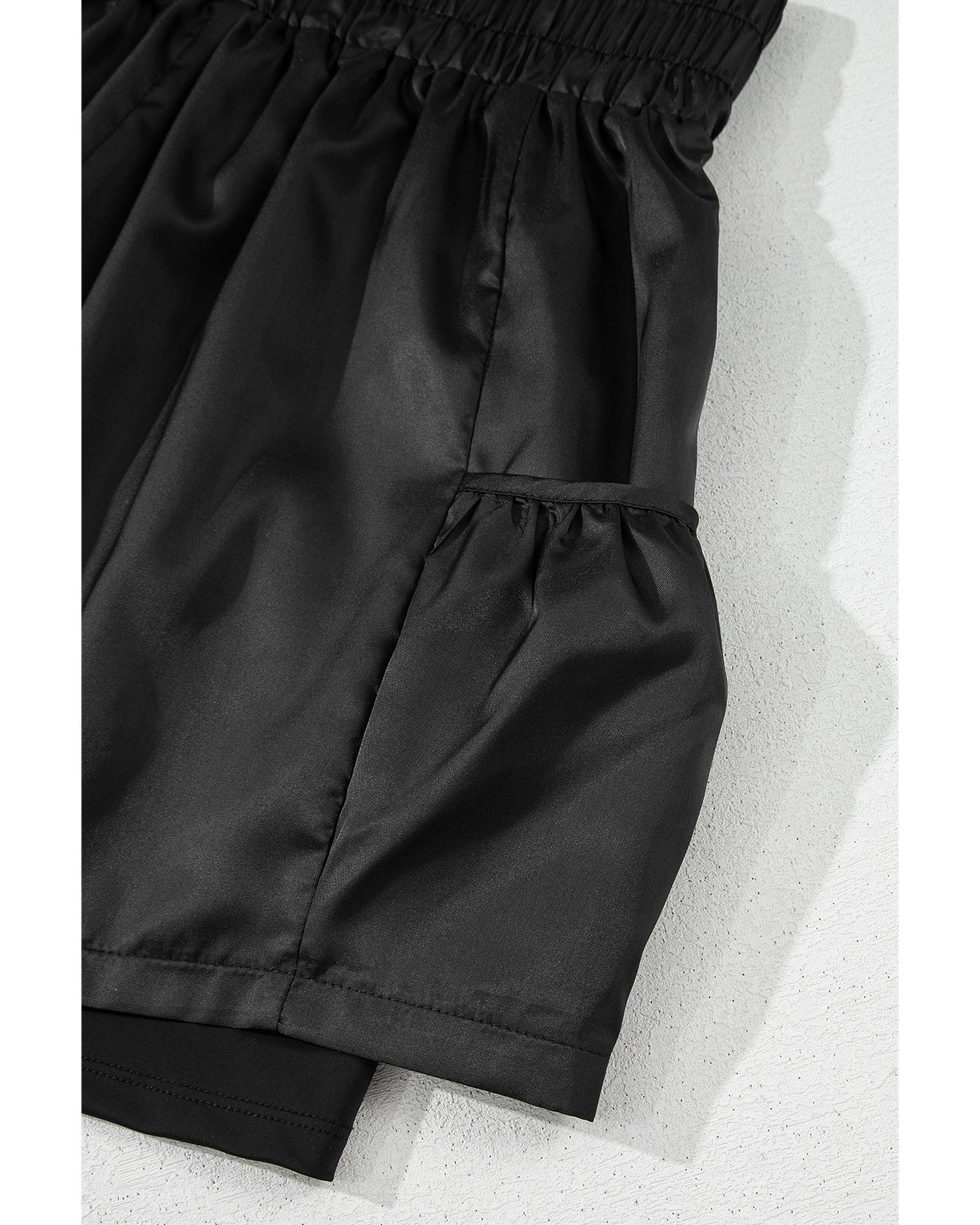 Black Elastic High Waist Pocketed Casual Shorts – L