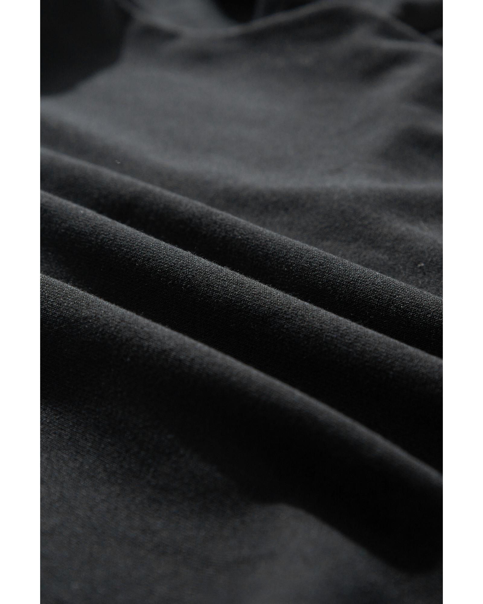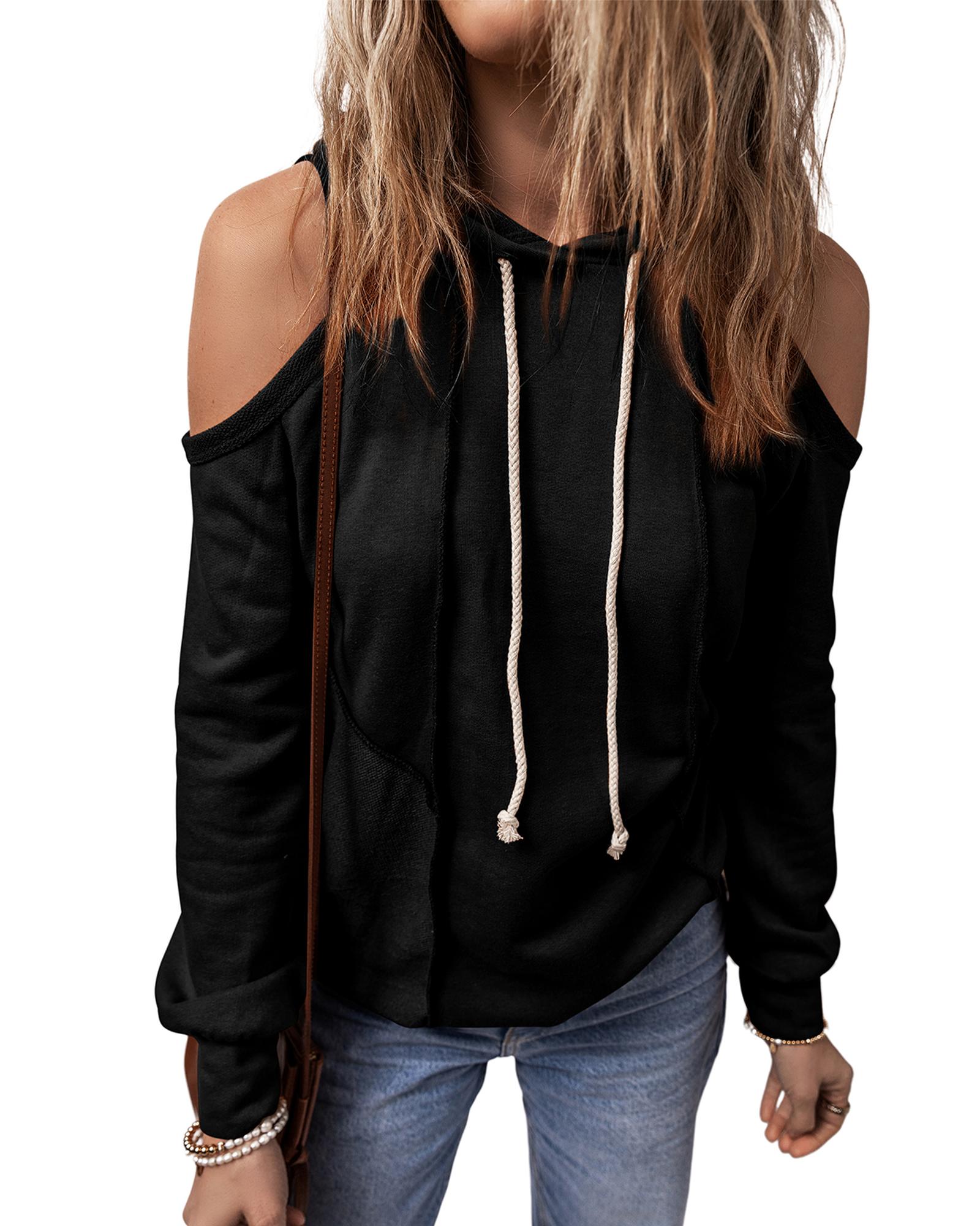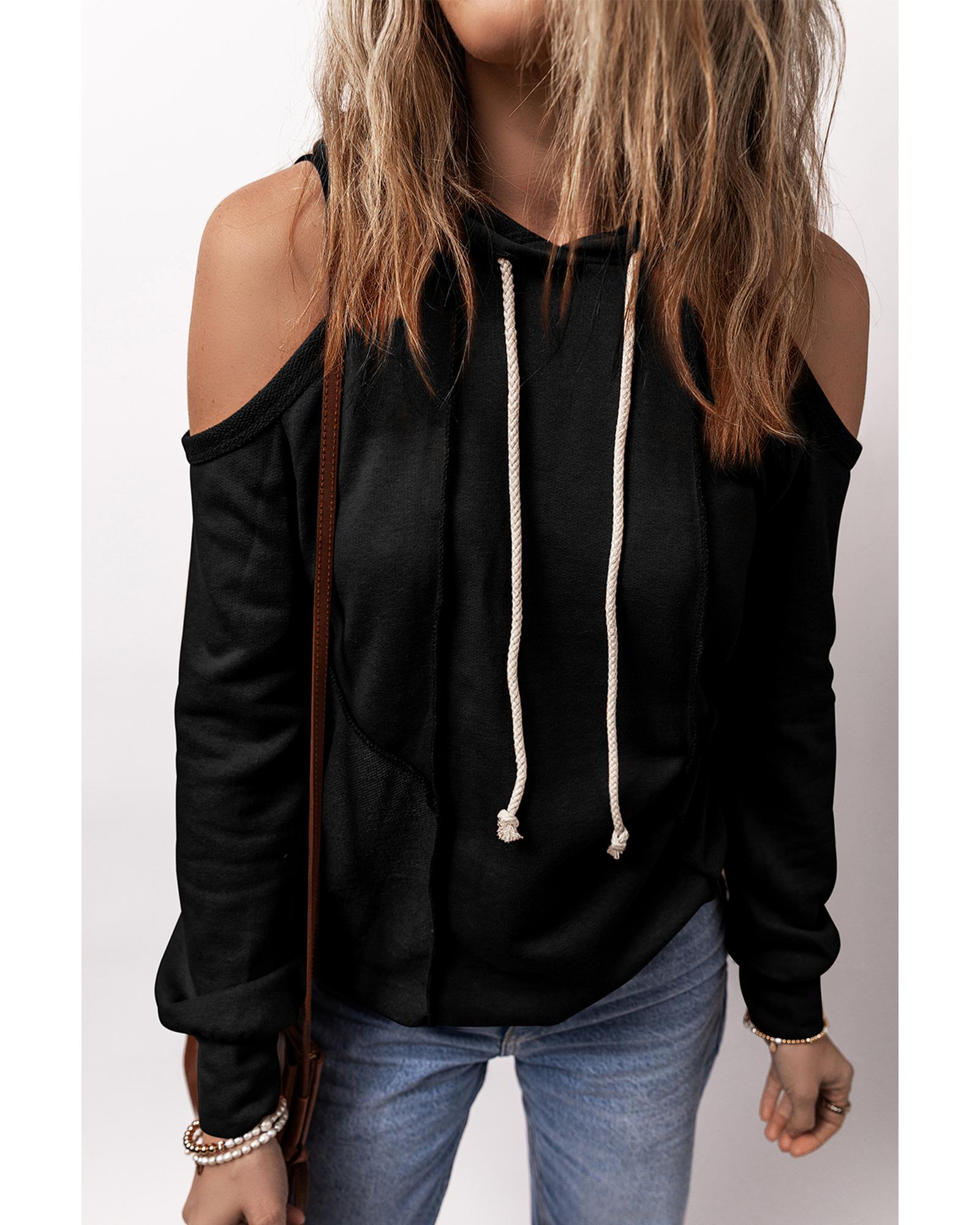 Black Exposed Seam Cold Shoulder Drawstring Hoodie – S