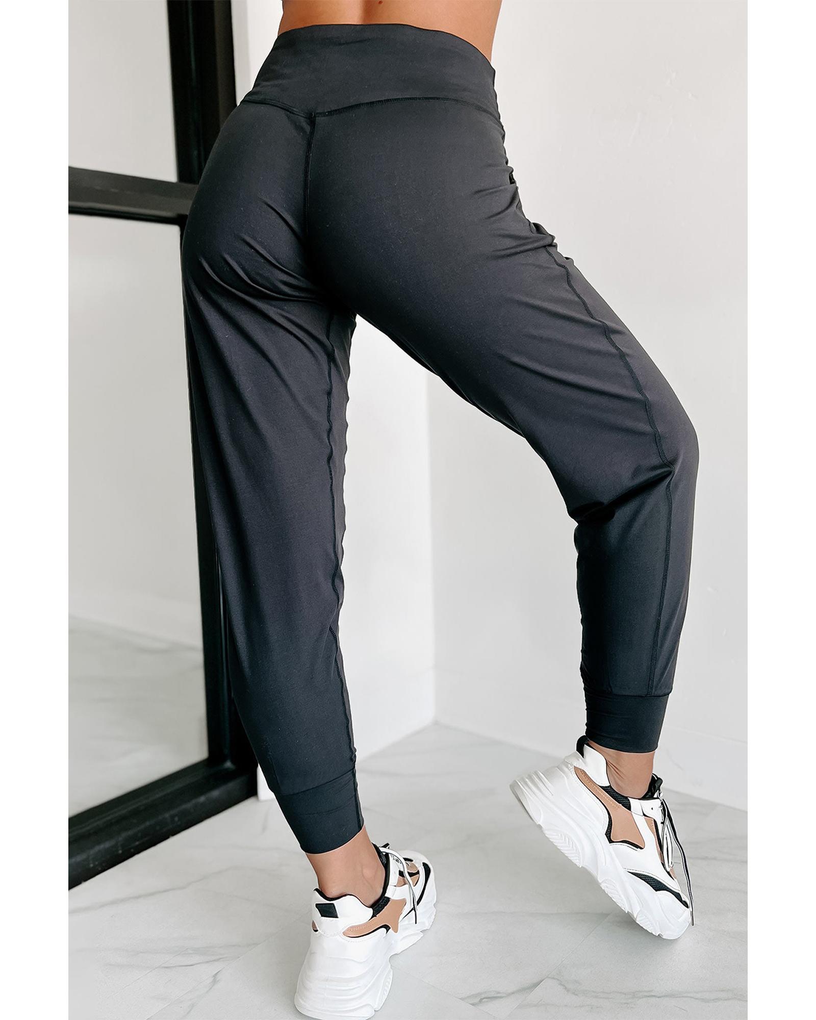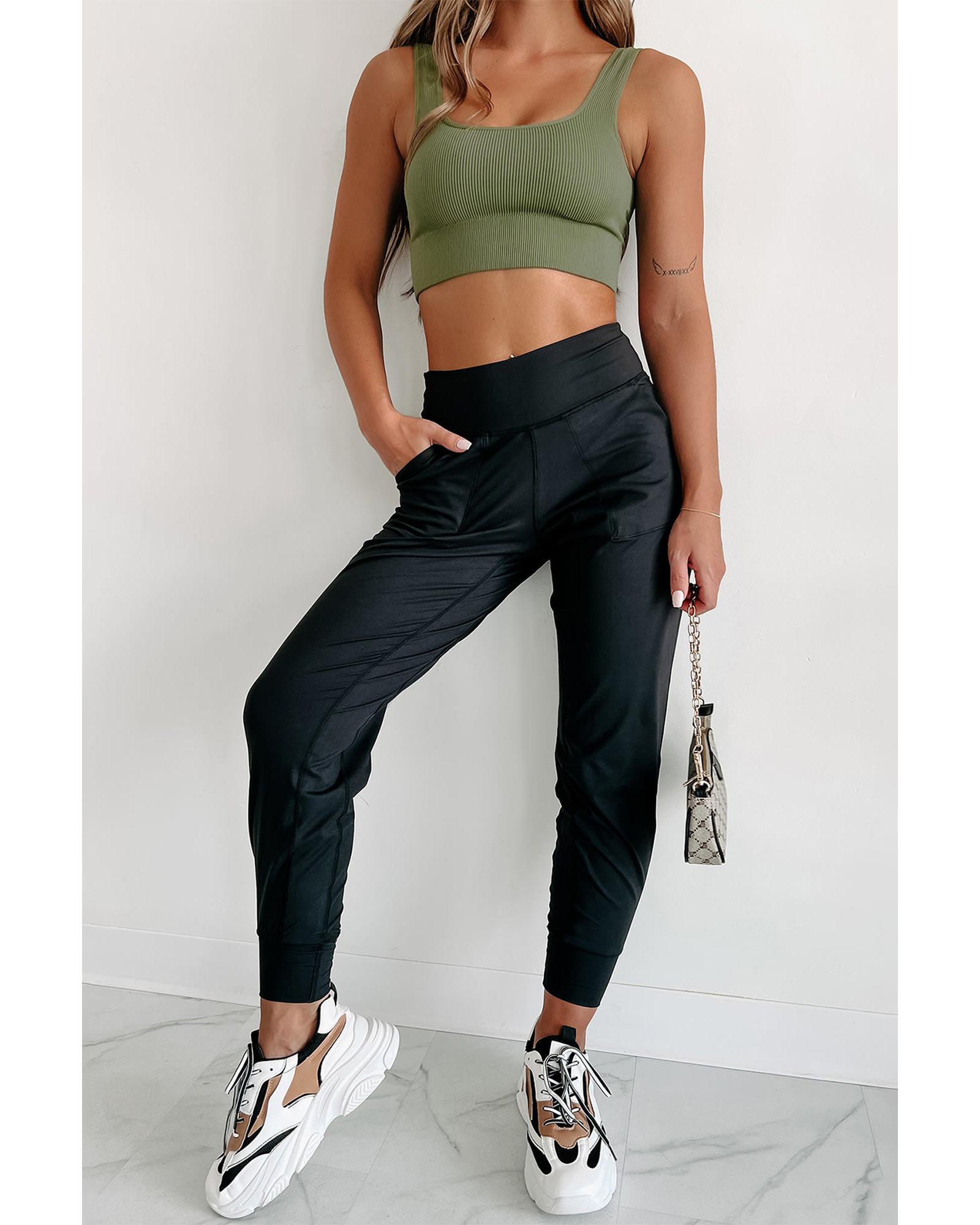 Black Exposed Seam High Waist Pocketed Joggers – XL