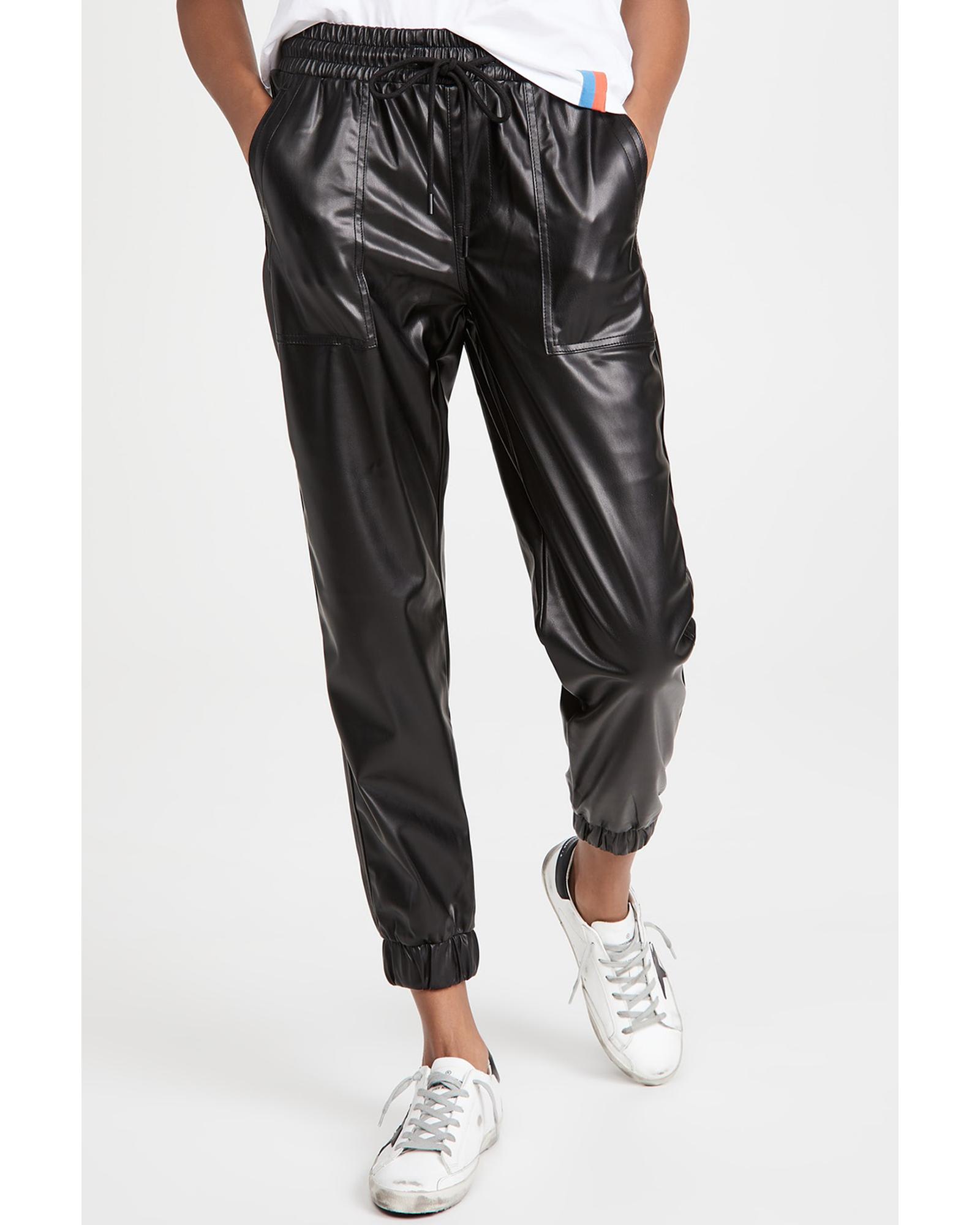 Black Faux Leather Ankle Smocked Waist Drawstring Joggers – XL