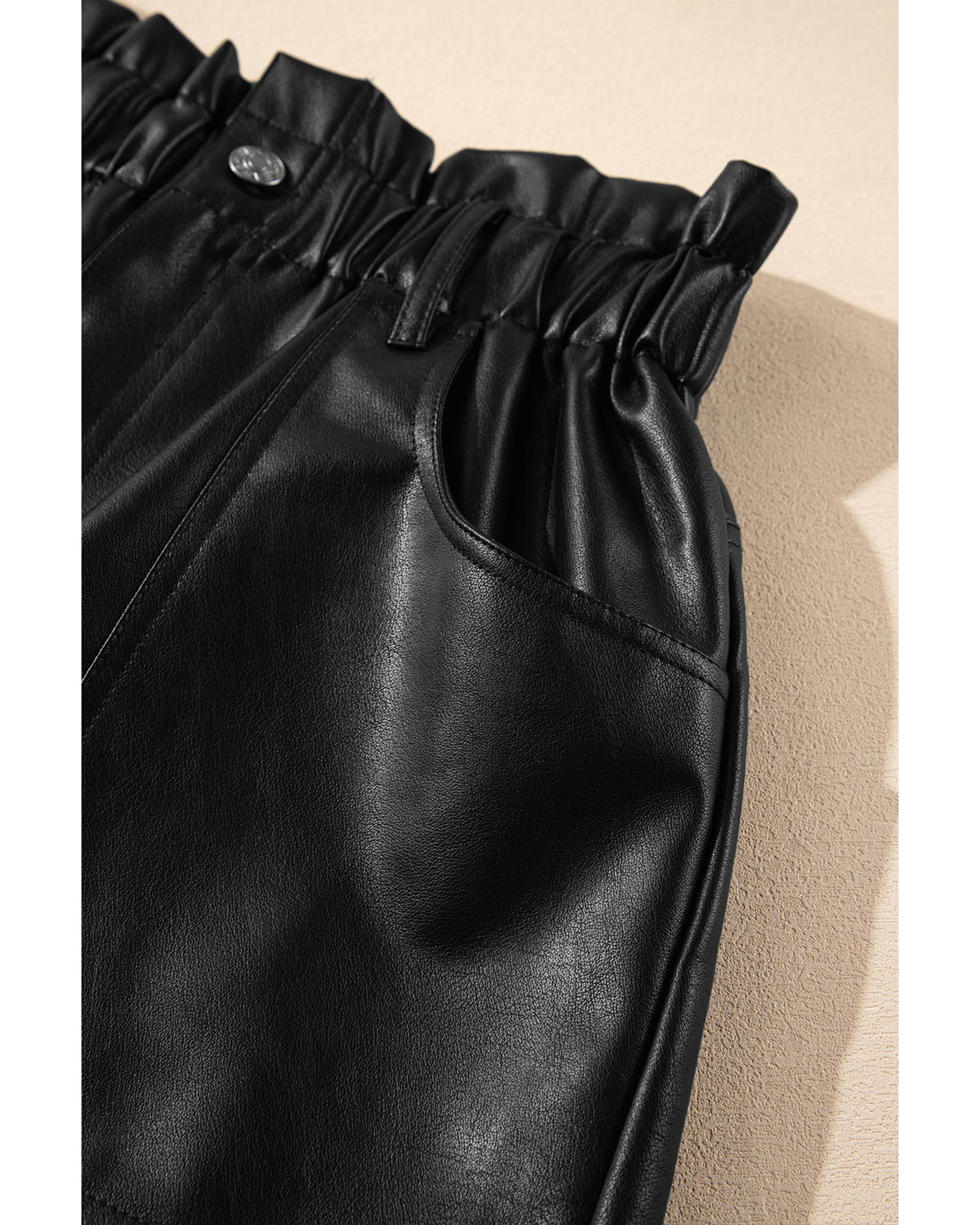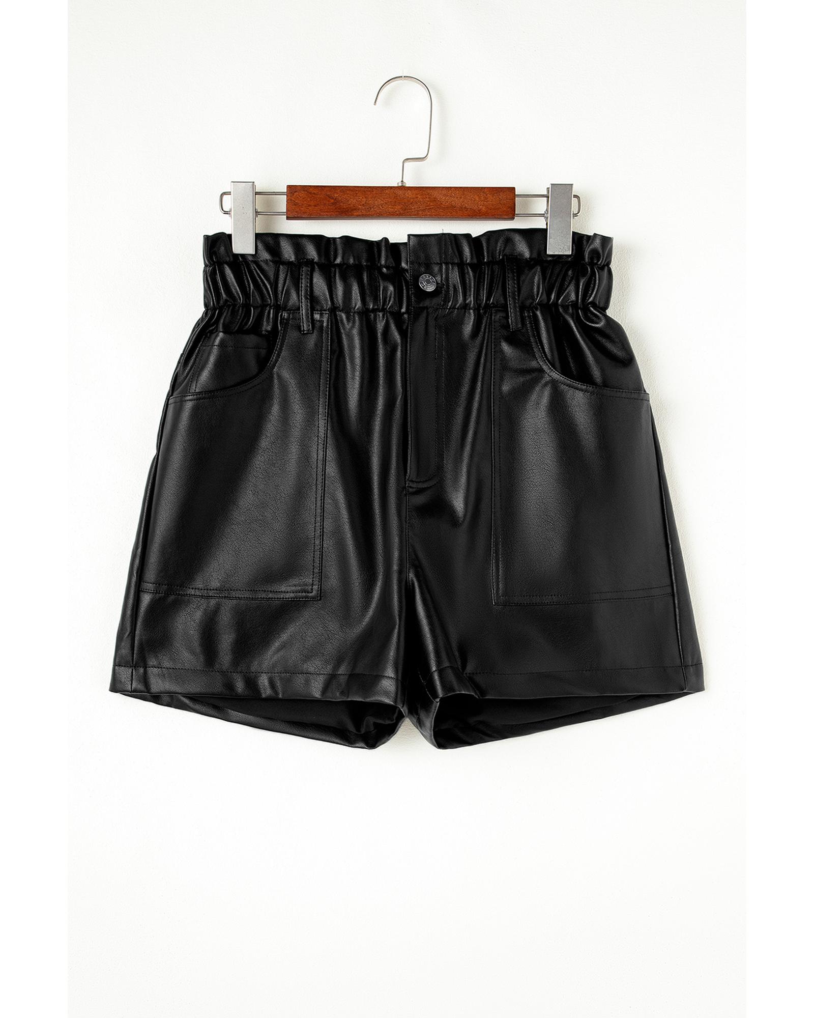 Black Faux Leather Paper Bag Waist High Rise Shorts – M
