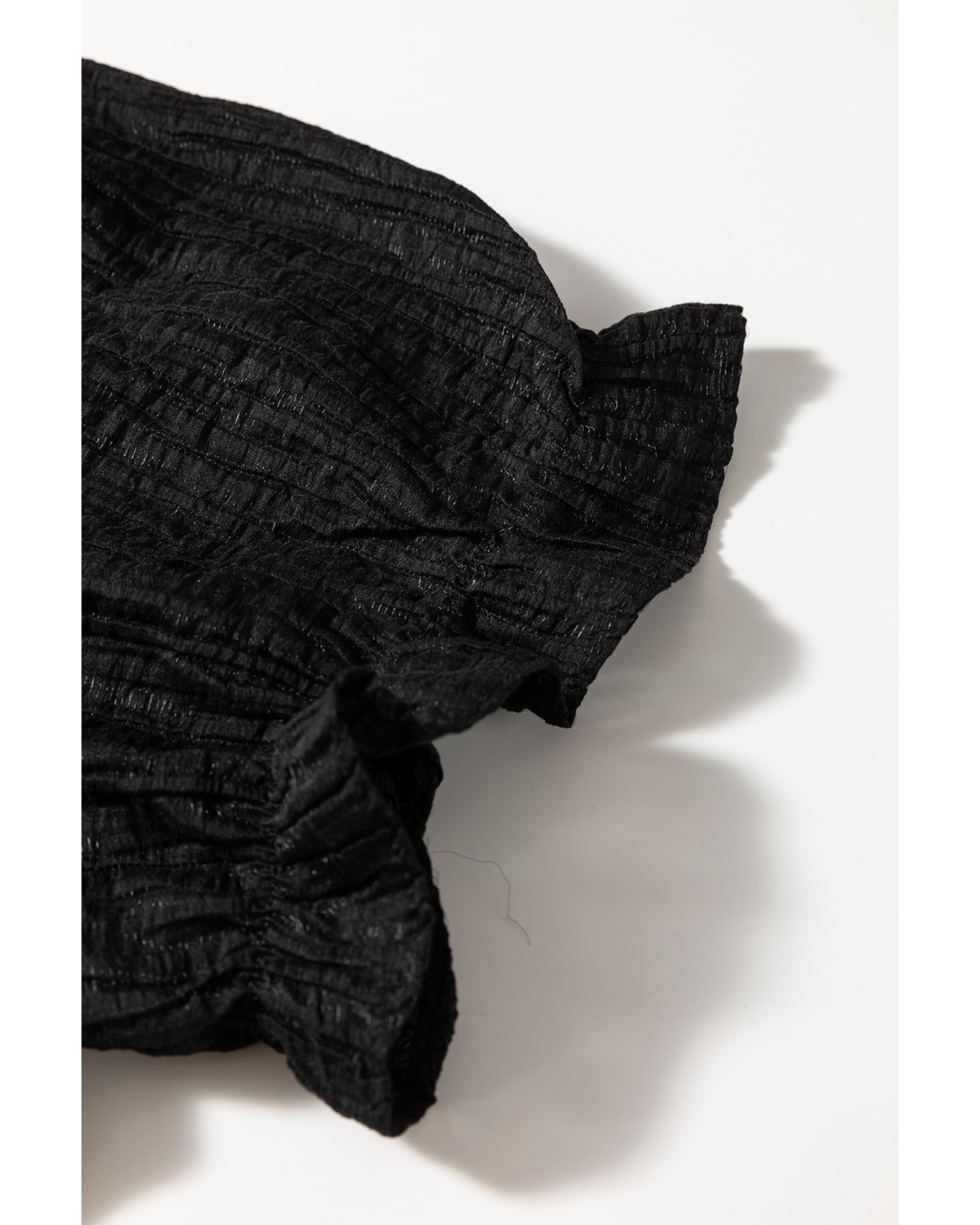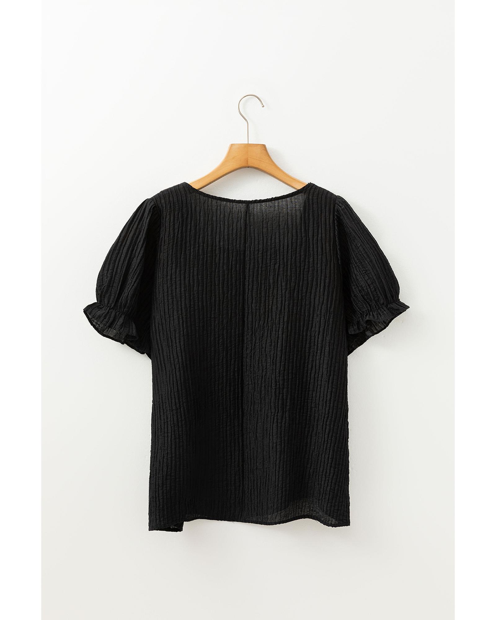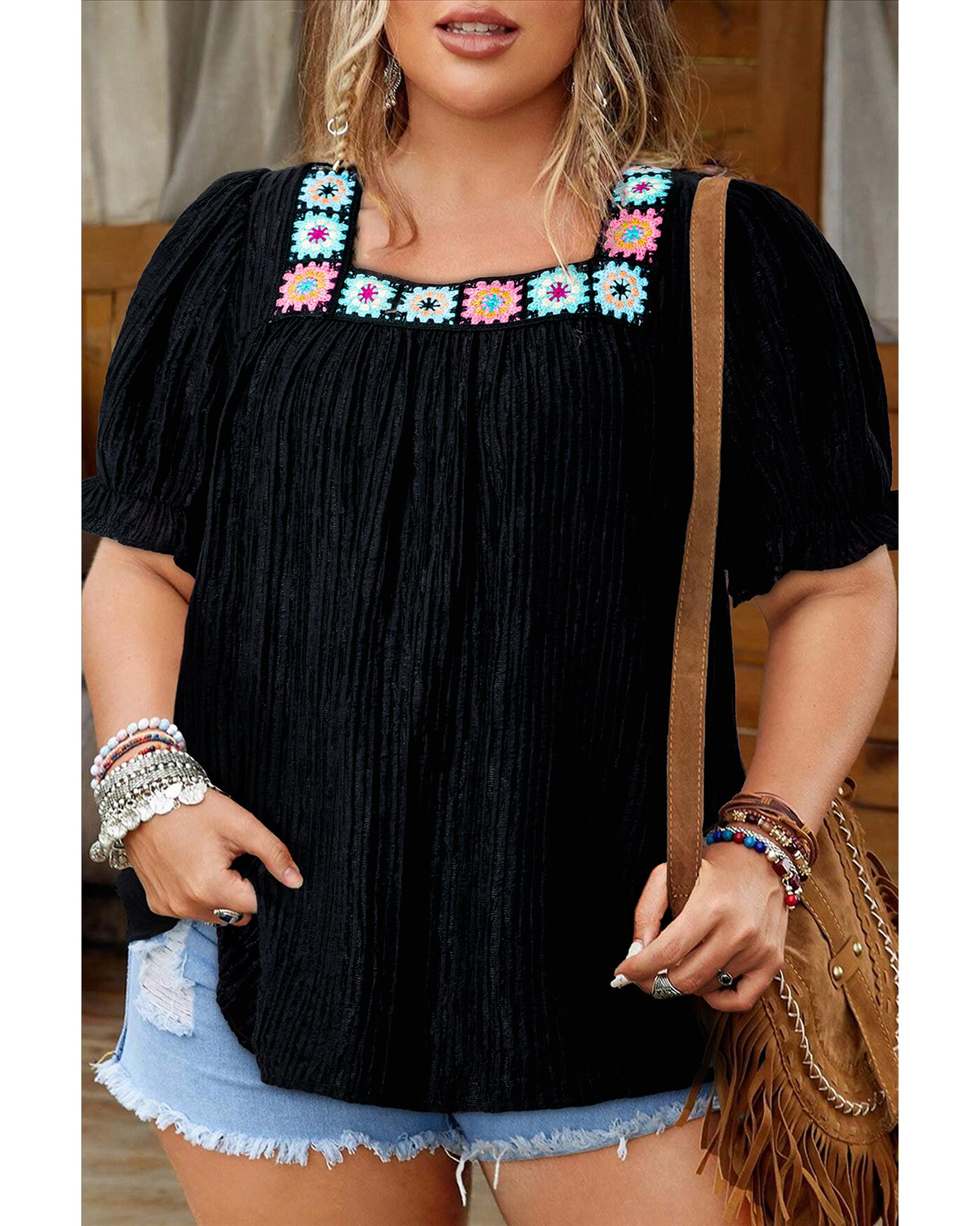 • Black Floral Crochet Square Neck Ruffled Short Sleeve Flowy Plus Size Top