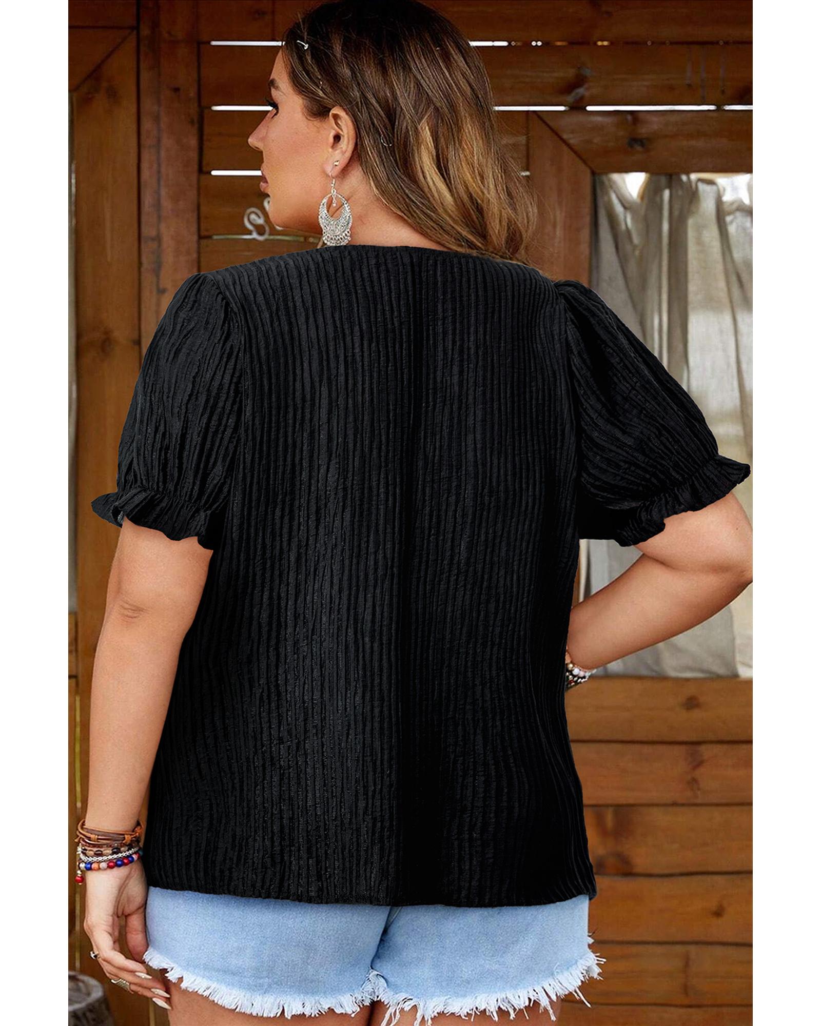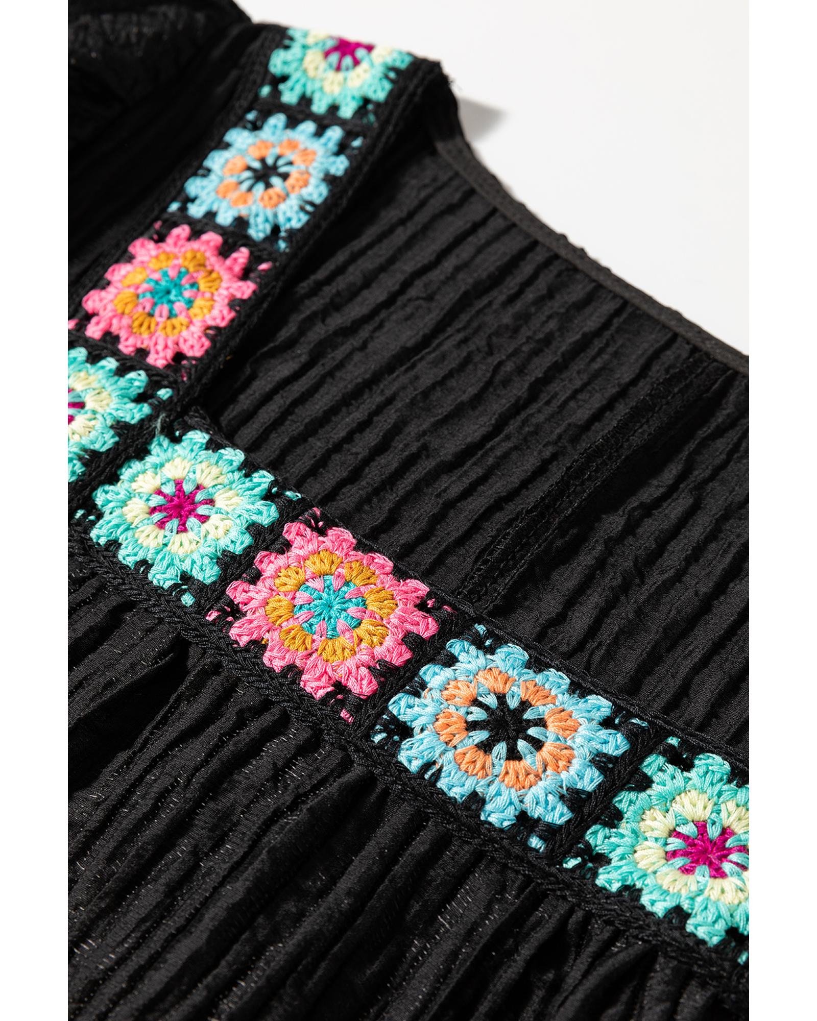 Black Floral Crochet Square Neck Ruffled Short Sleeve Flowy Plus Size Top – 1X