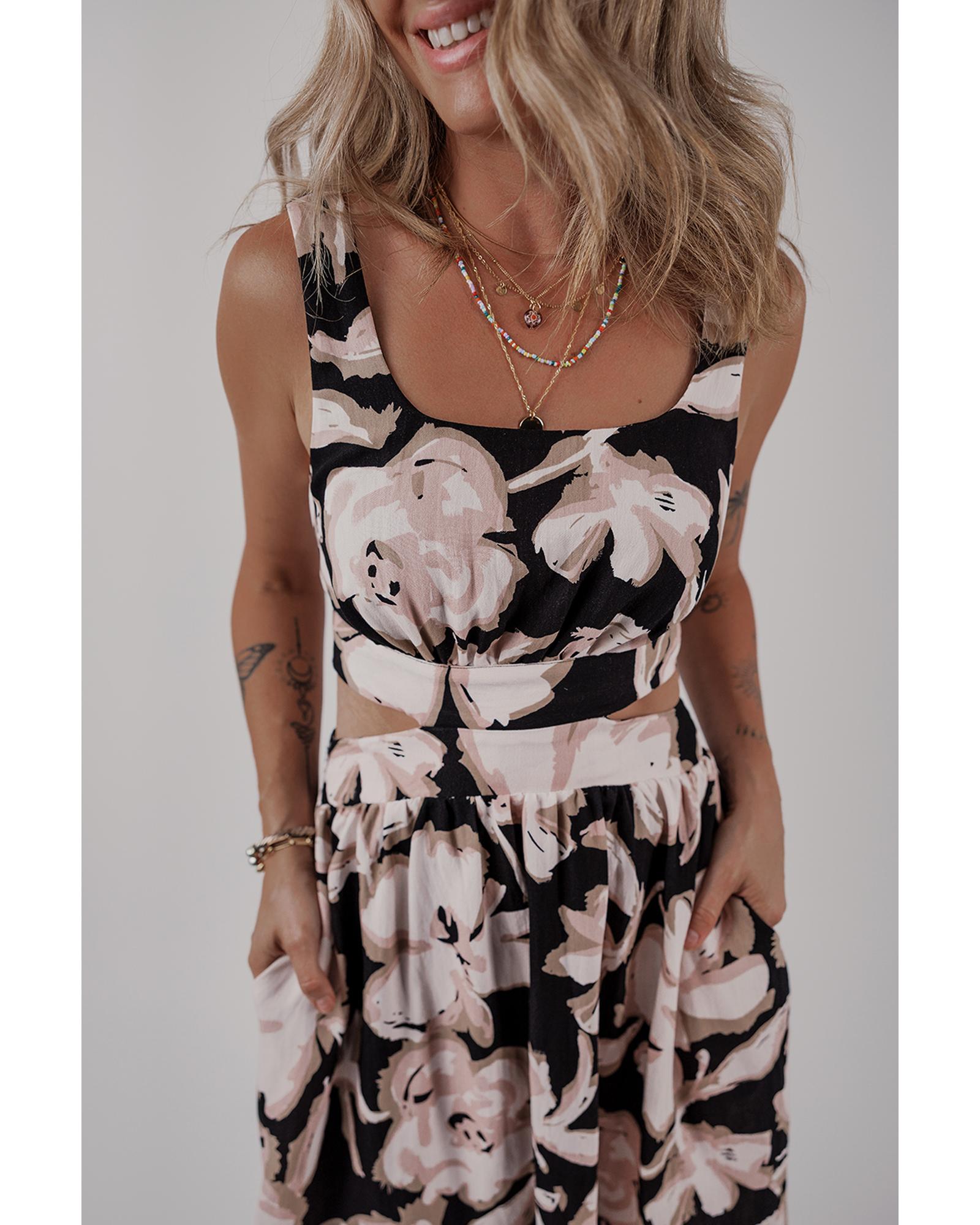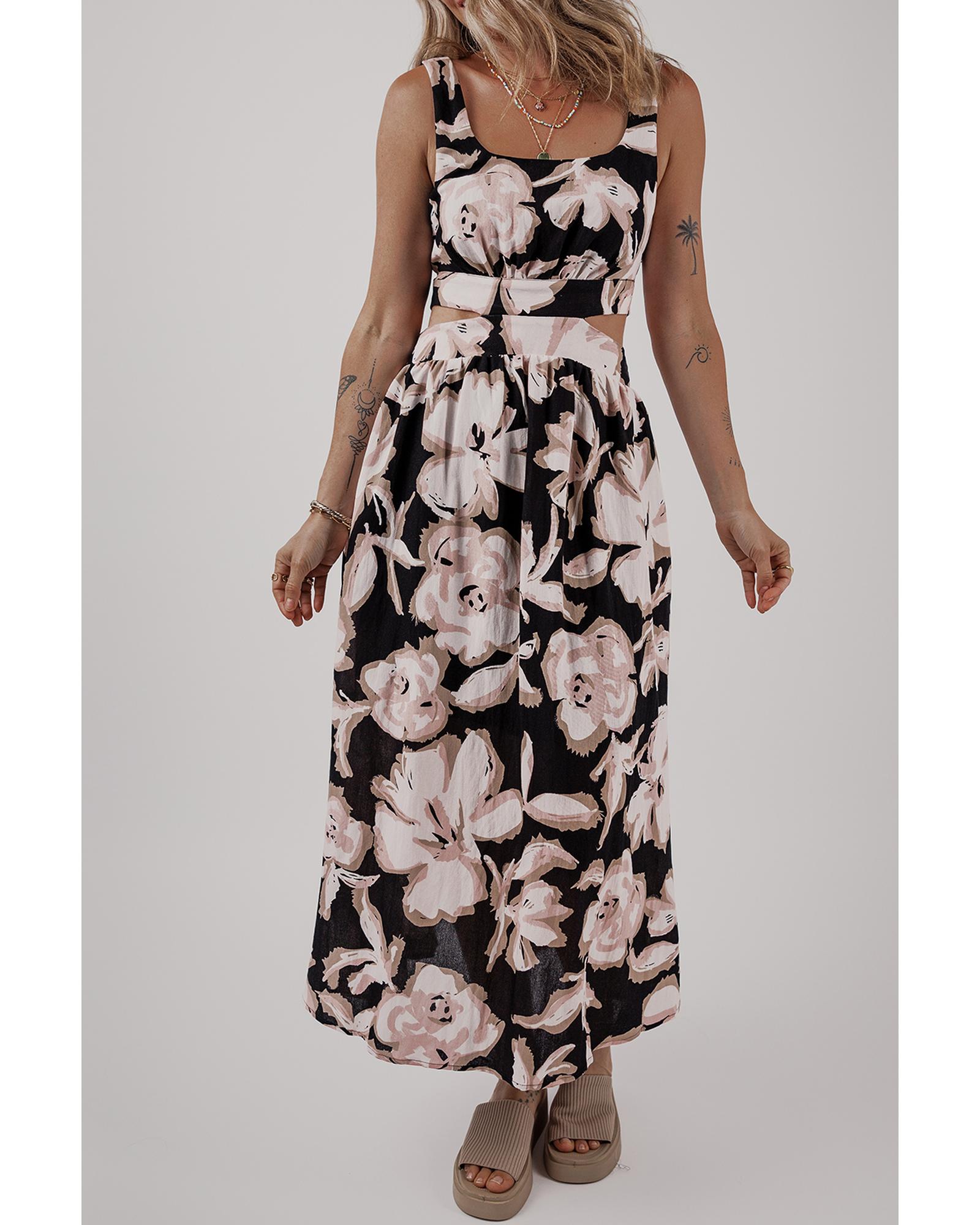 - Black floral cutout maxi dress