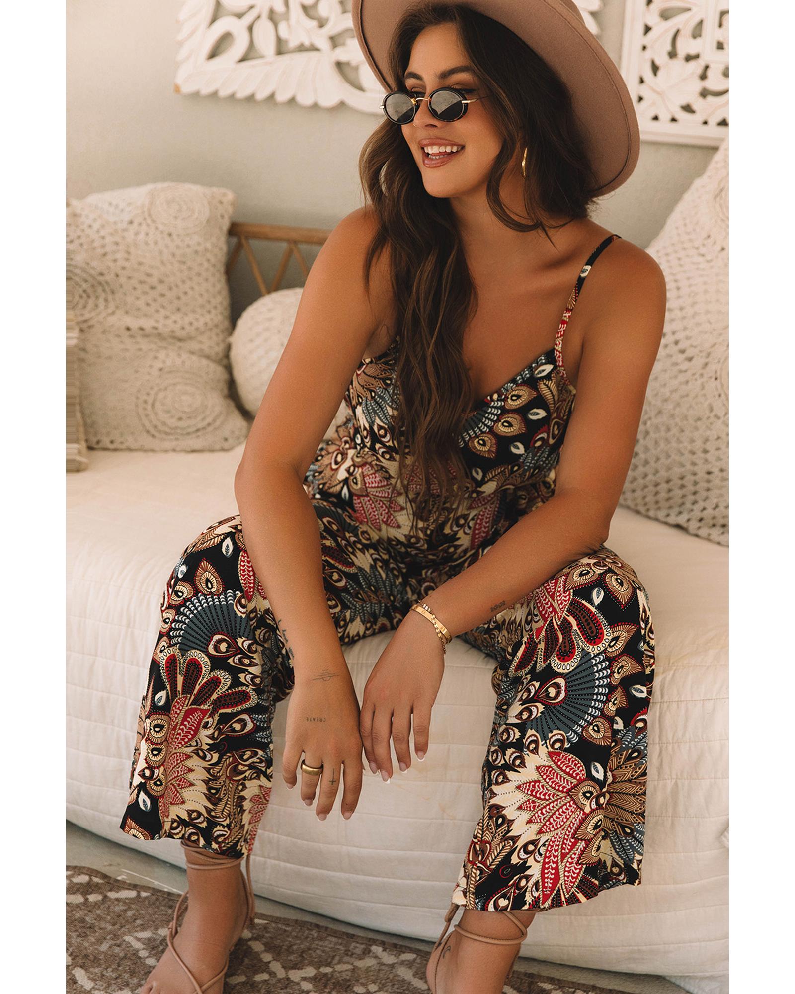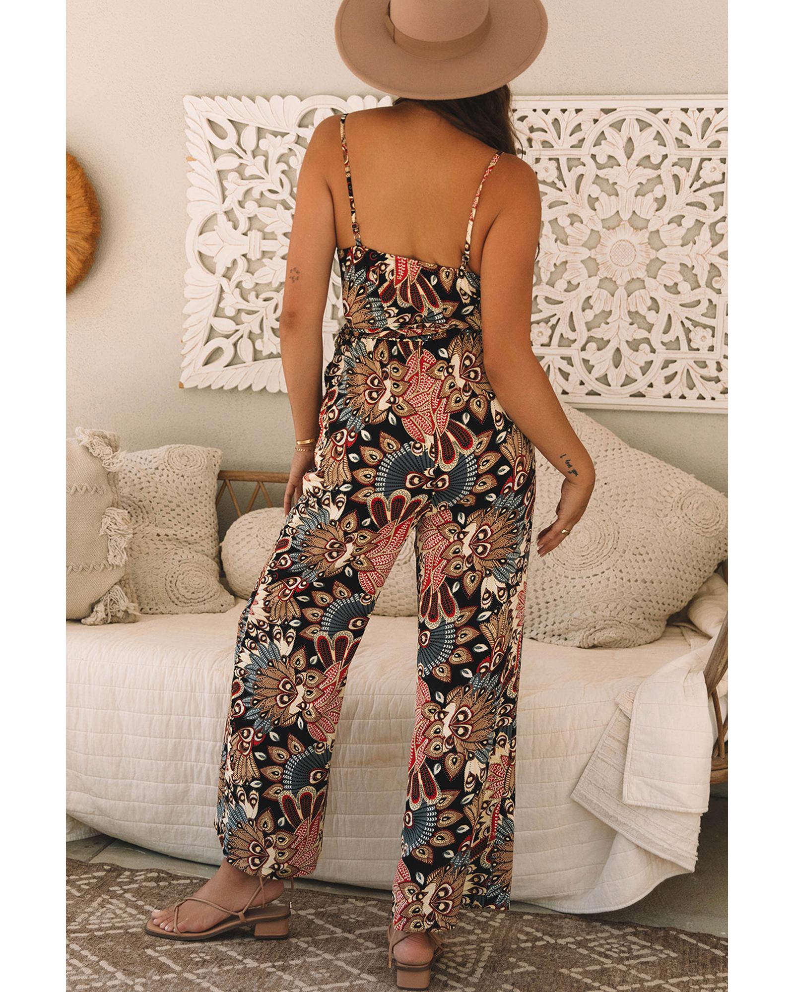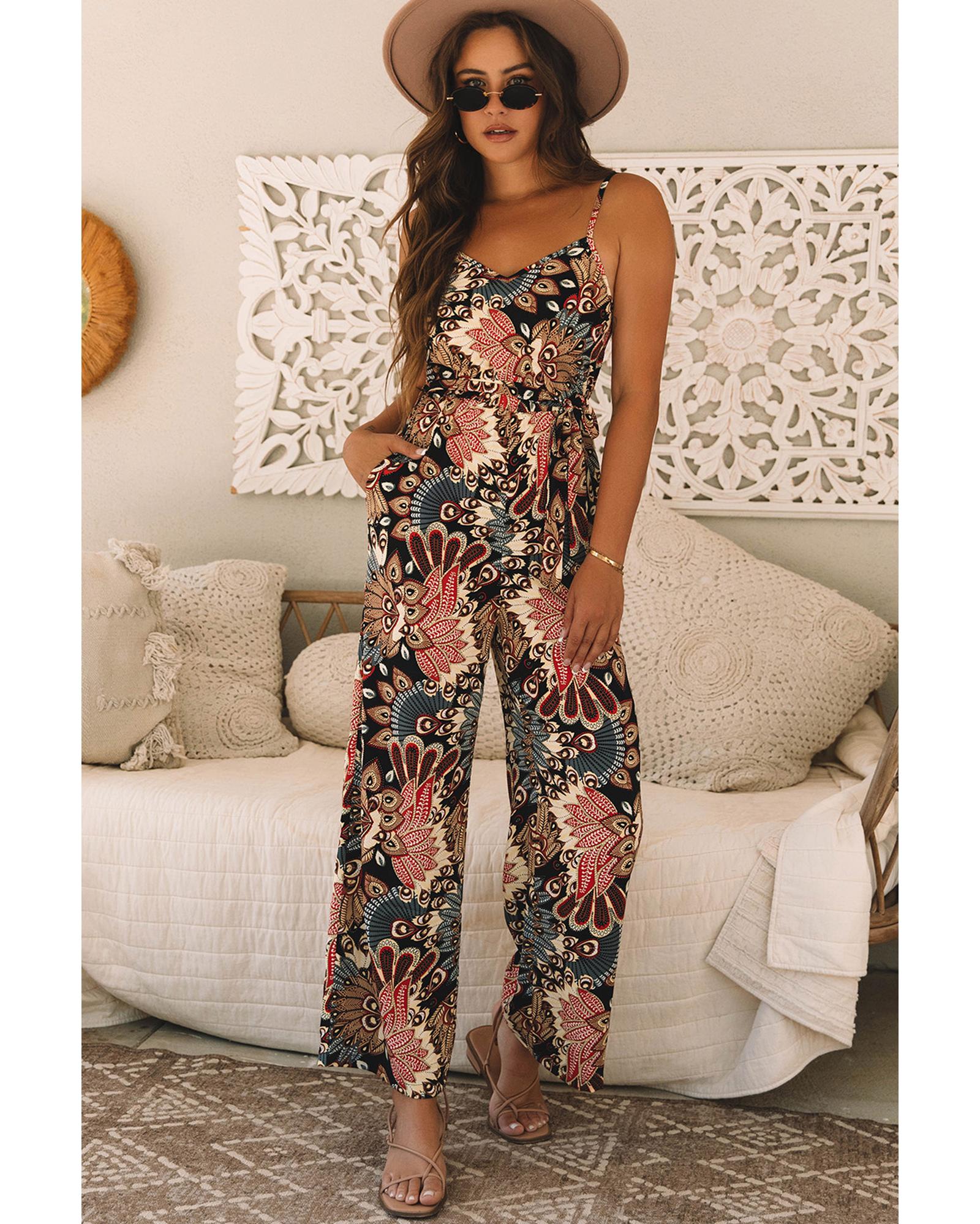 Black Floral Print Belted Sleeveless Wide Leg Jumpsuit – XL