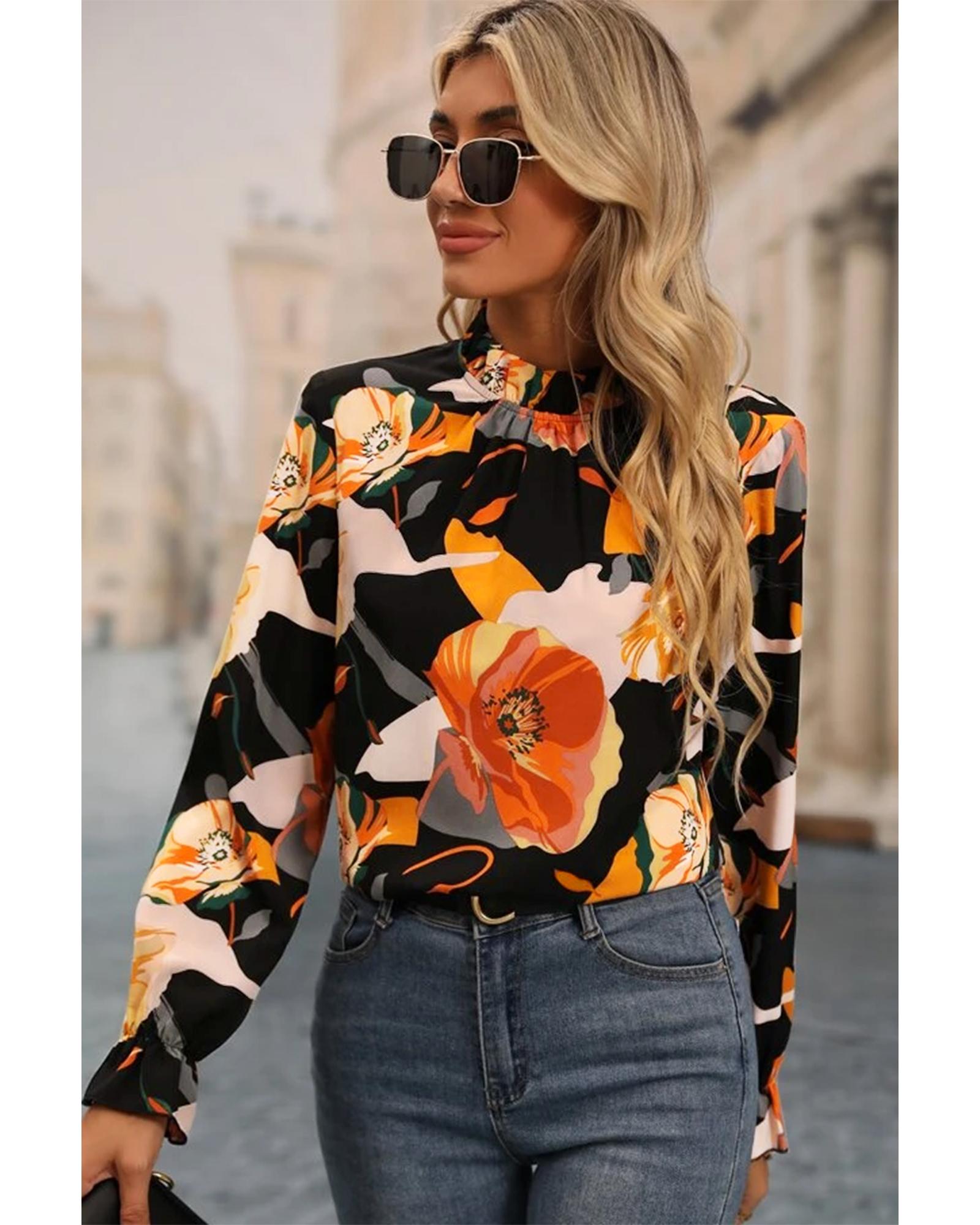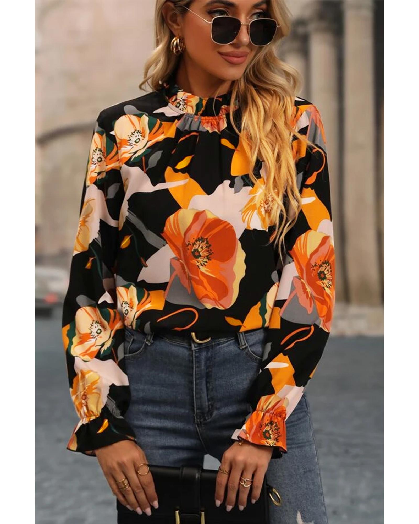 - Mock neck ruffled long sleeves and keyhole detail on the back