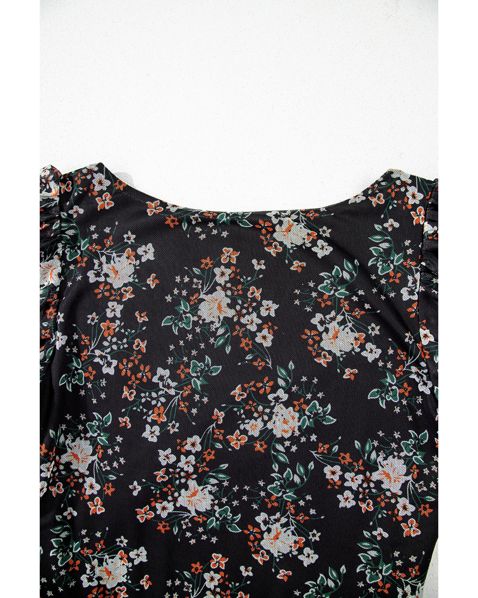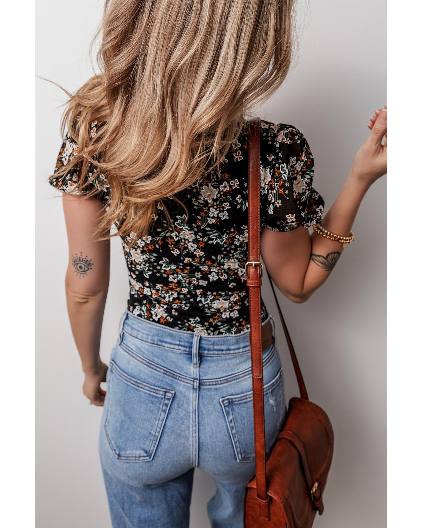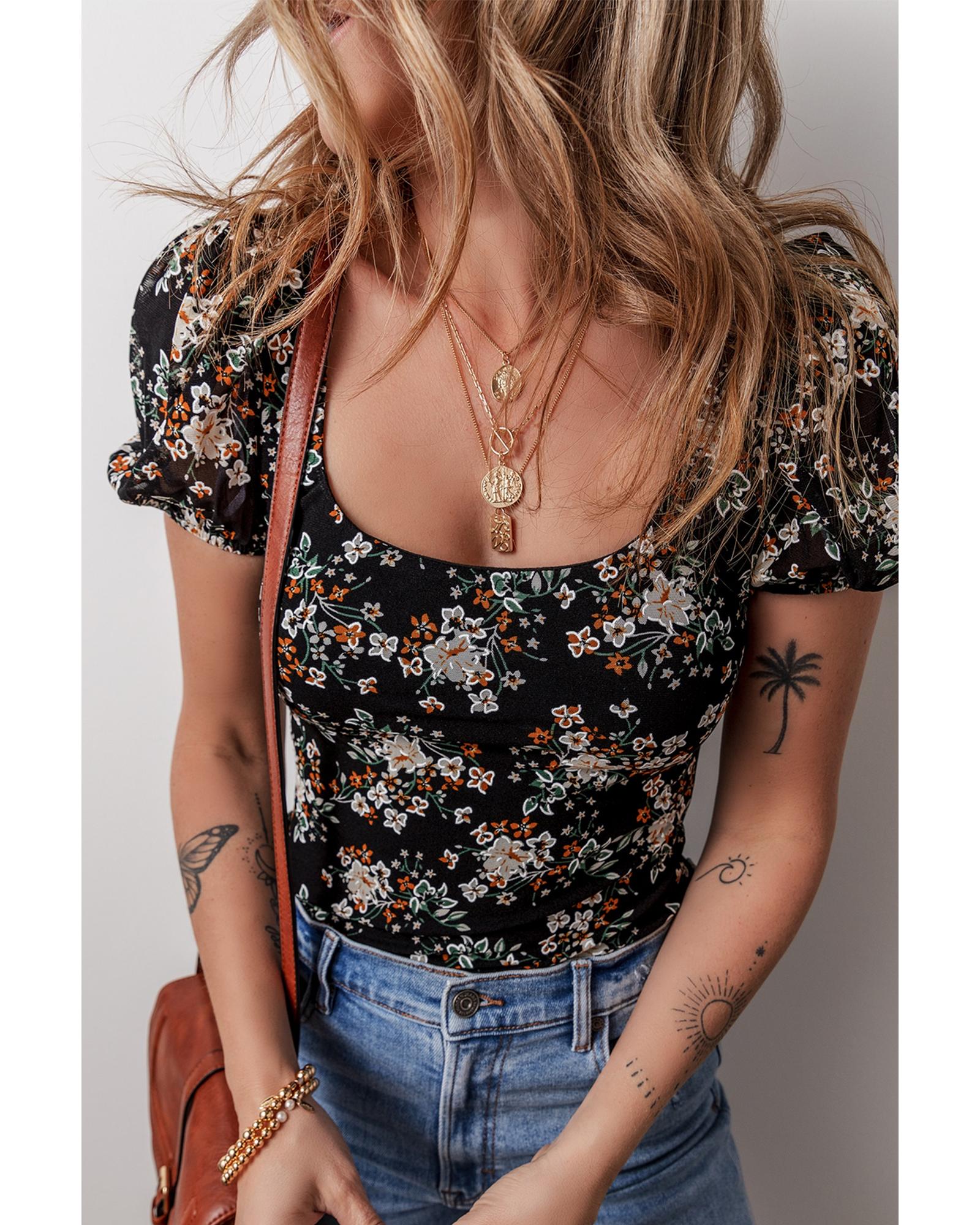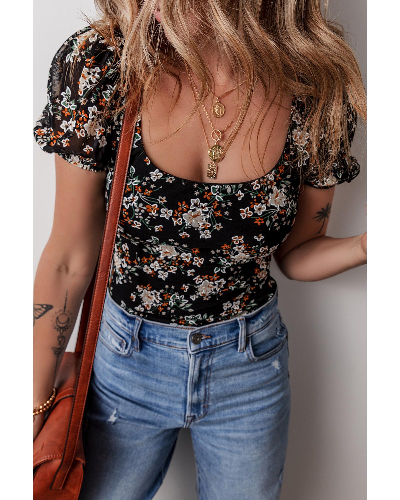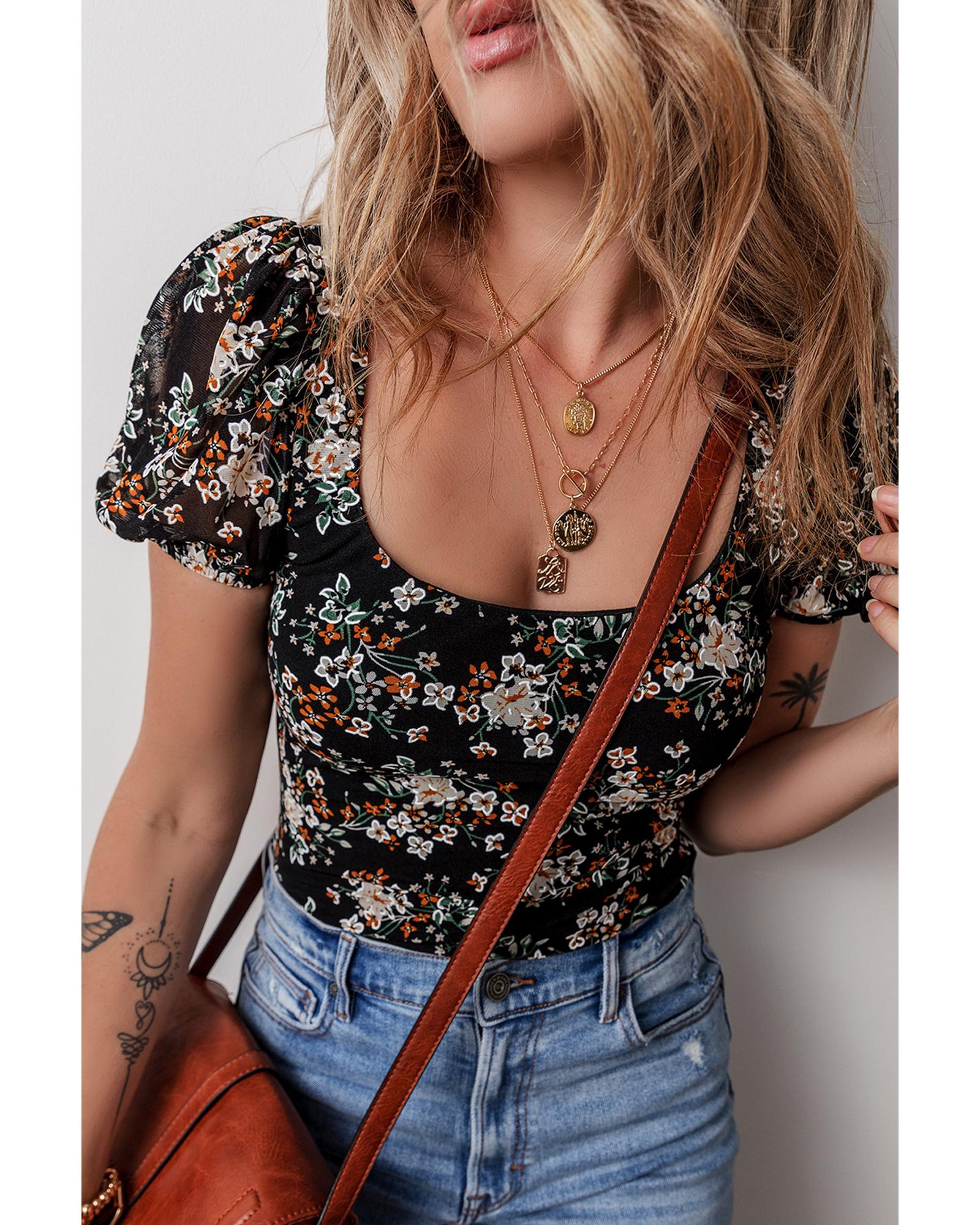 - Black floral print bodysuit