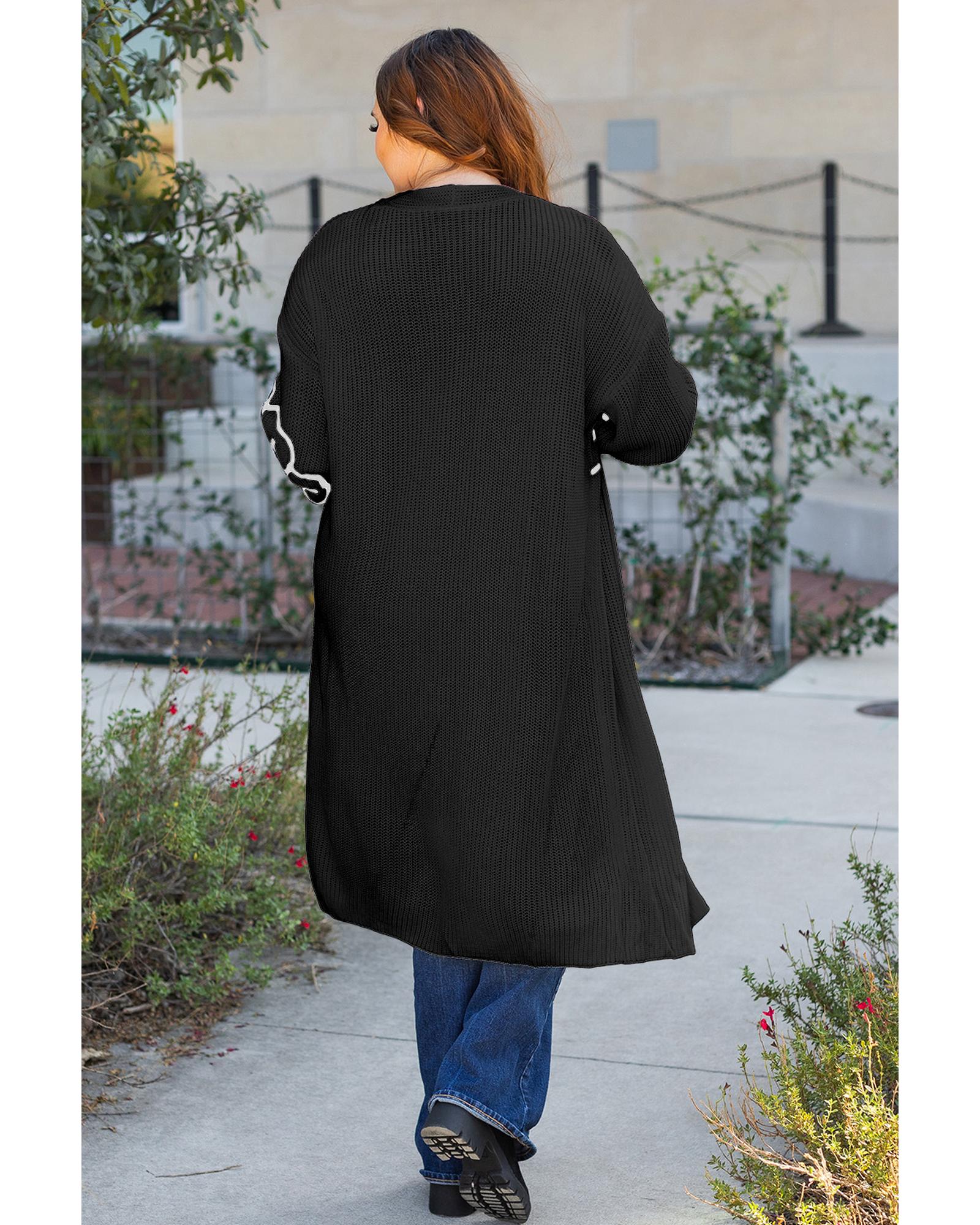 Black Flower Embroidered Drop Shoulder Open Front Duster Cardigan – L