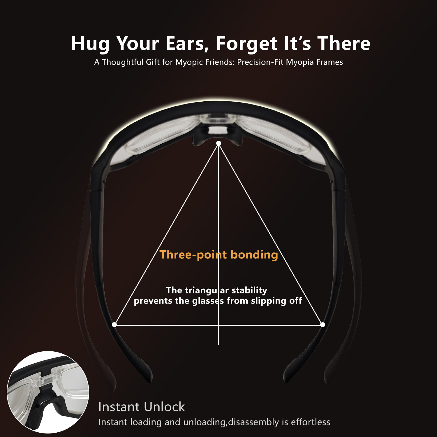 - Effortless Disassembly: The ‘Instant Unlock’ feature allows for easy loading and unloading of the myopia frame, making customization and cleaning simple.