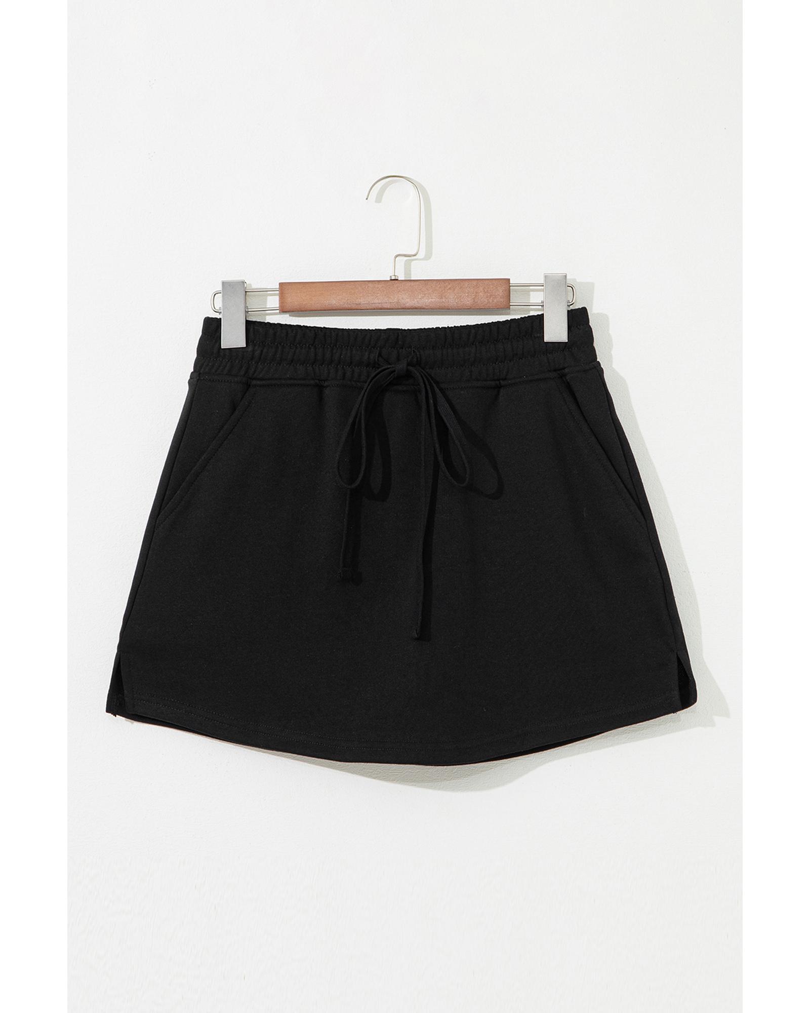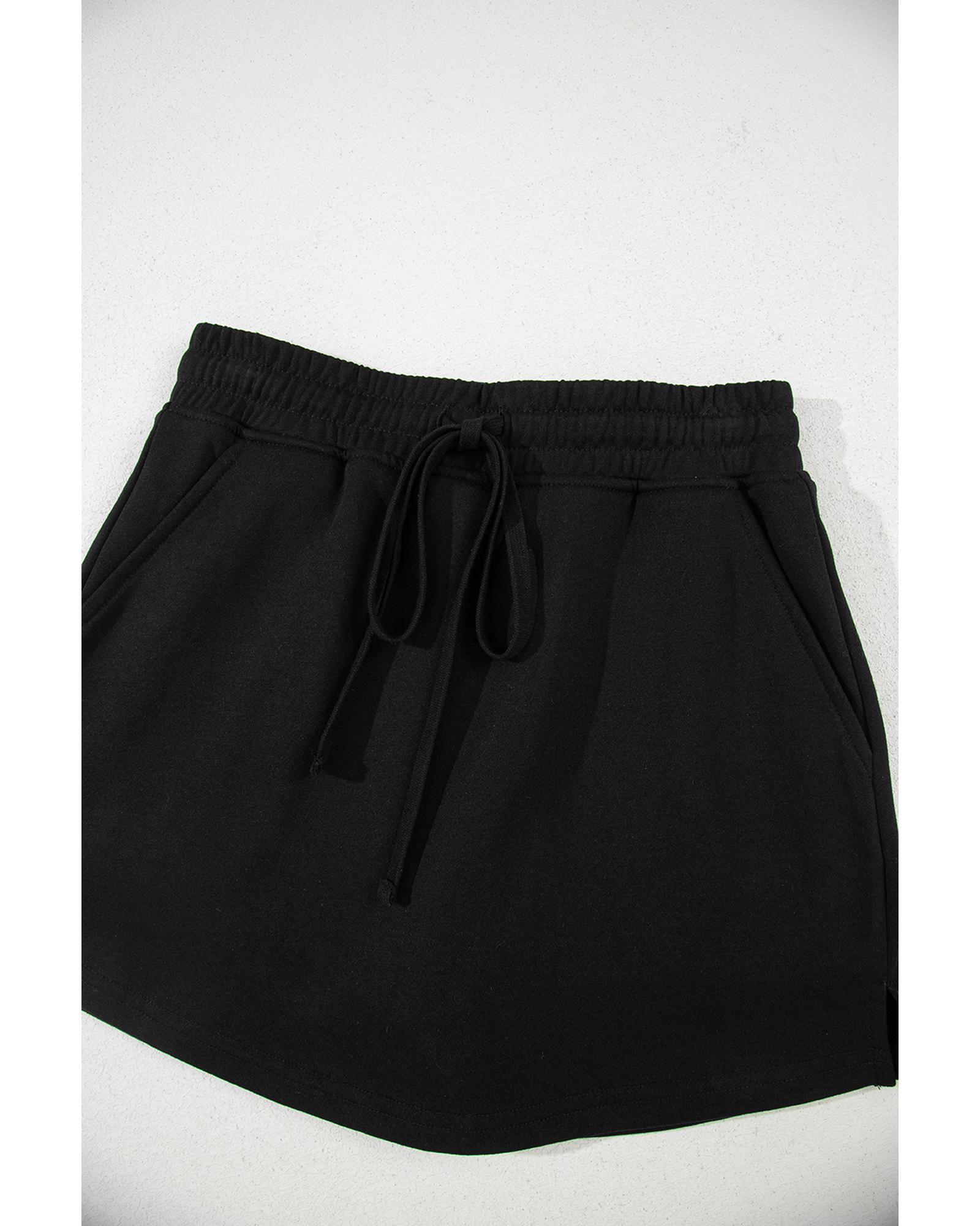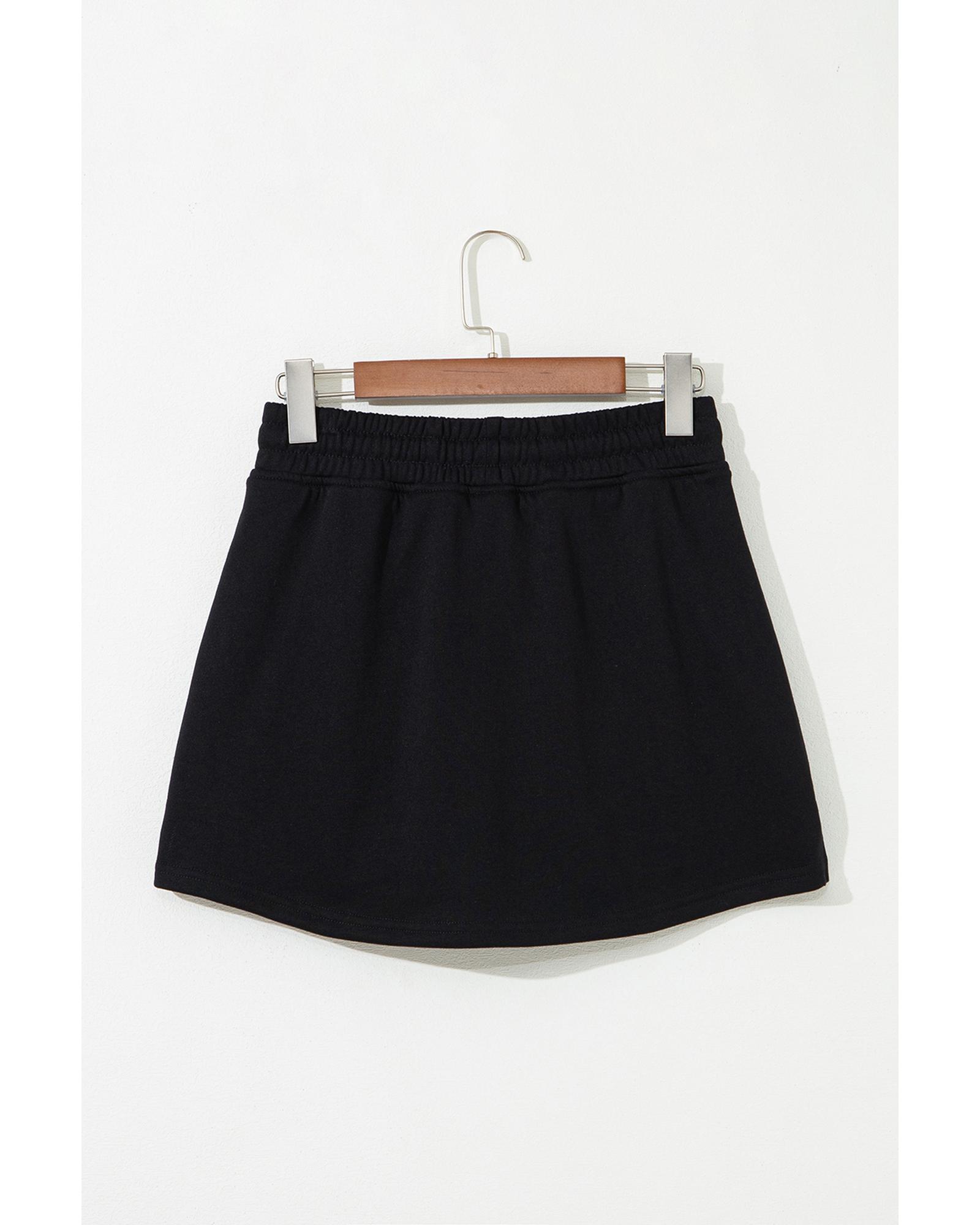 Black French Terry Drawstring Mini Skort with Pockets – L