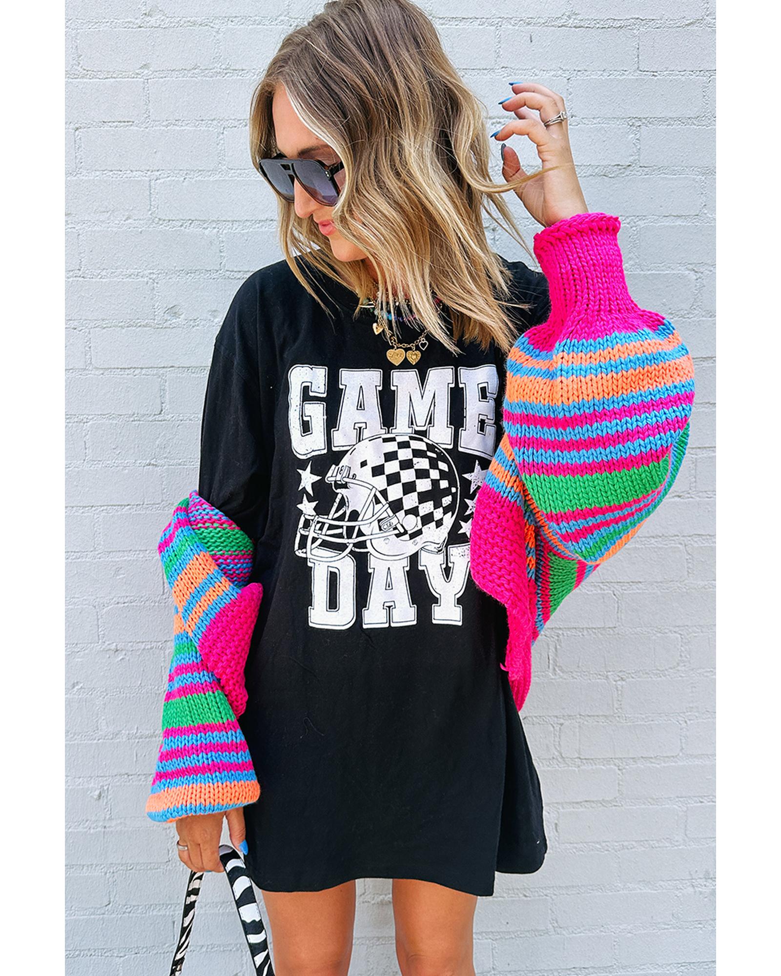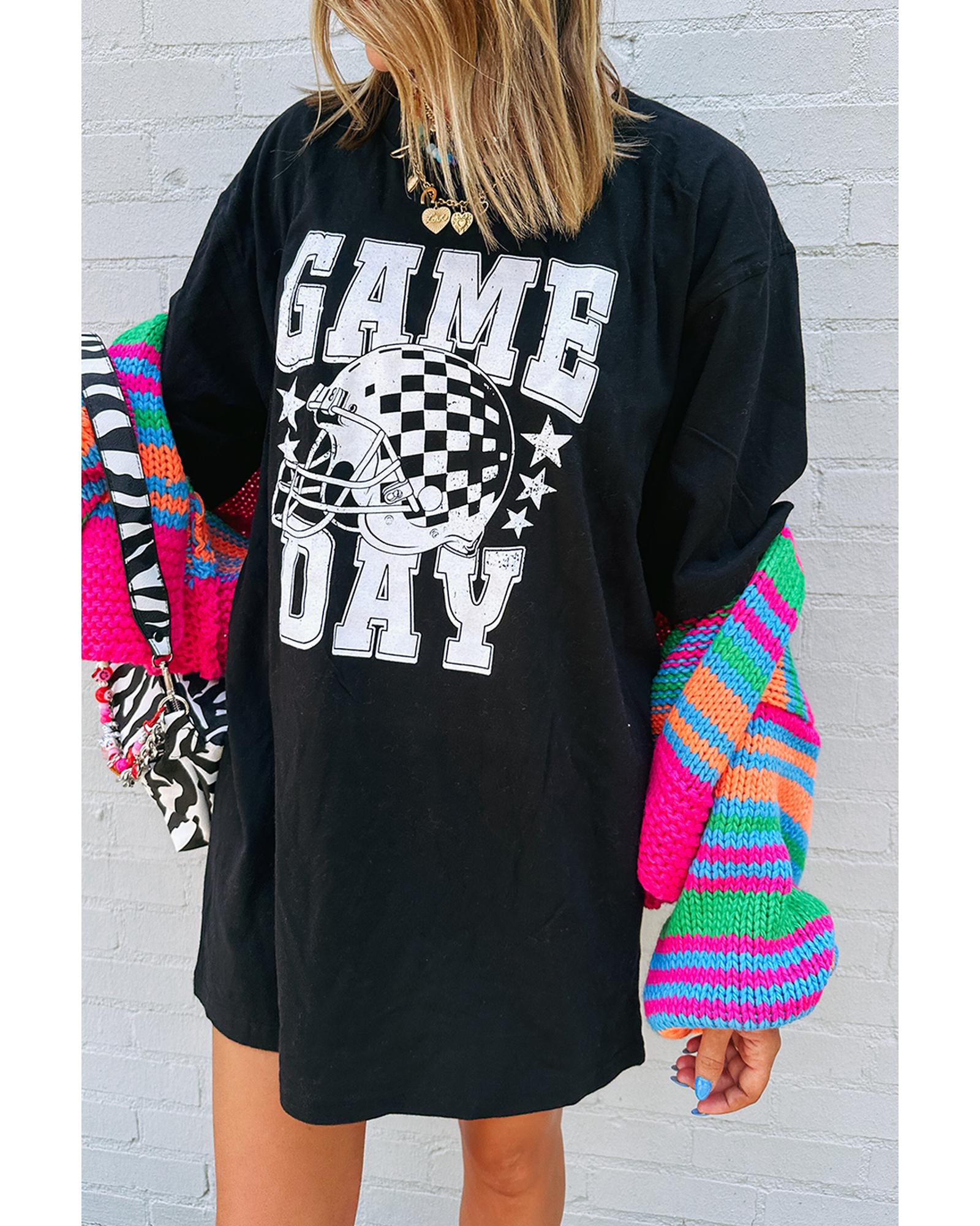 • Black GAME DAY Checkerboard Rugby Football Helmet T Shirt