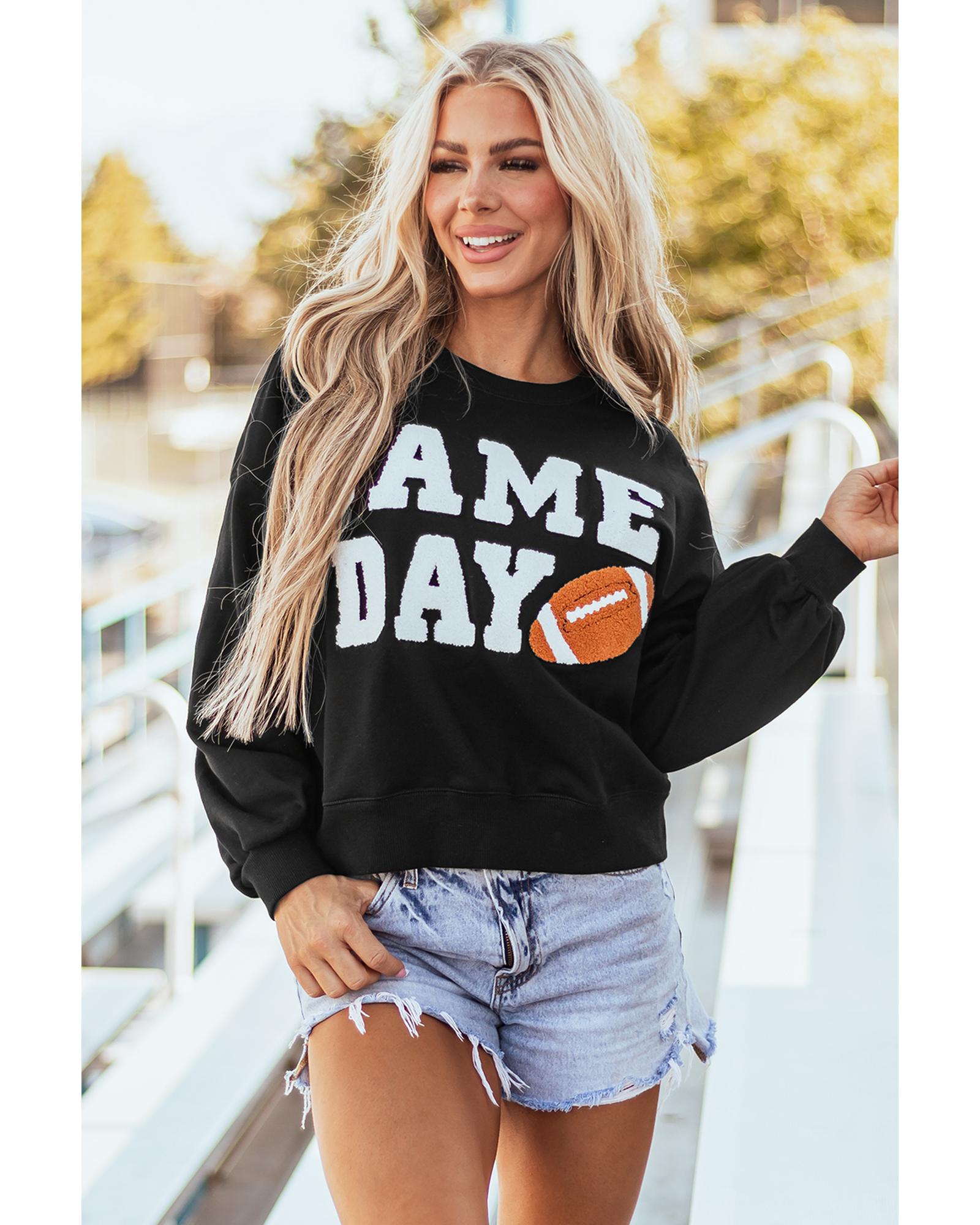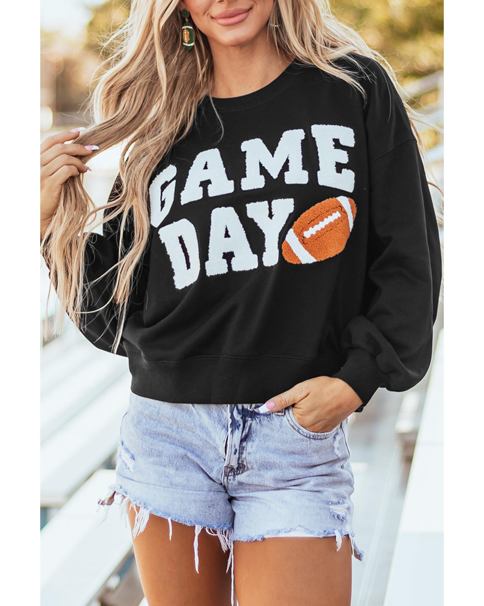 - Black GAME DAY Graphic Varsity Pullover Sweatshirt