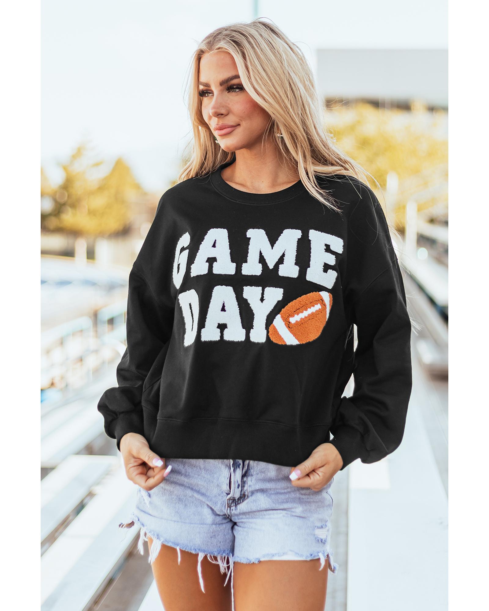 • Black GAME DAY Graphic Varsity Pullover Sweatshirt