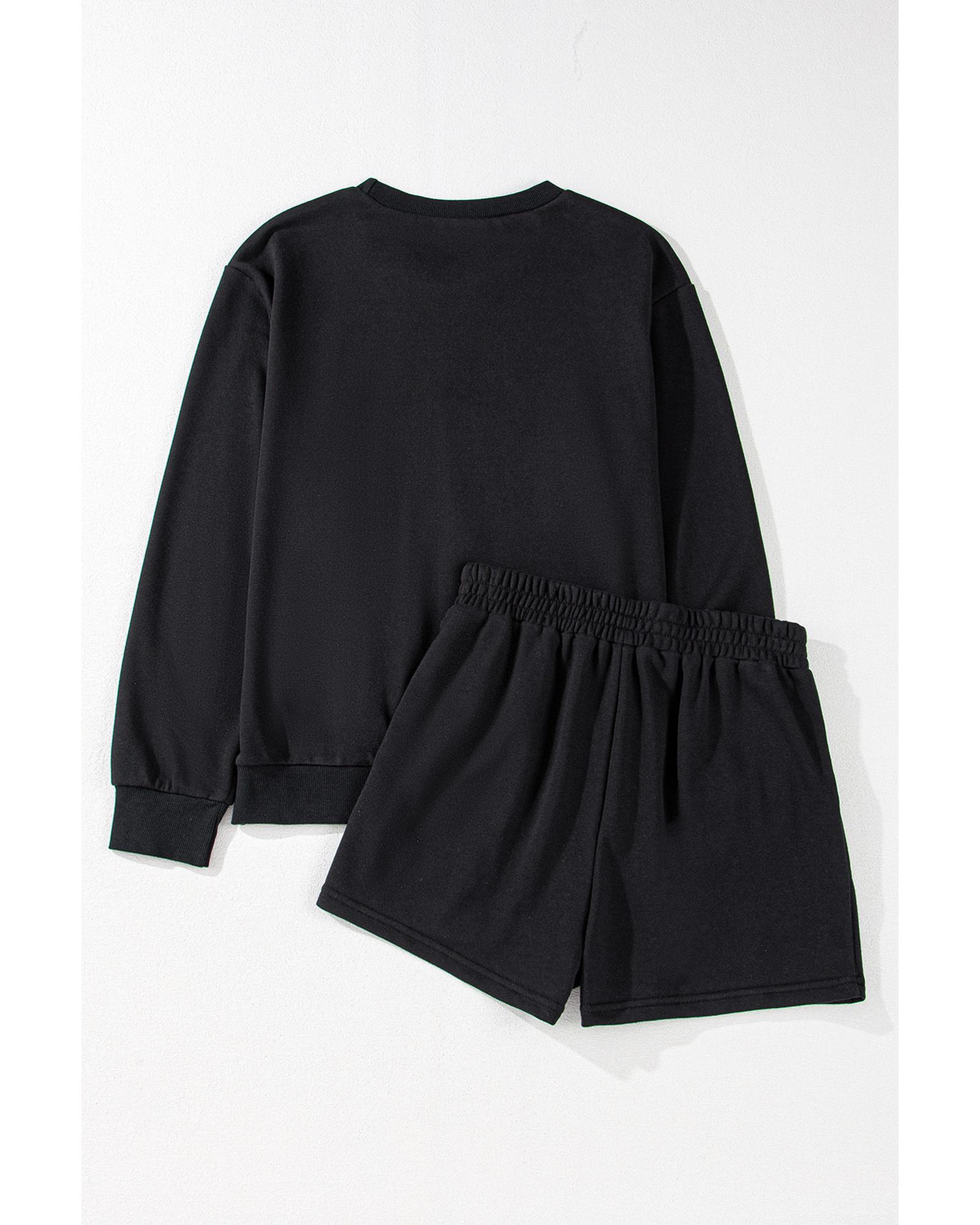 - Black GAME DAY Rugby Football Graphic Pullover and Shorts Casual Outfit