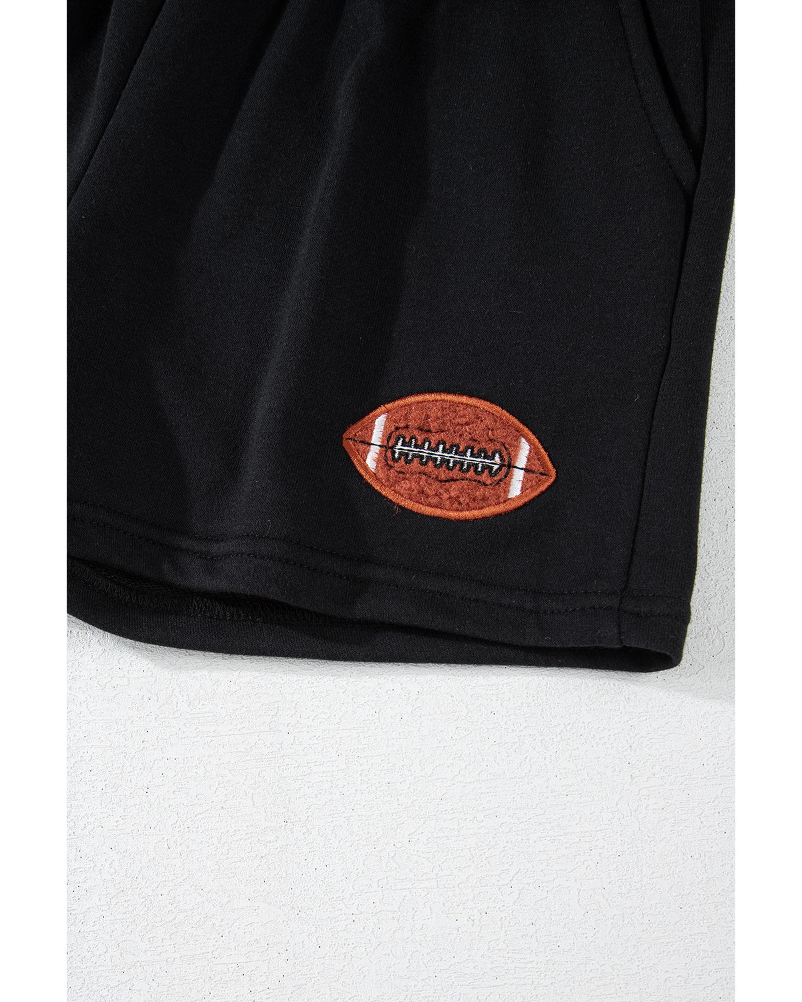 Black GAME DAY Rugby Football Graphic Pullover and Shorts Casual Outfit – L