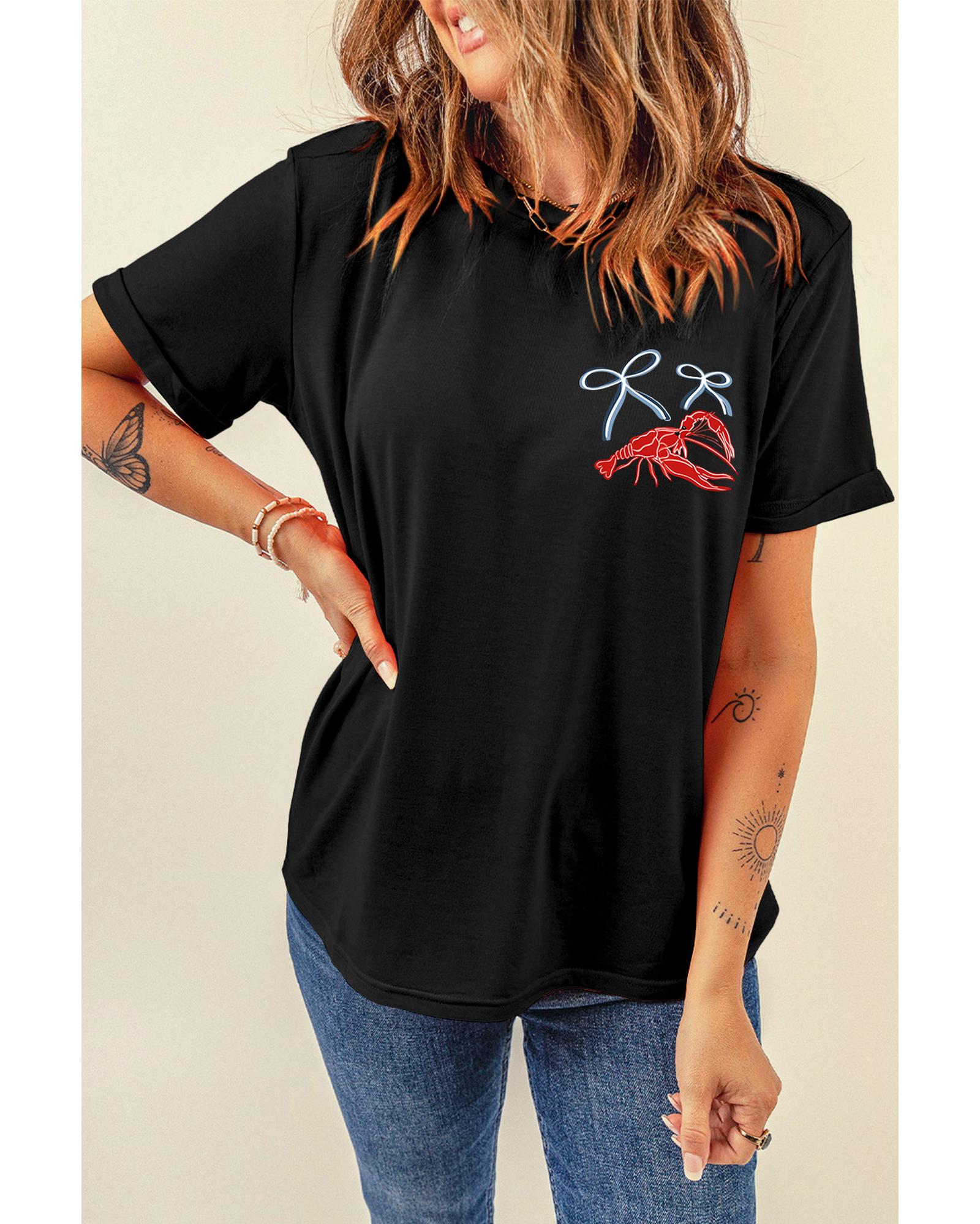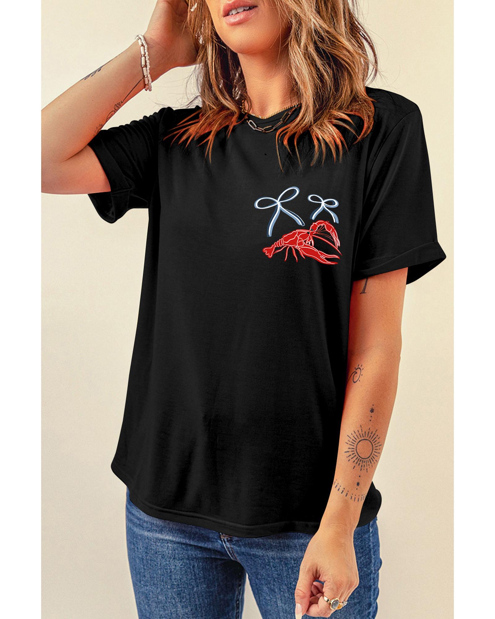 Black Girlie Bow Crawfish Printed T Shirt – M