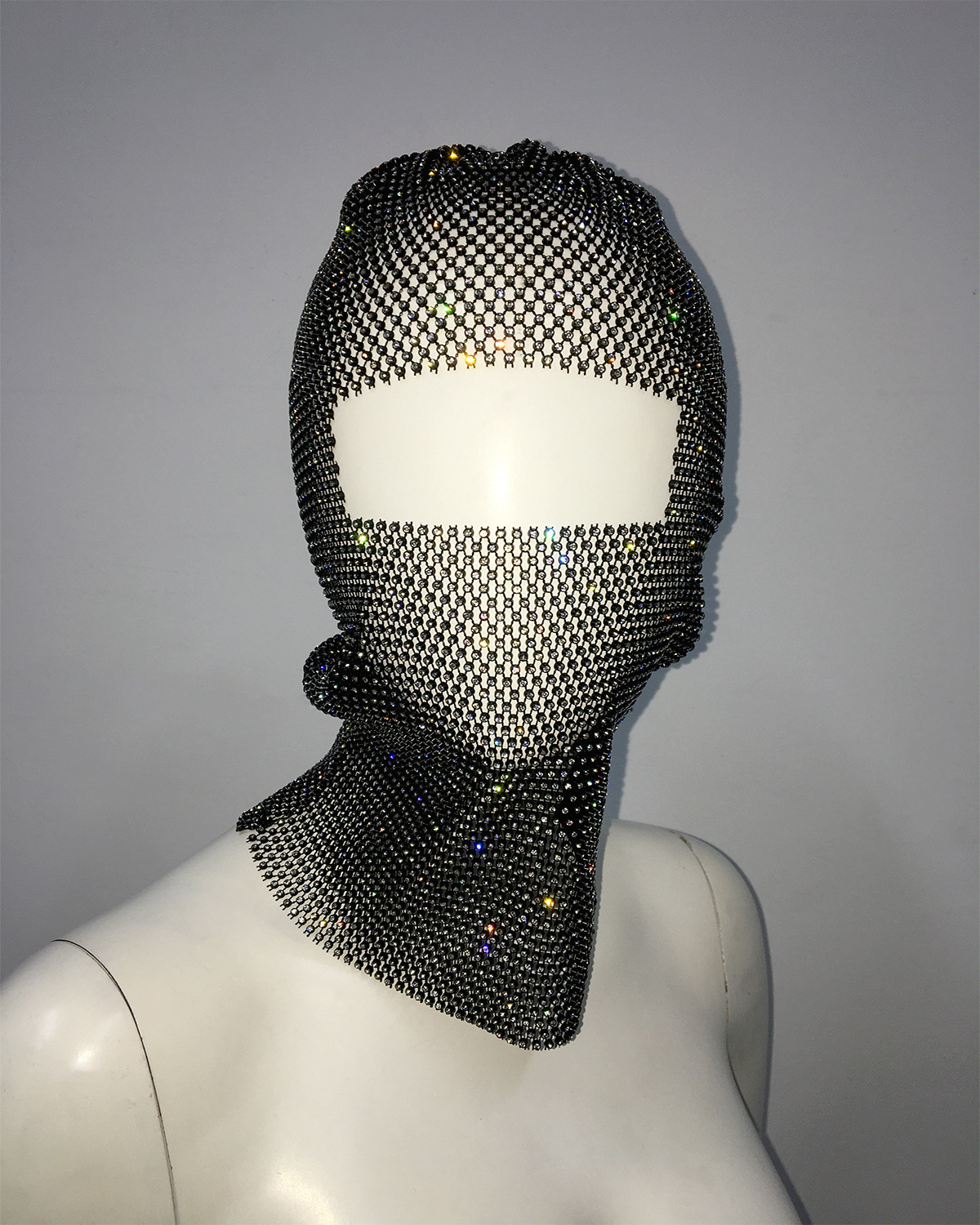 Black Glitter Rhinestone Face Balaclava – Trendy Music Festival Head Cover, 37cm