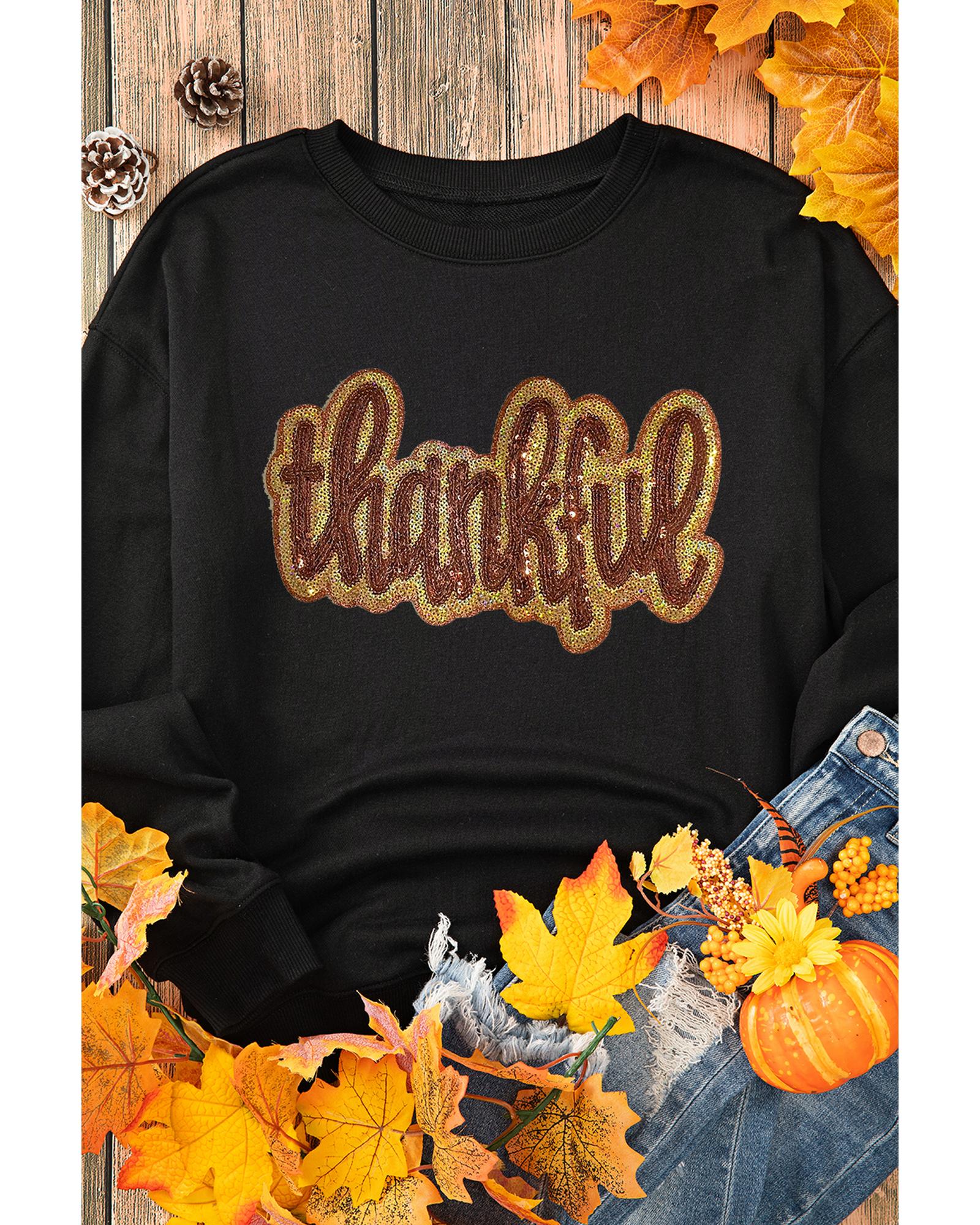 Black Glittering thankful Graphic Drop Shoulder Sweatshirt – S
