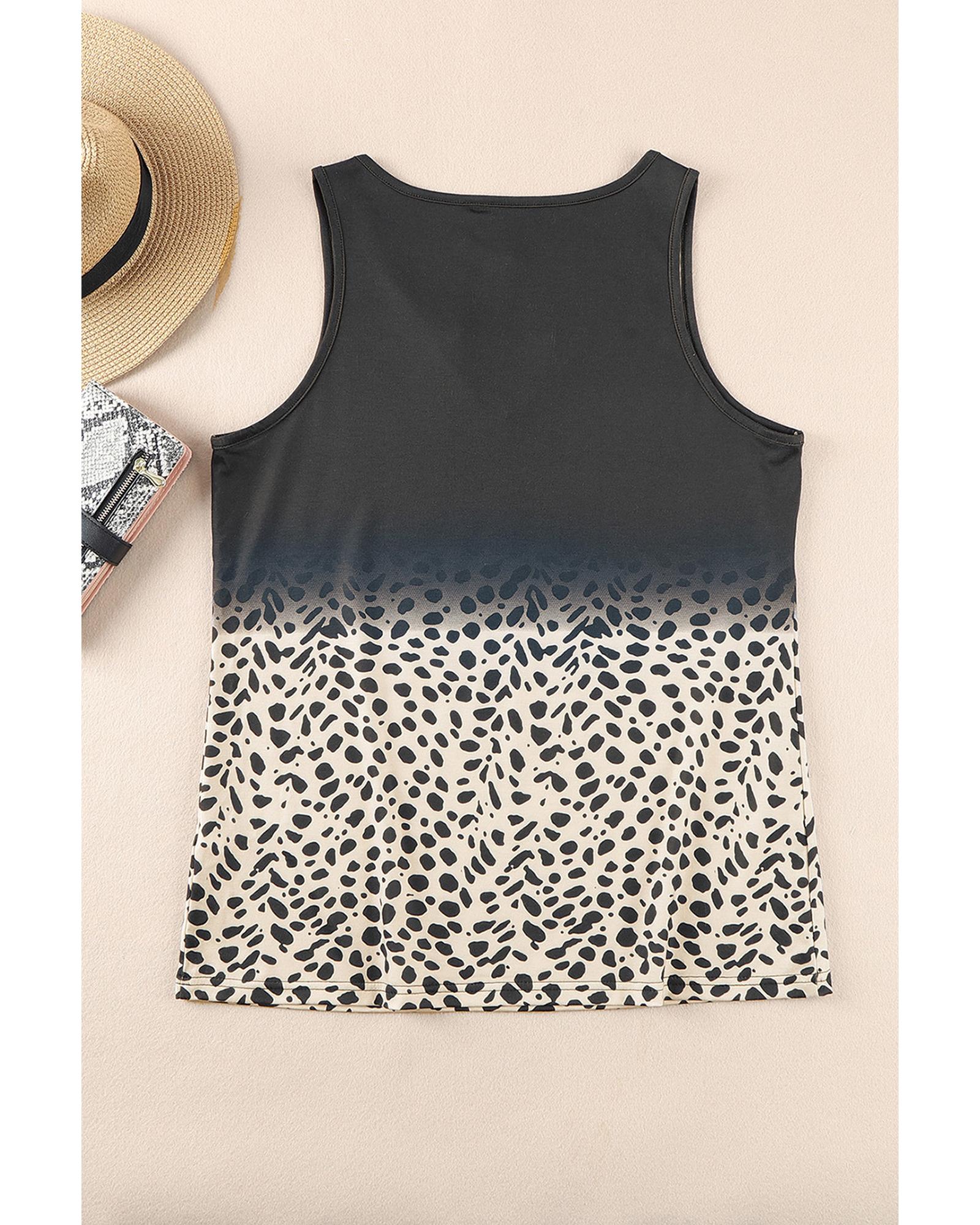 • Stylish and trendy Gradient Leopard Split Neck Tank Top