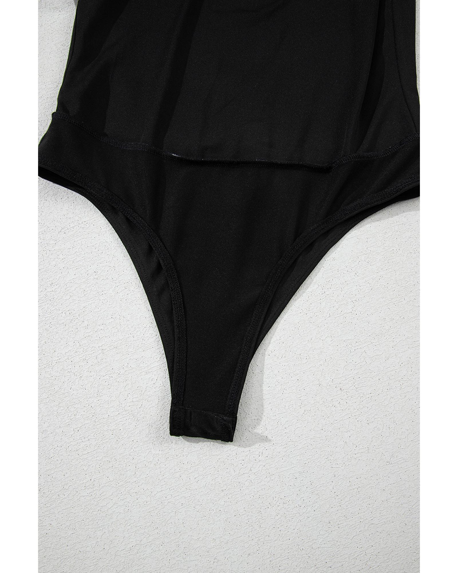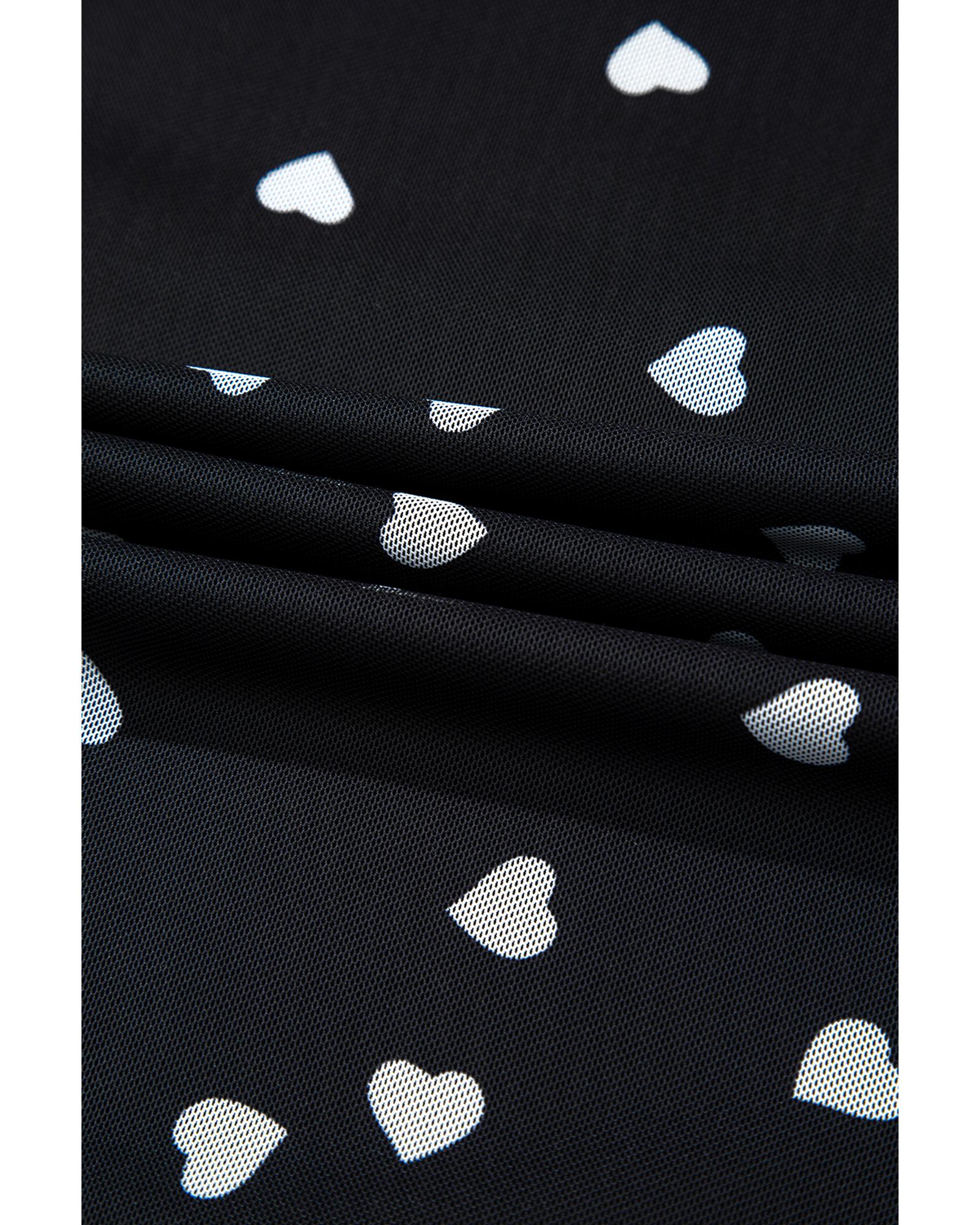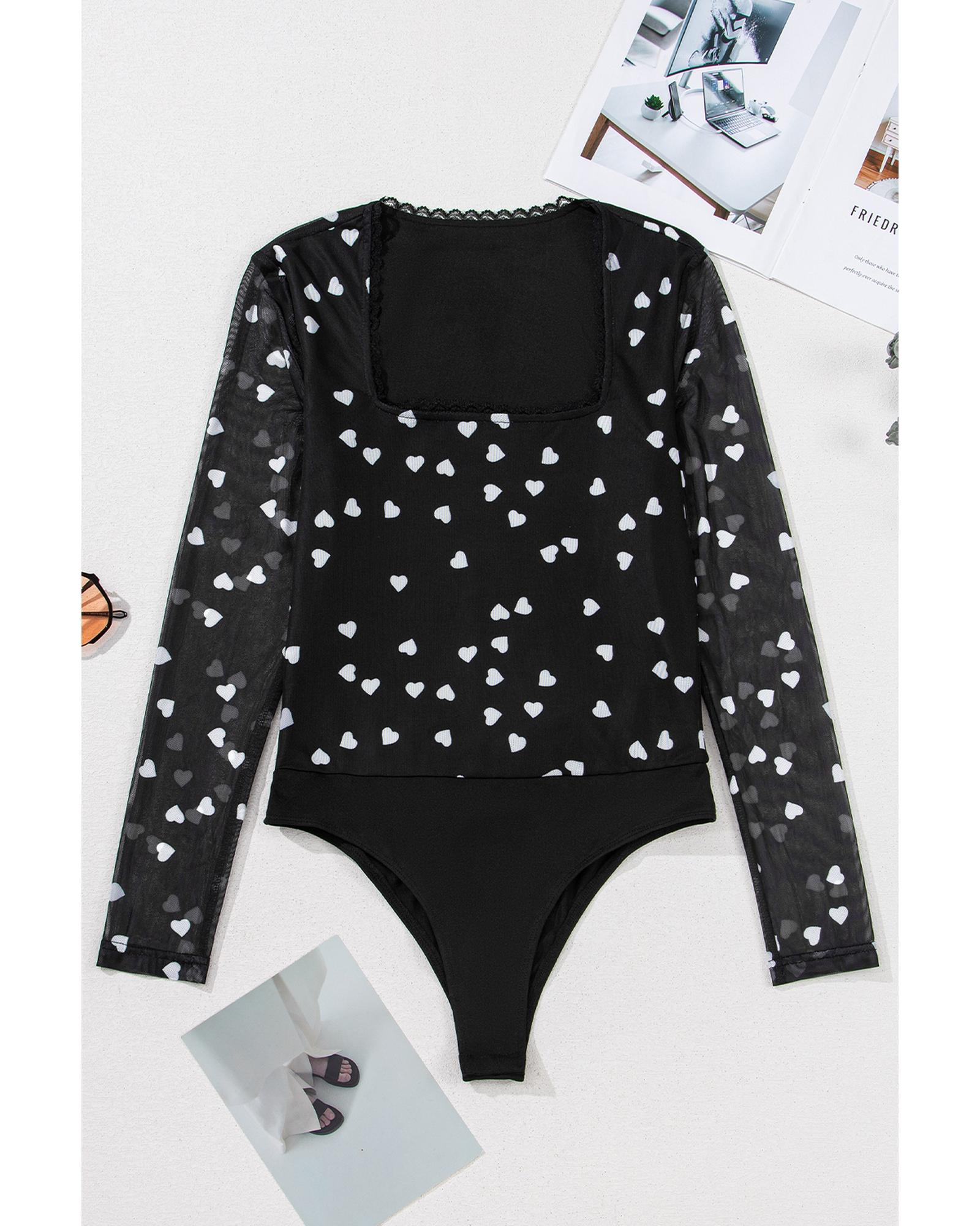 Black Heart Shape Mesh Patchwork Square Neck Bodysuit – M