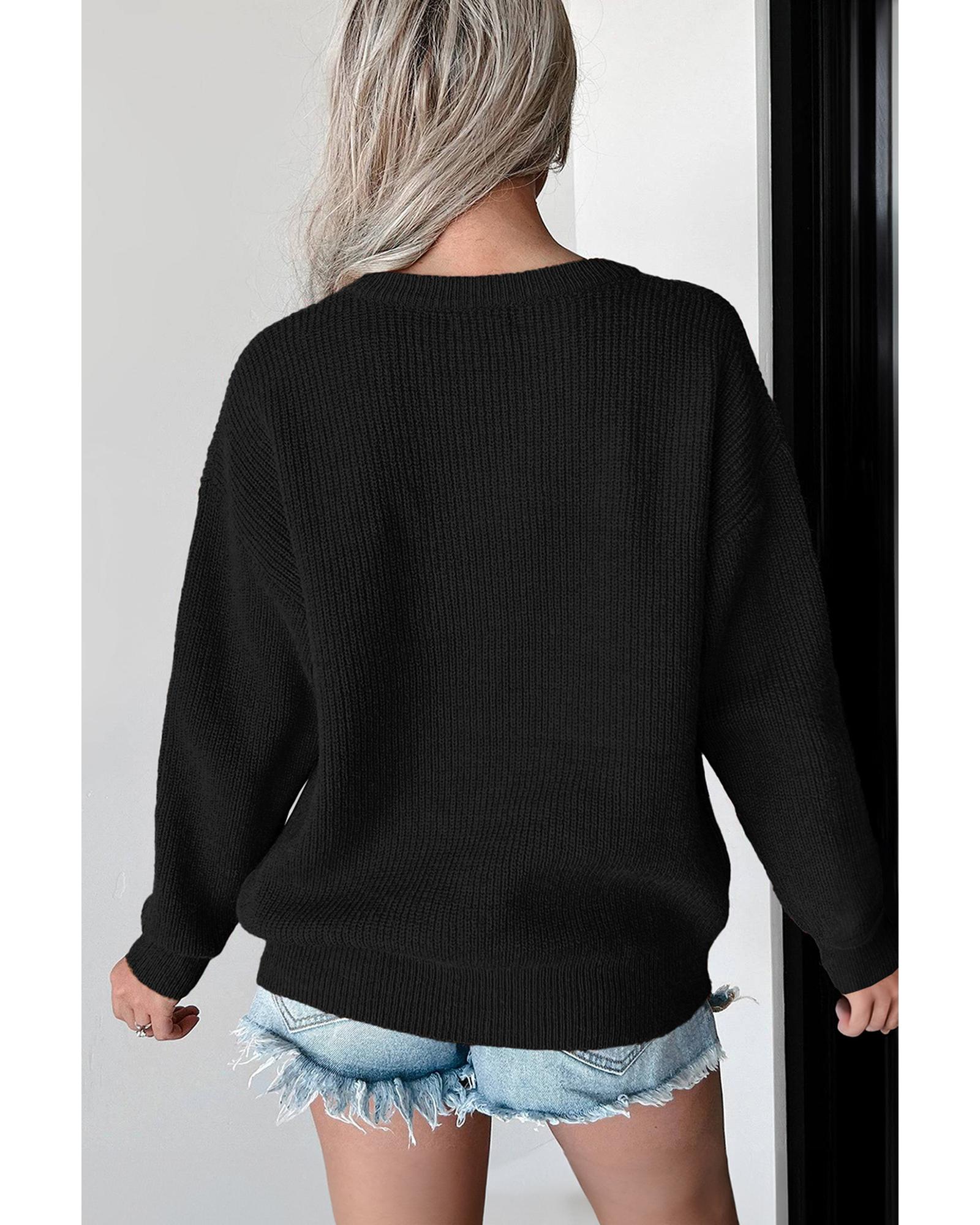 Bonbon Three Tone Contrast Round Neck Loose Sweater - M