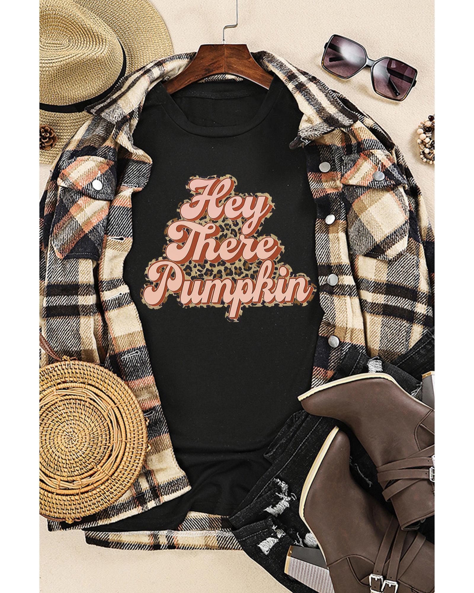 Stylish and trendy short - sleeve graphic tee for women Unique leopard graphic design with Hey There Pumpkin text Made from high