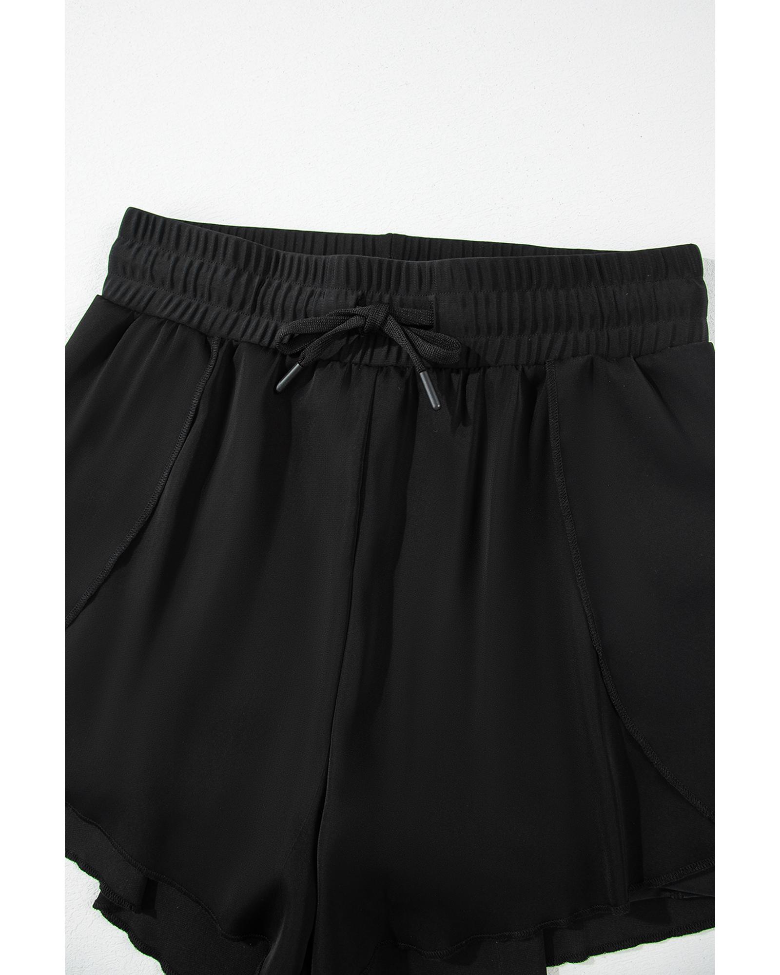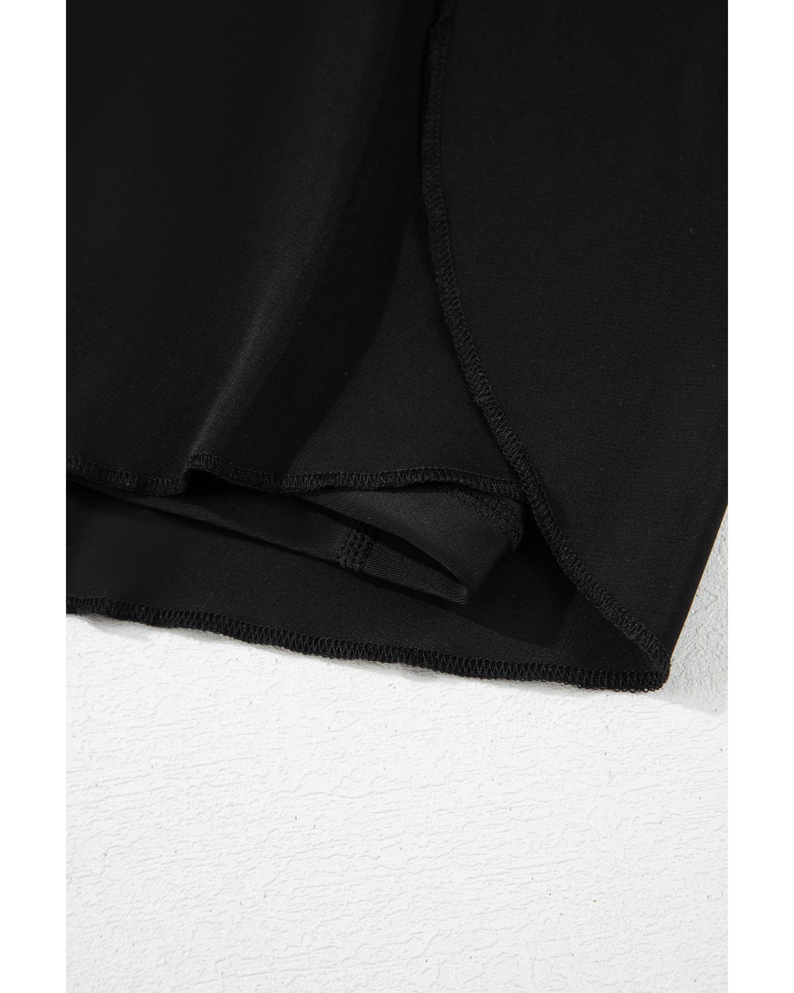 Black High Waisted Drawstring 2-in-1 Side Pocket Color Block Bikini Shorts - L