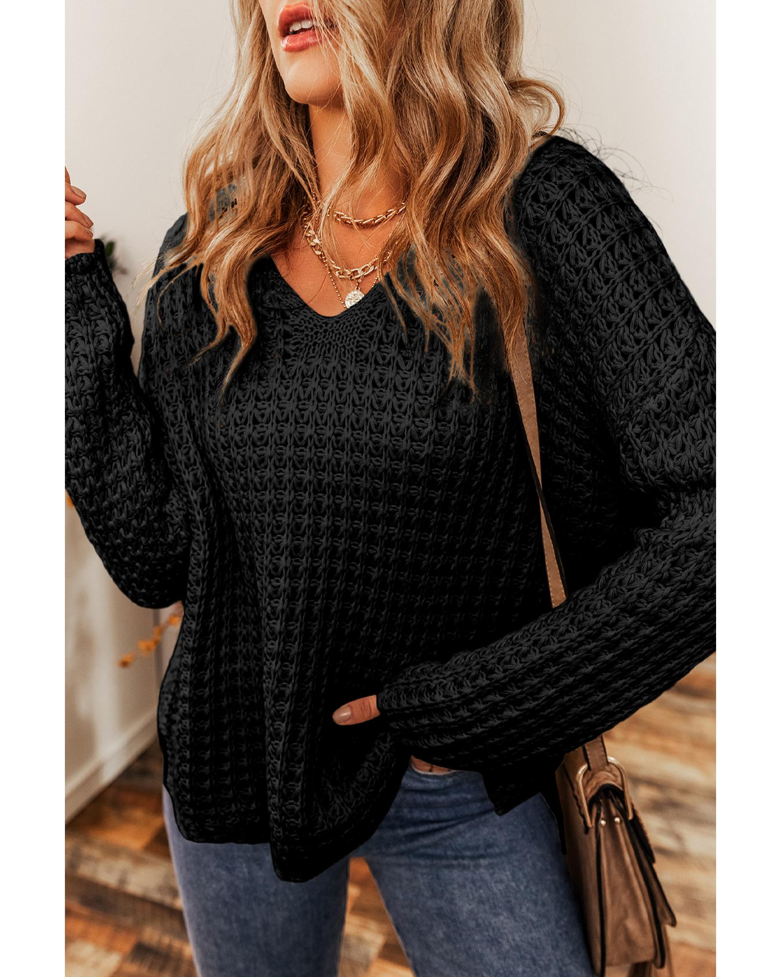 White Flower Detail Knitted Notched Neck Sweater - XL