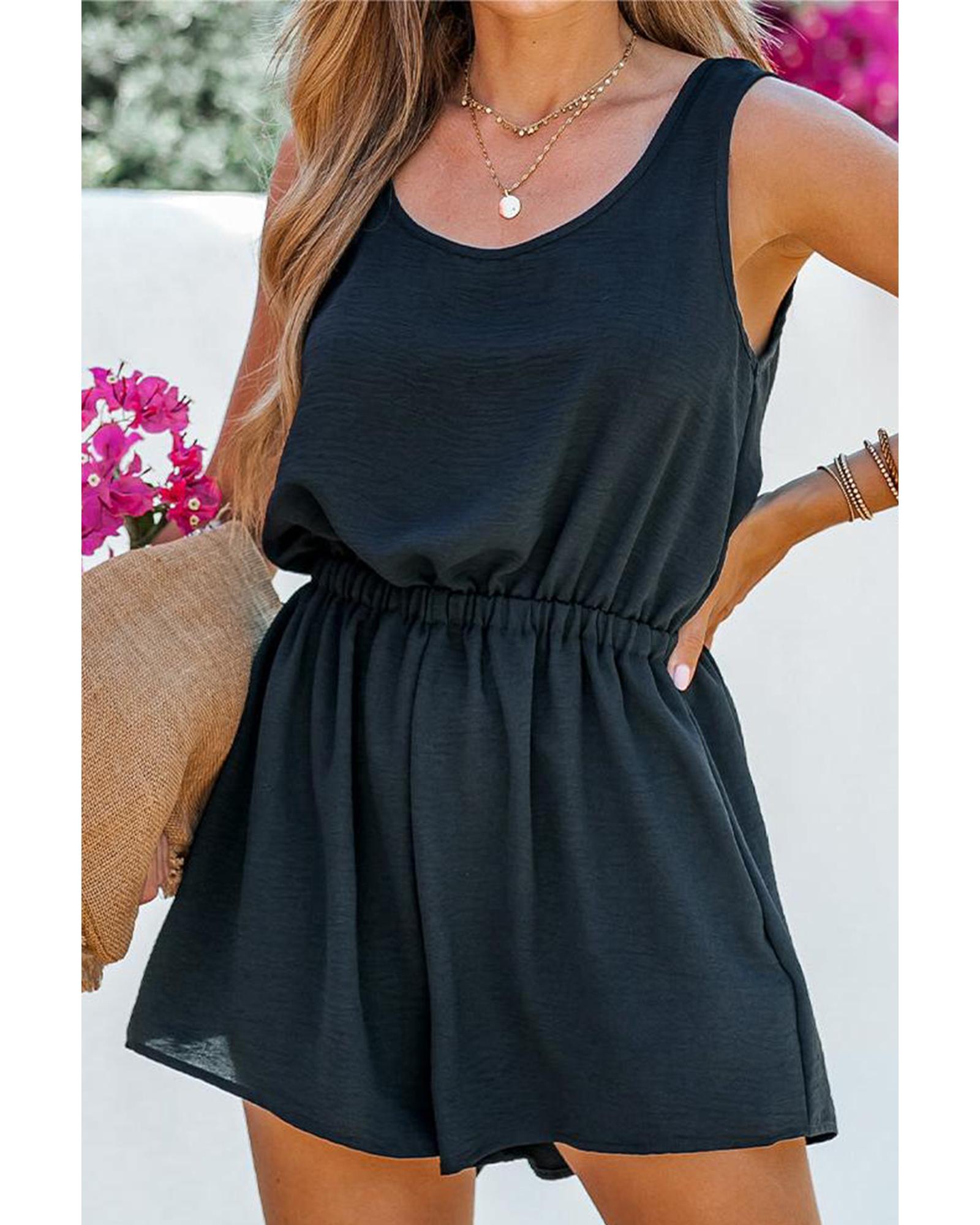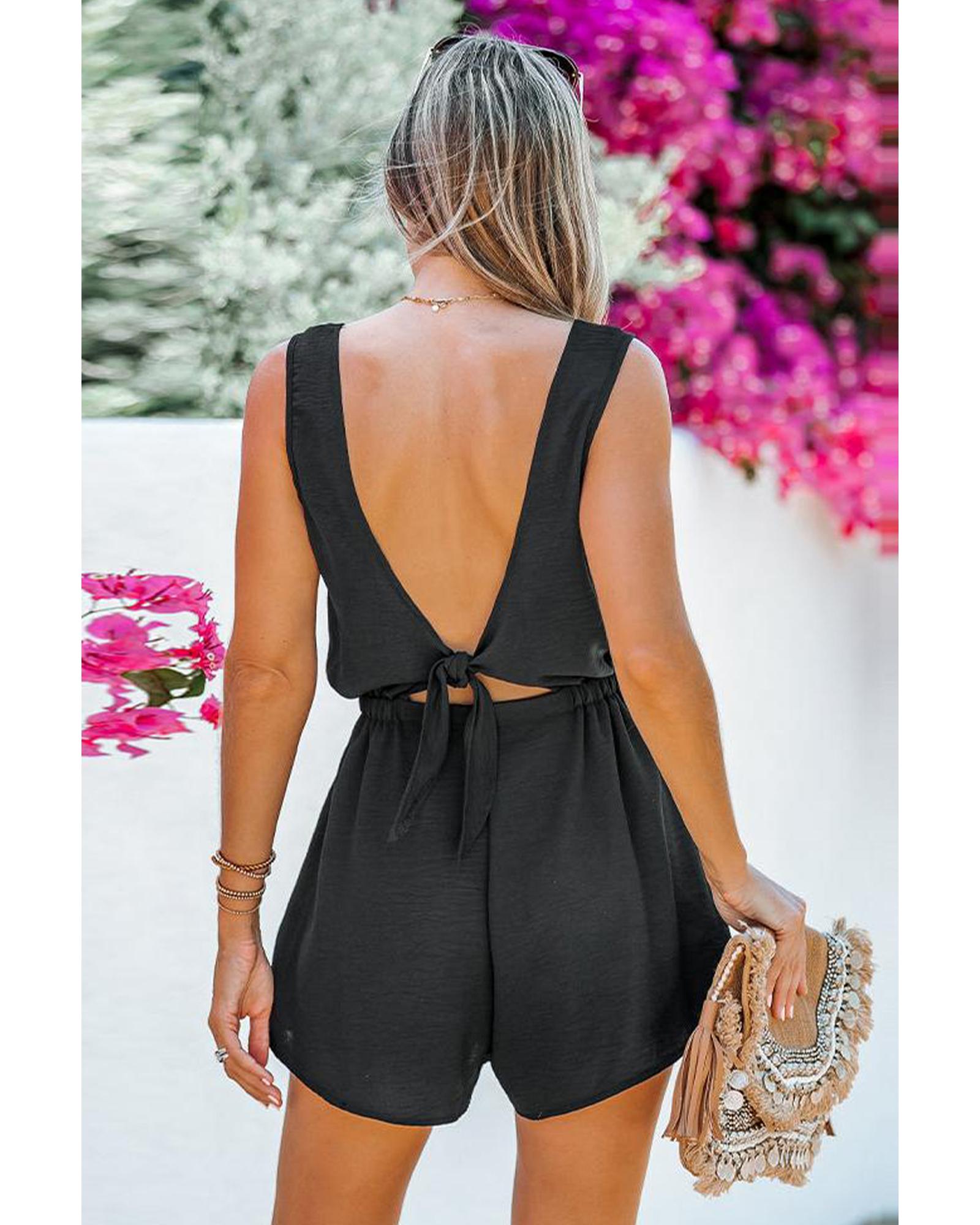 Black Knotted Backless Elastic Waist Sleeveless Romper – XL
