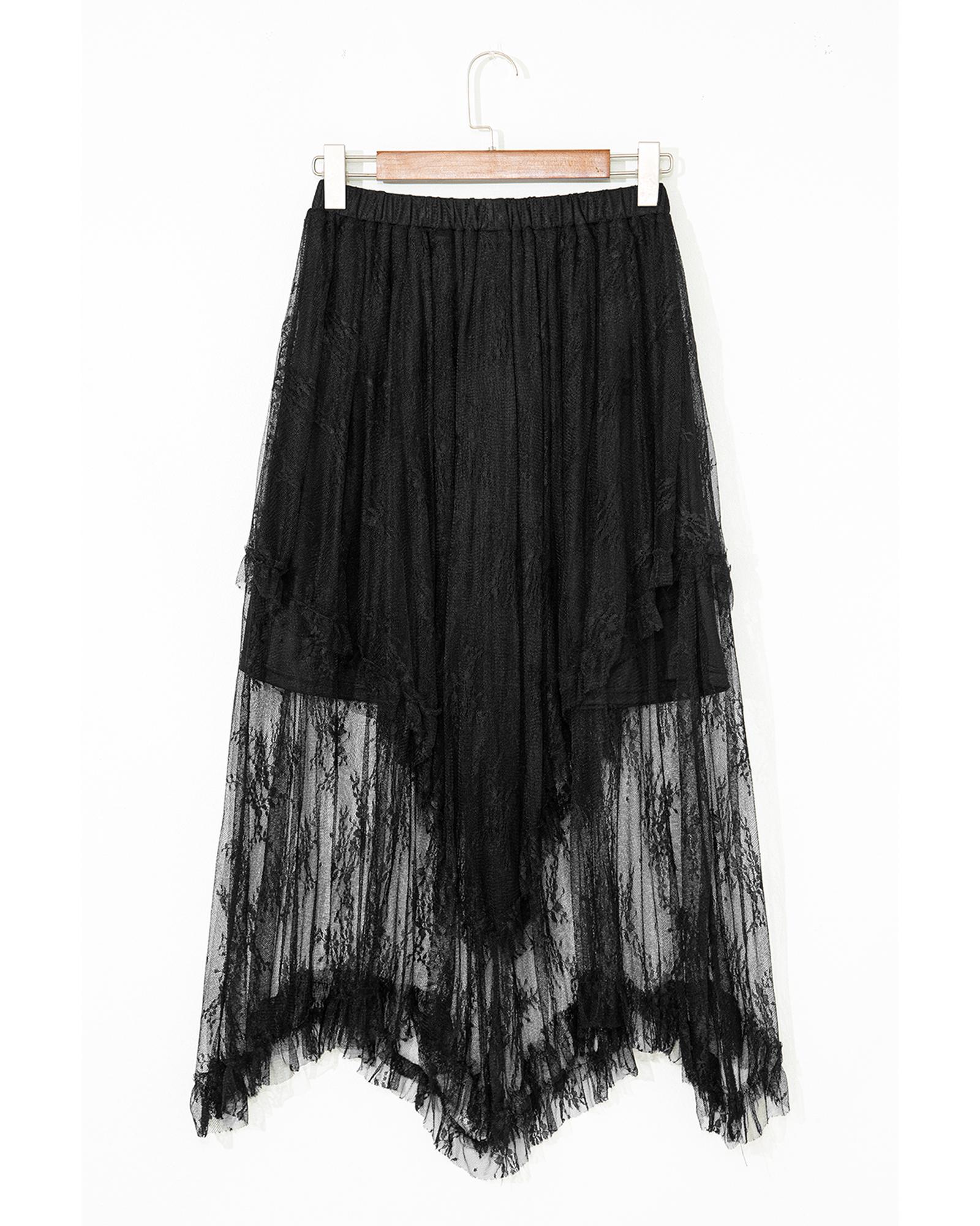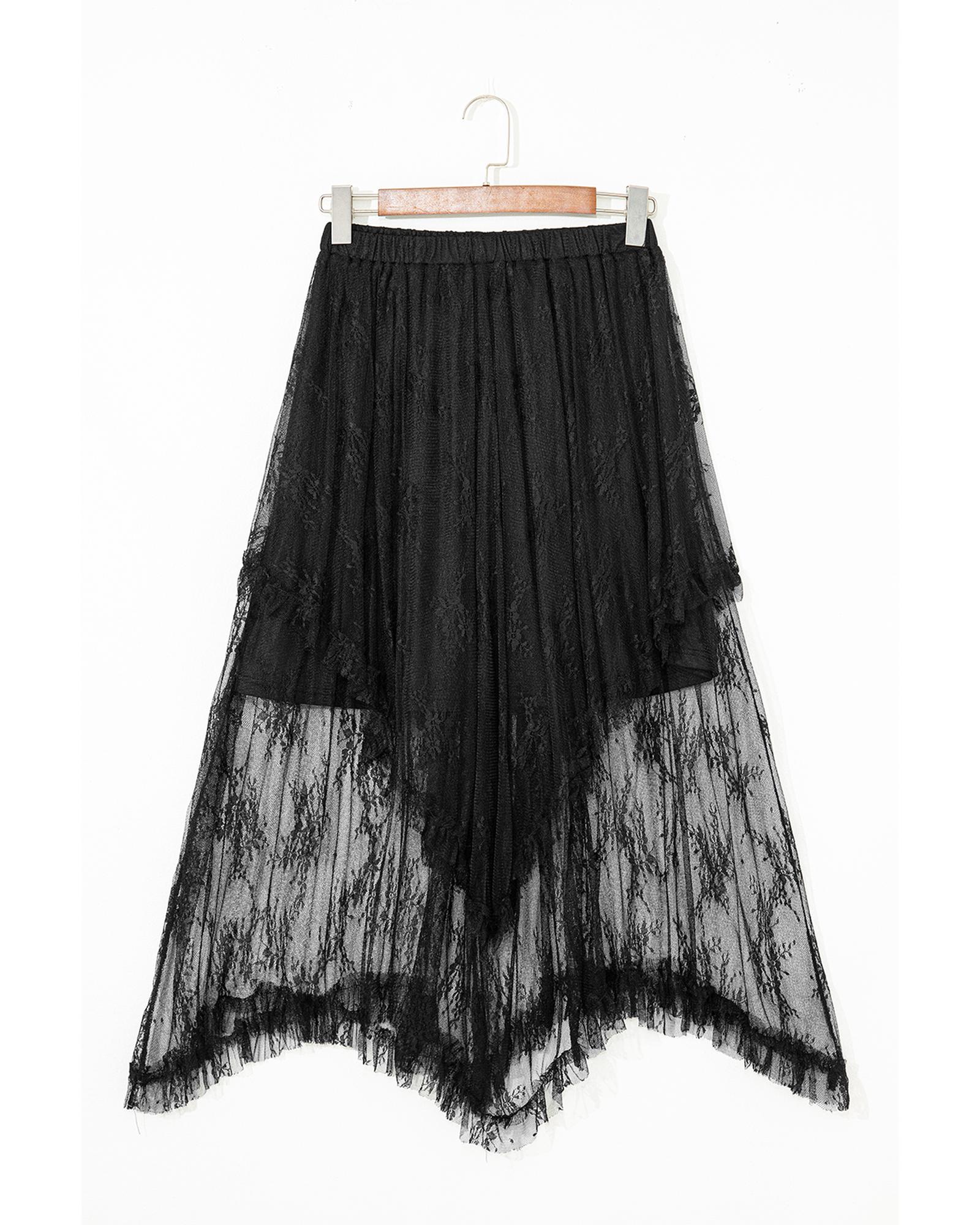 Black Lace Cascading Tiered High Waist Maxi Skirt – M