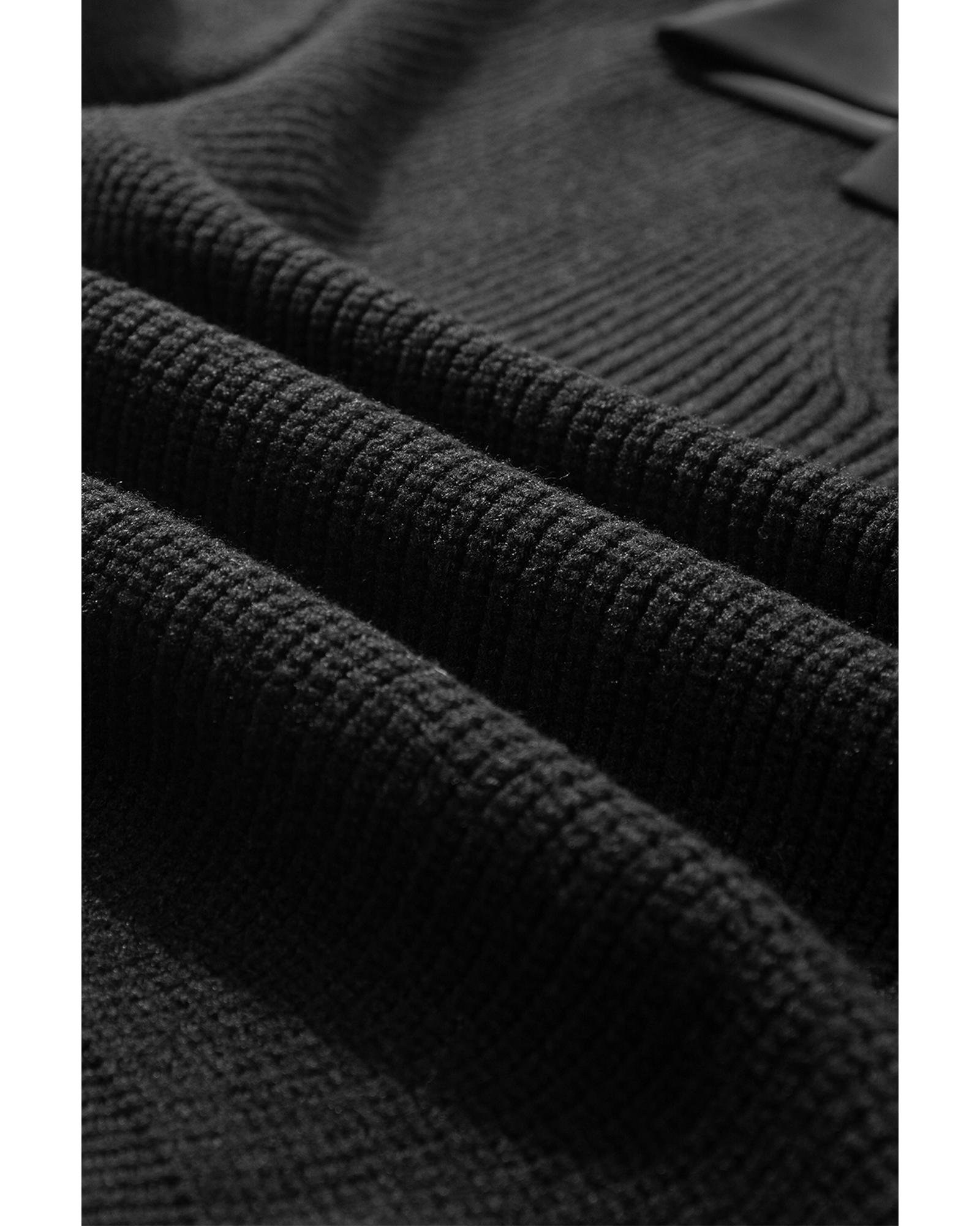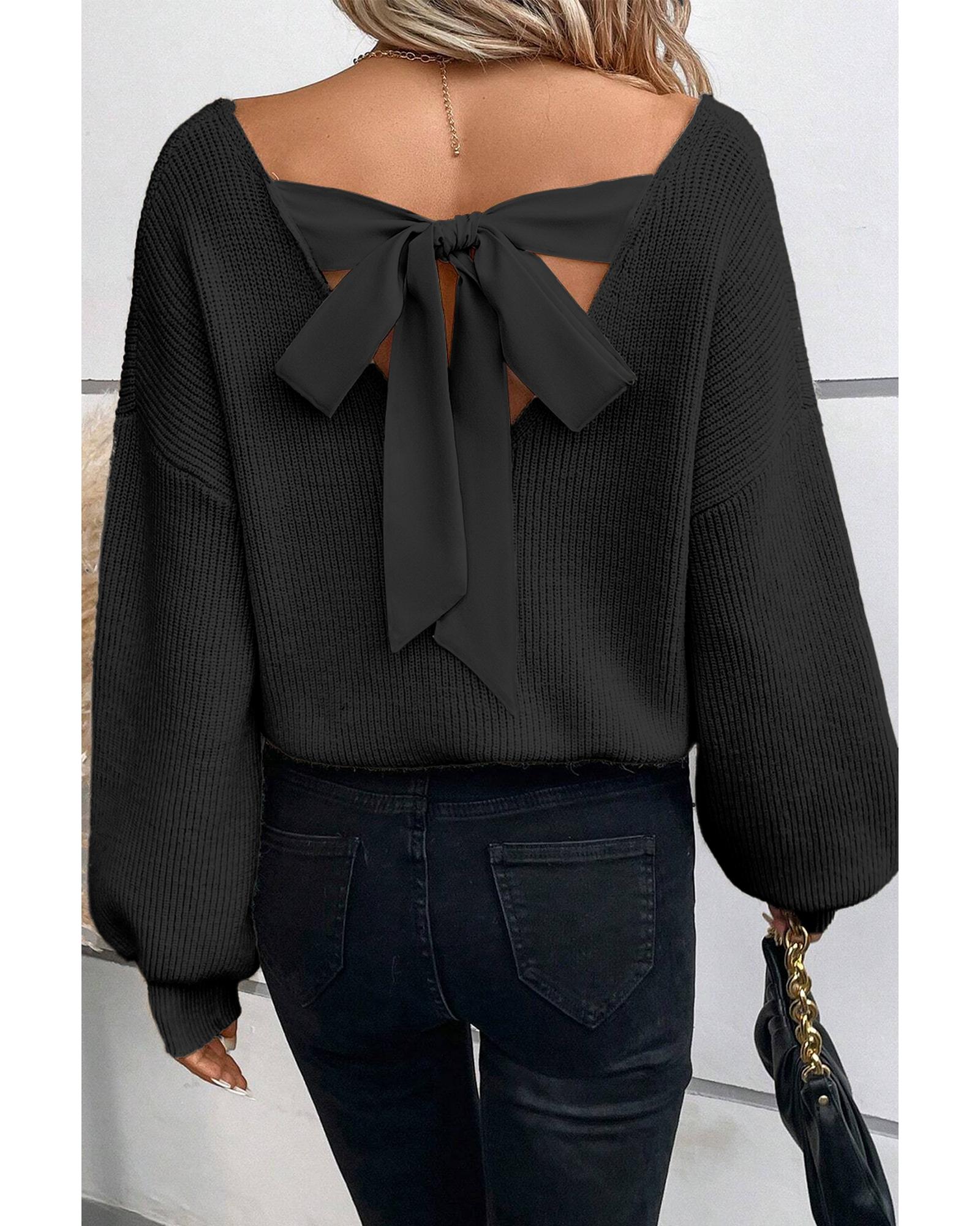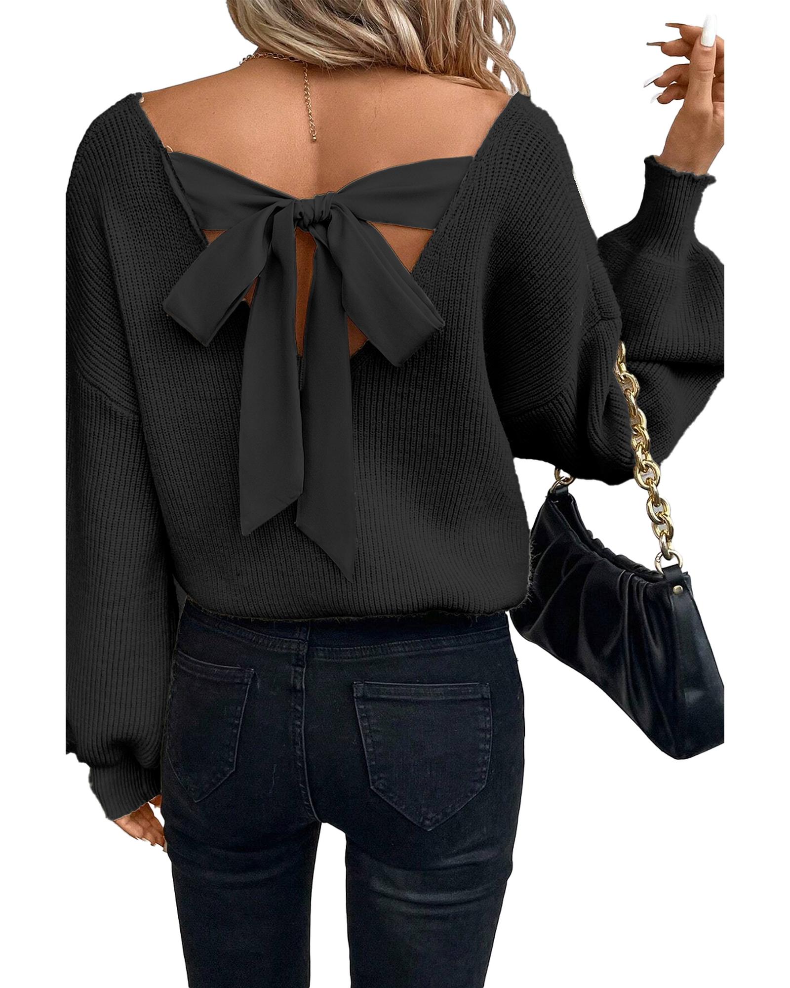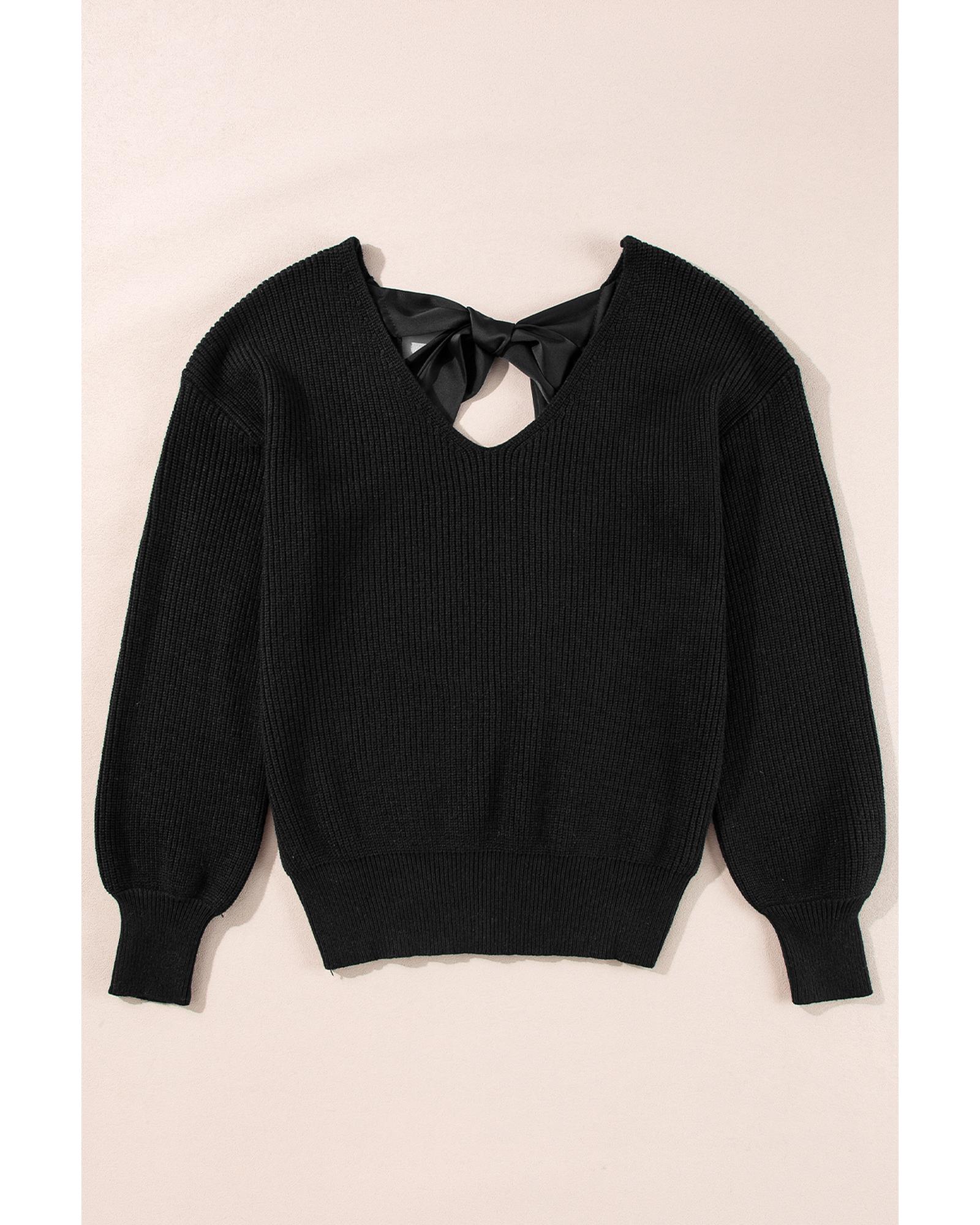 Black Lantern Sleeve V Neck Knot Back Sweater – L