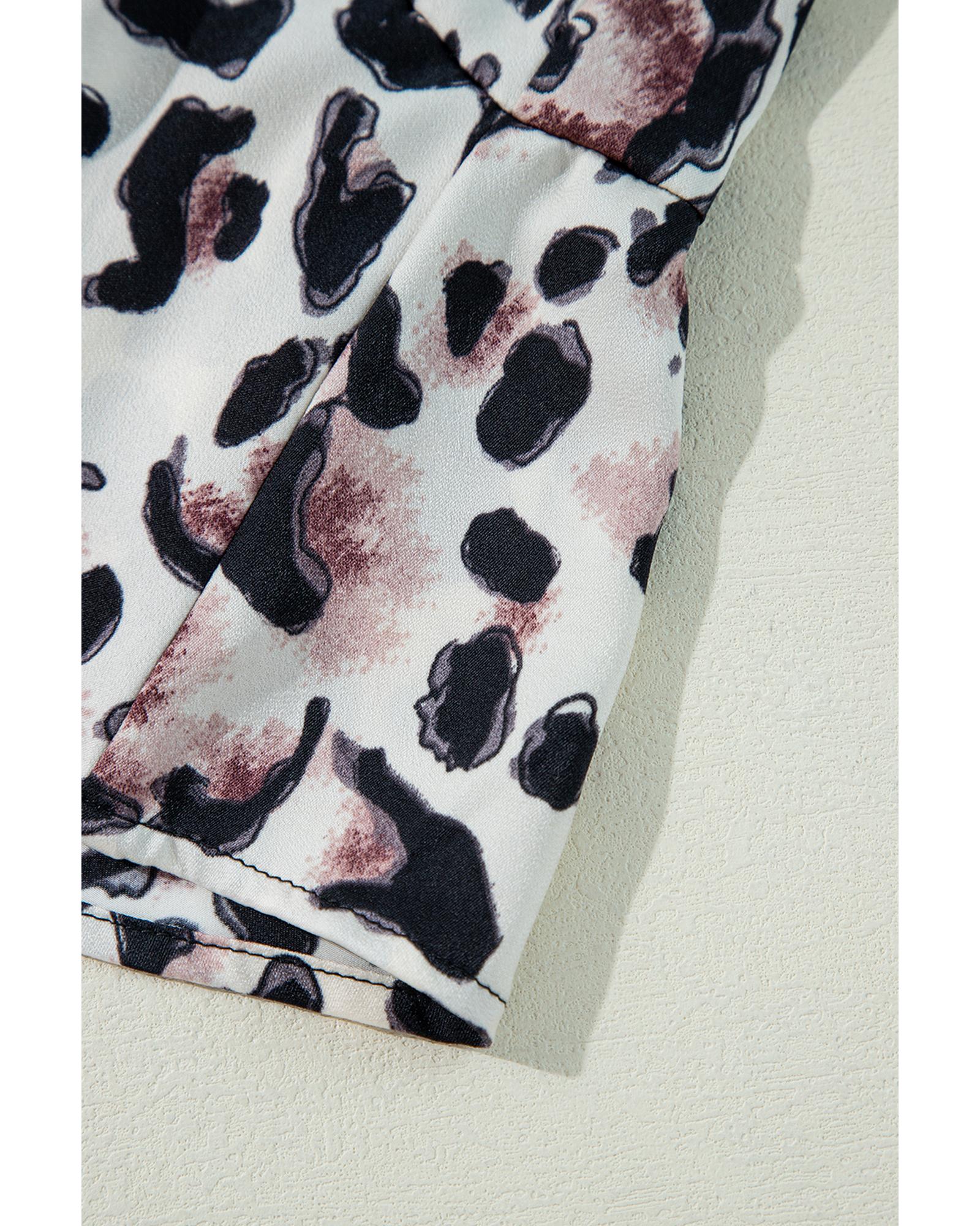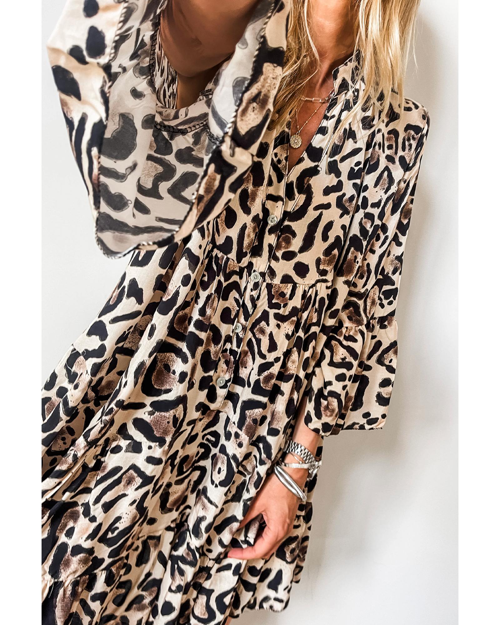 Black Leopard Print Buttoned Front 3/4 Sleeve Tiered Ruffled Hem Dress - M Original price was: $76.99.Current price is: $41.99.