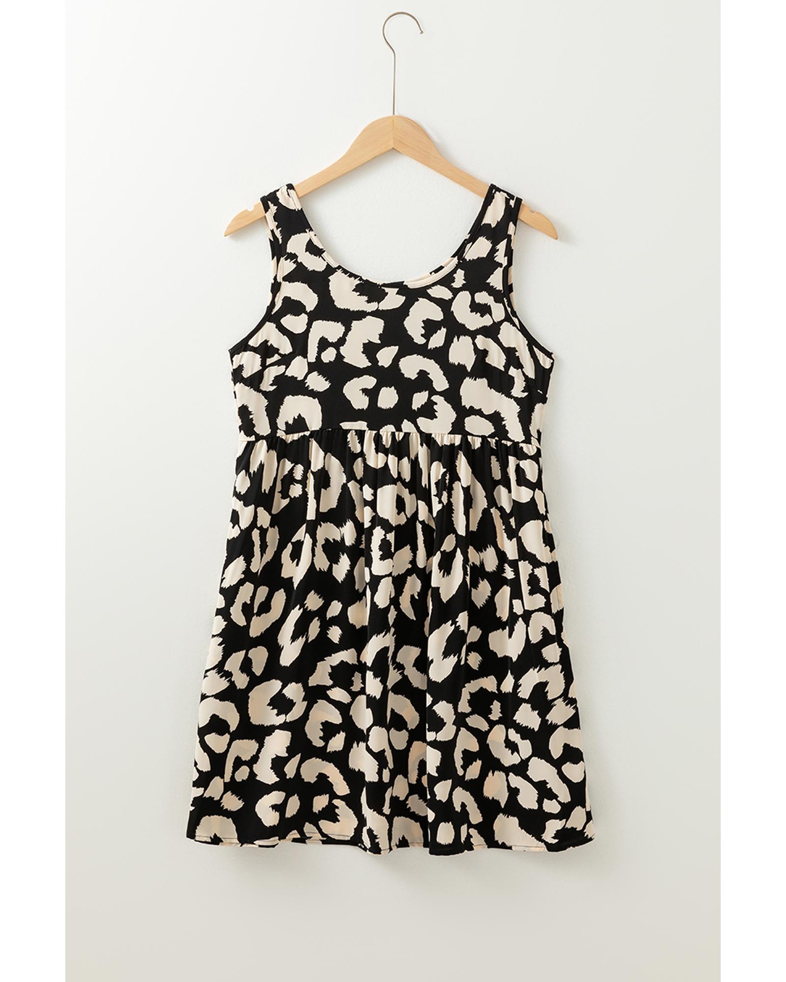 Black Leopard Print U Neck Sleeveless High Waist Dress – S