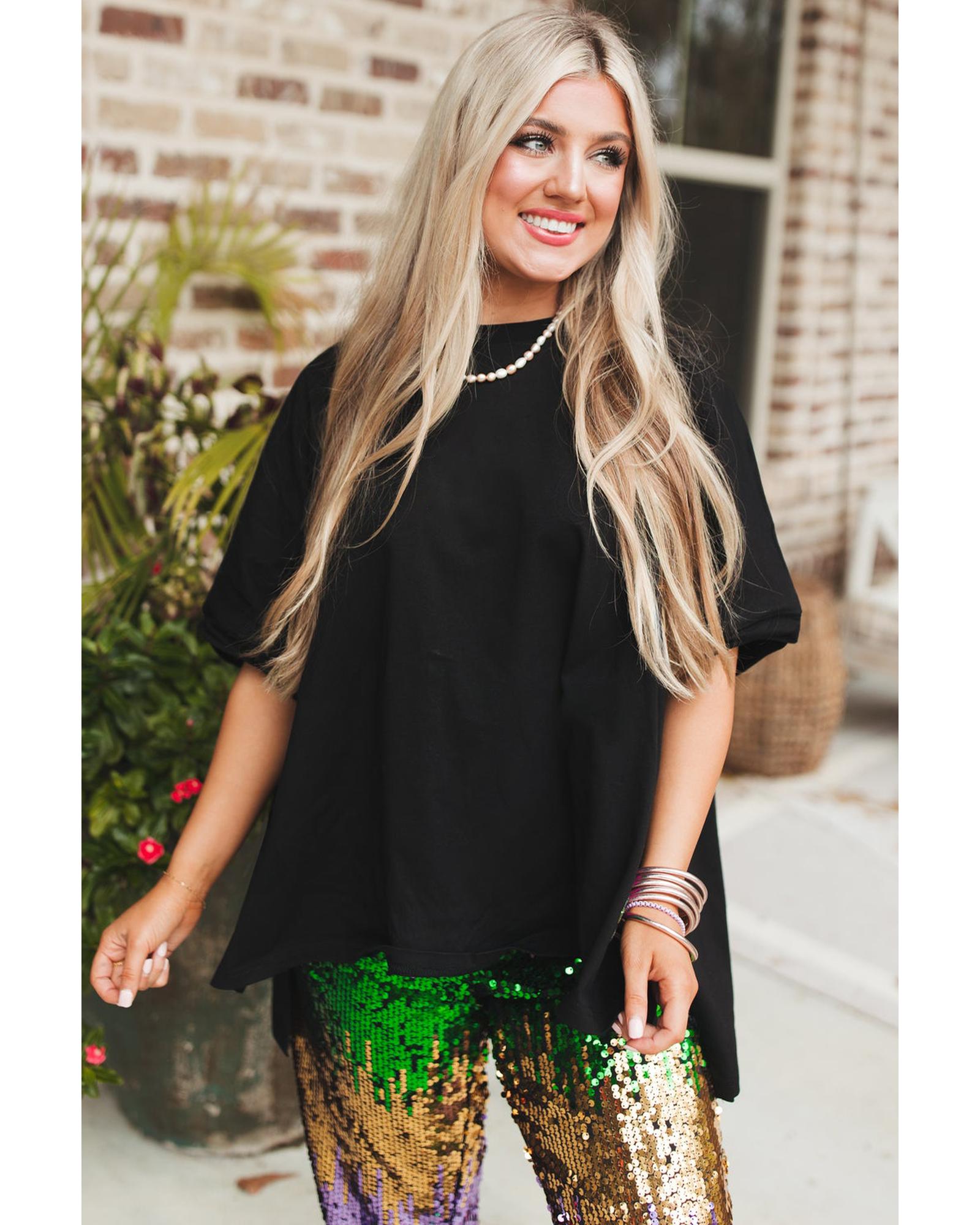 Black Loose Half Sleeve Hi Low Hem T Shirt – M