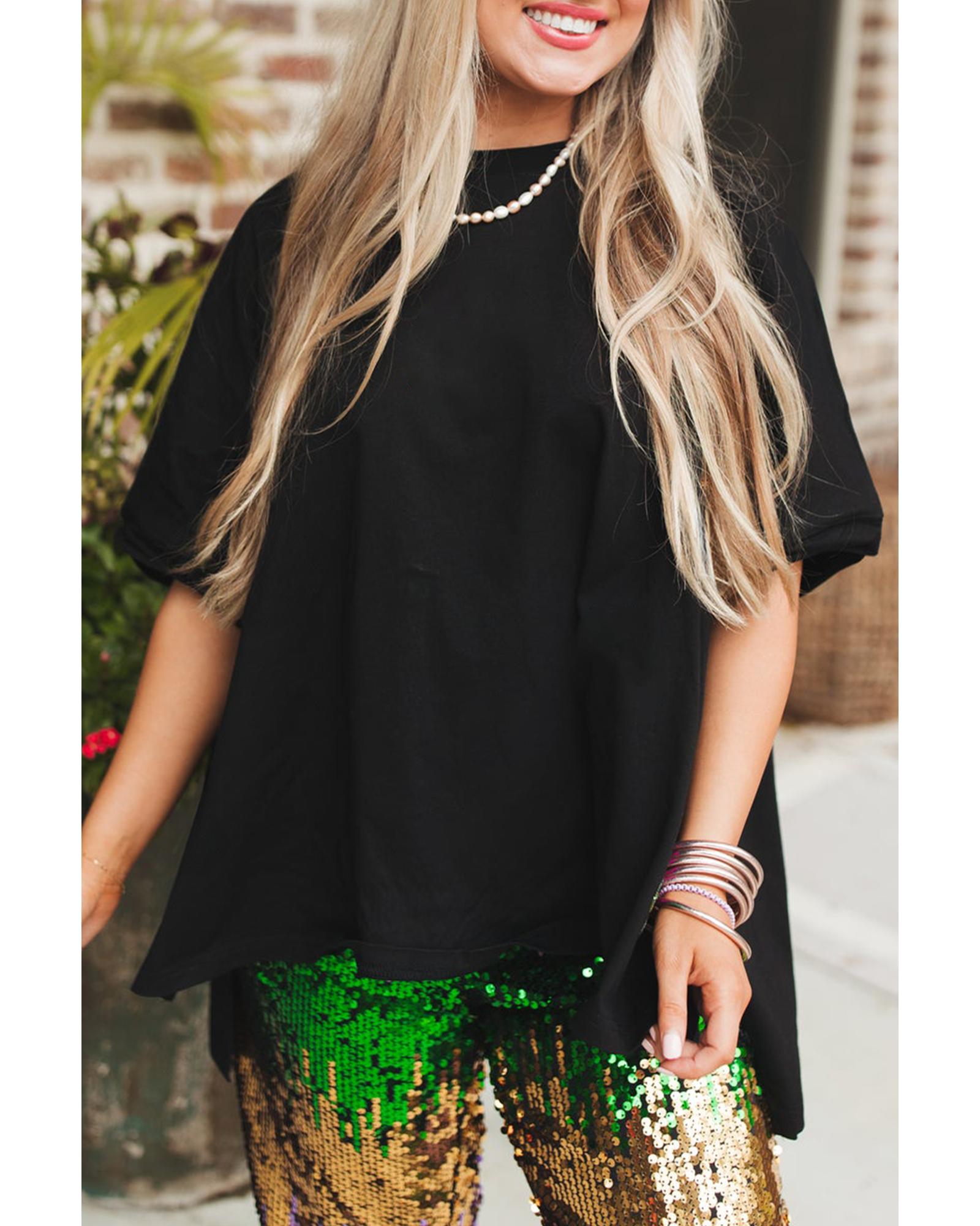 - Black Loose Half Sleeve Hi Low Hem T Shirt