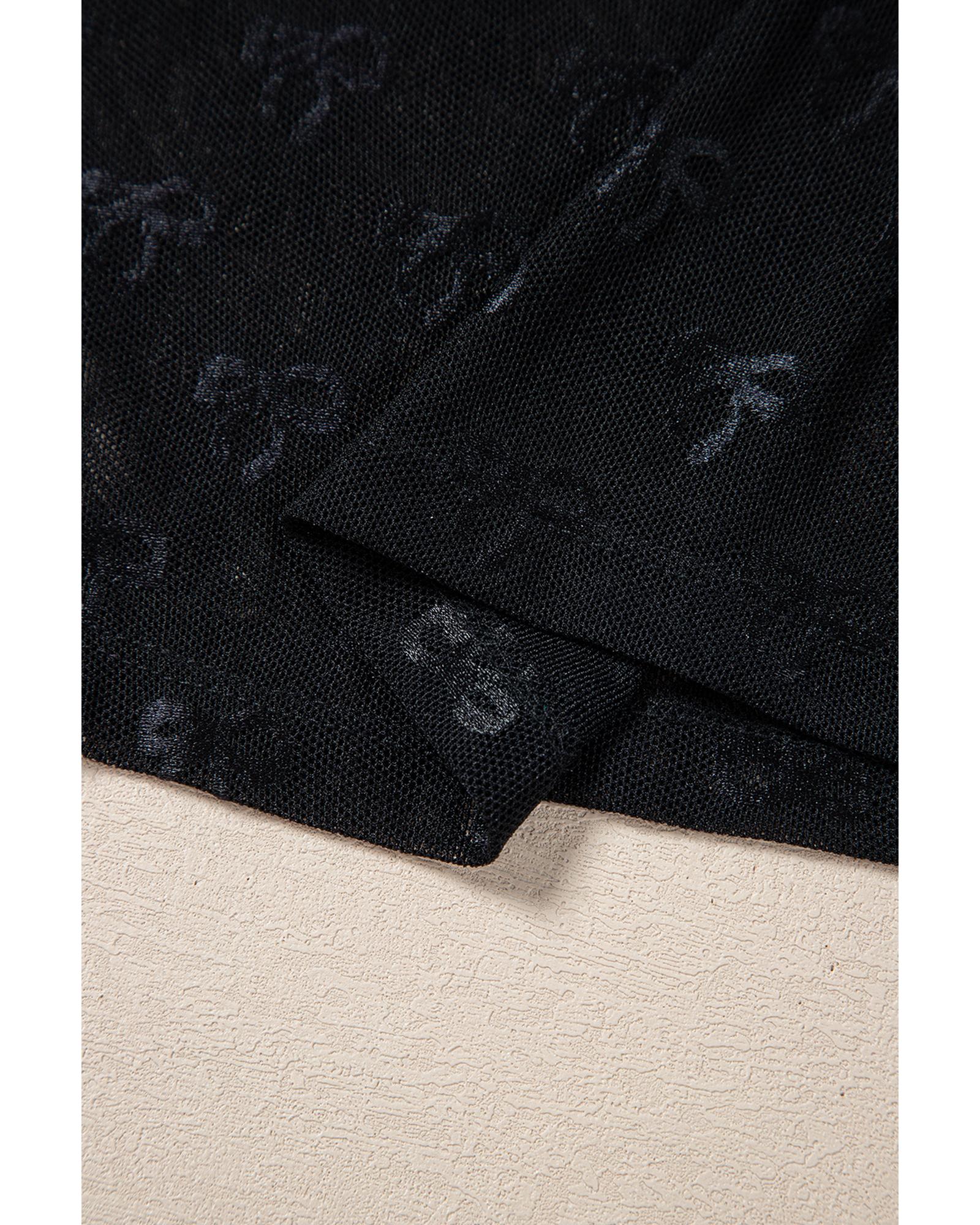 Black Mesh Bow Pattern Long Sleeve Top – L