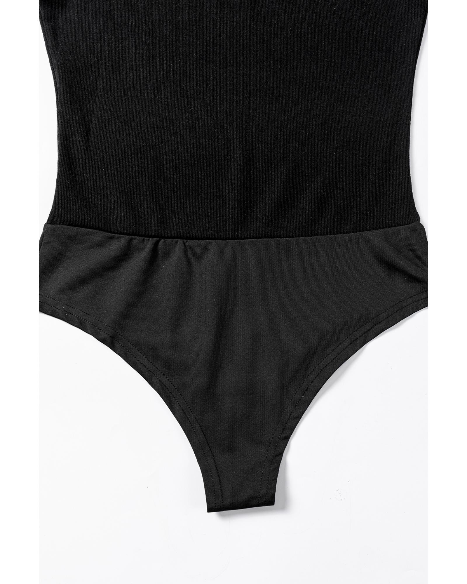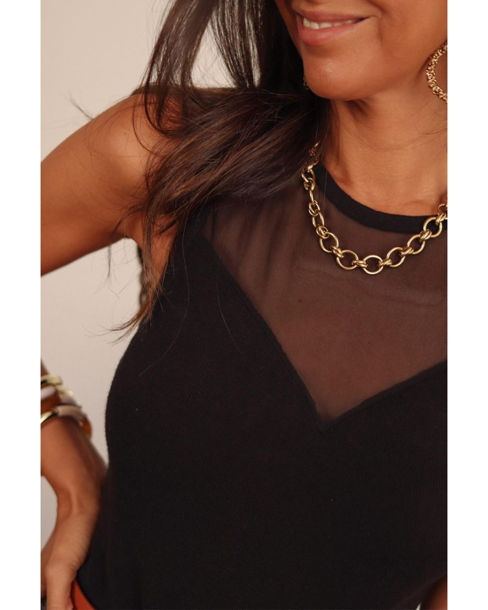 - Black mesh patchwork sleeveless bodysuit