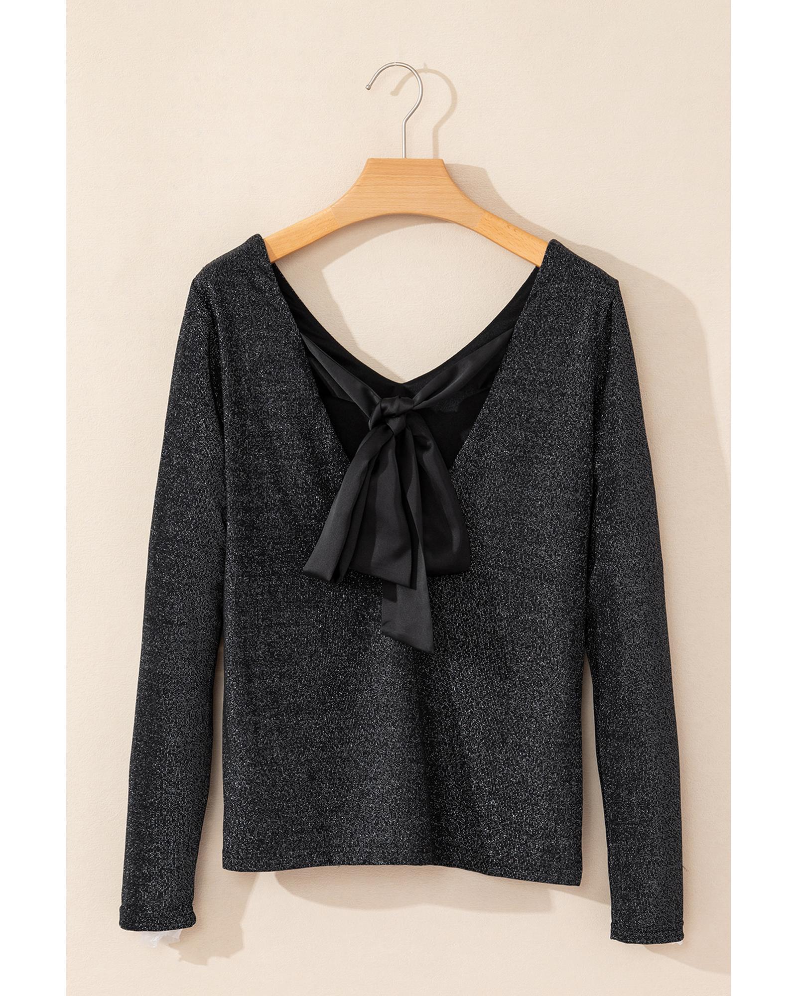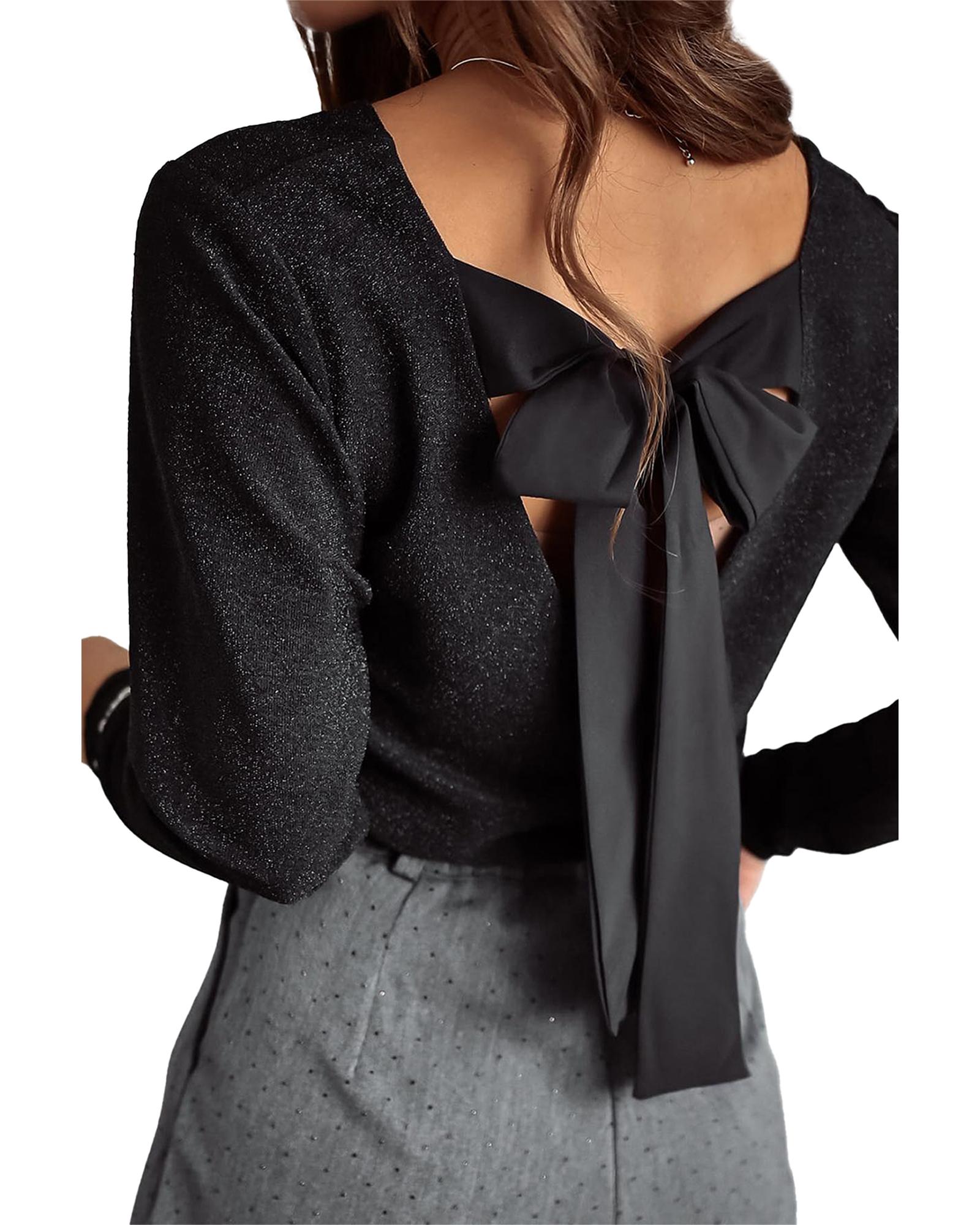 Rose Red Metallic Frilled V Neck Puff Sleeve Babydoll Blouse - M