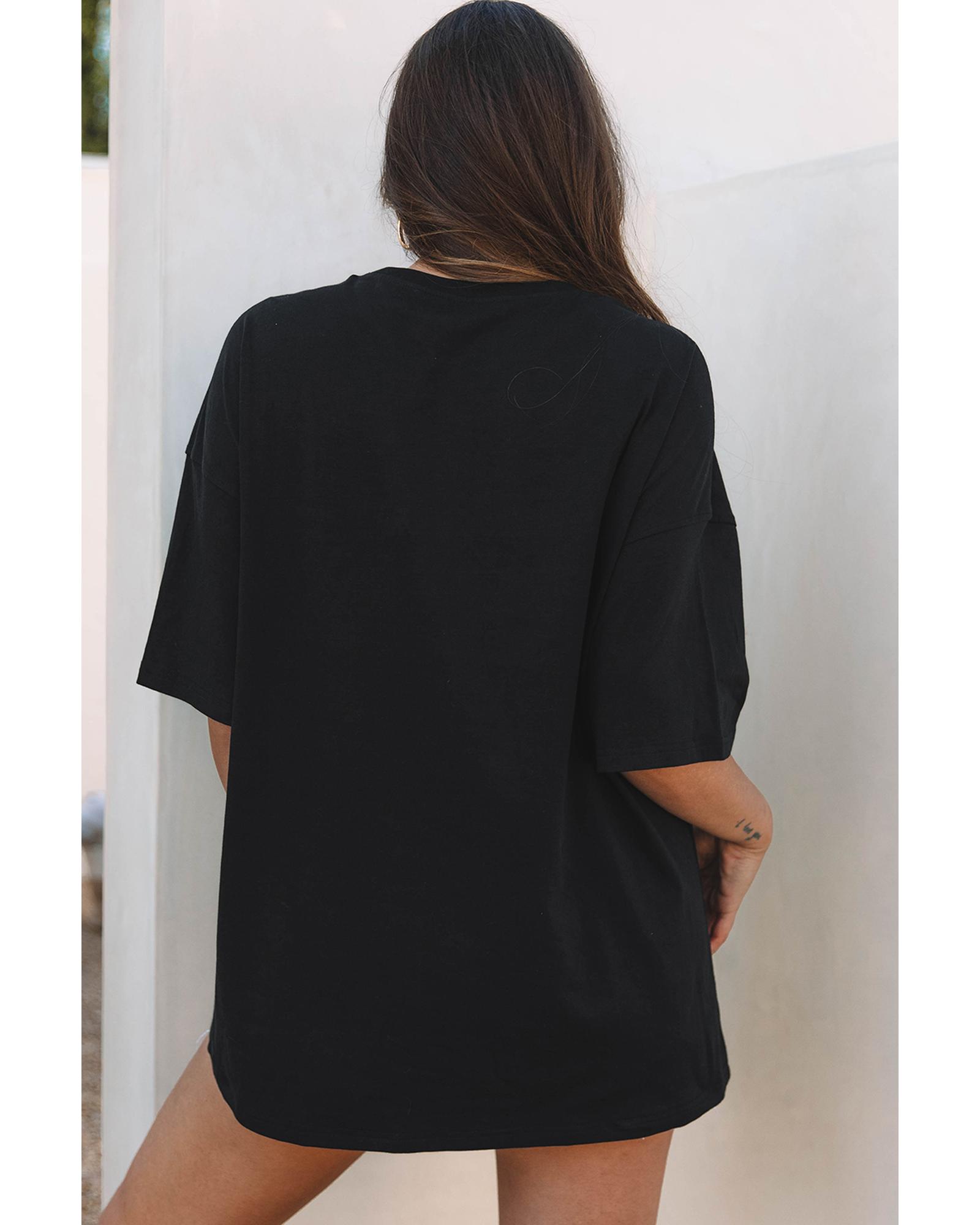 Black Western Fashion Checkerboard Print Side Split T Shirt - S