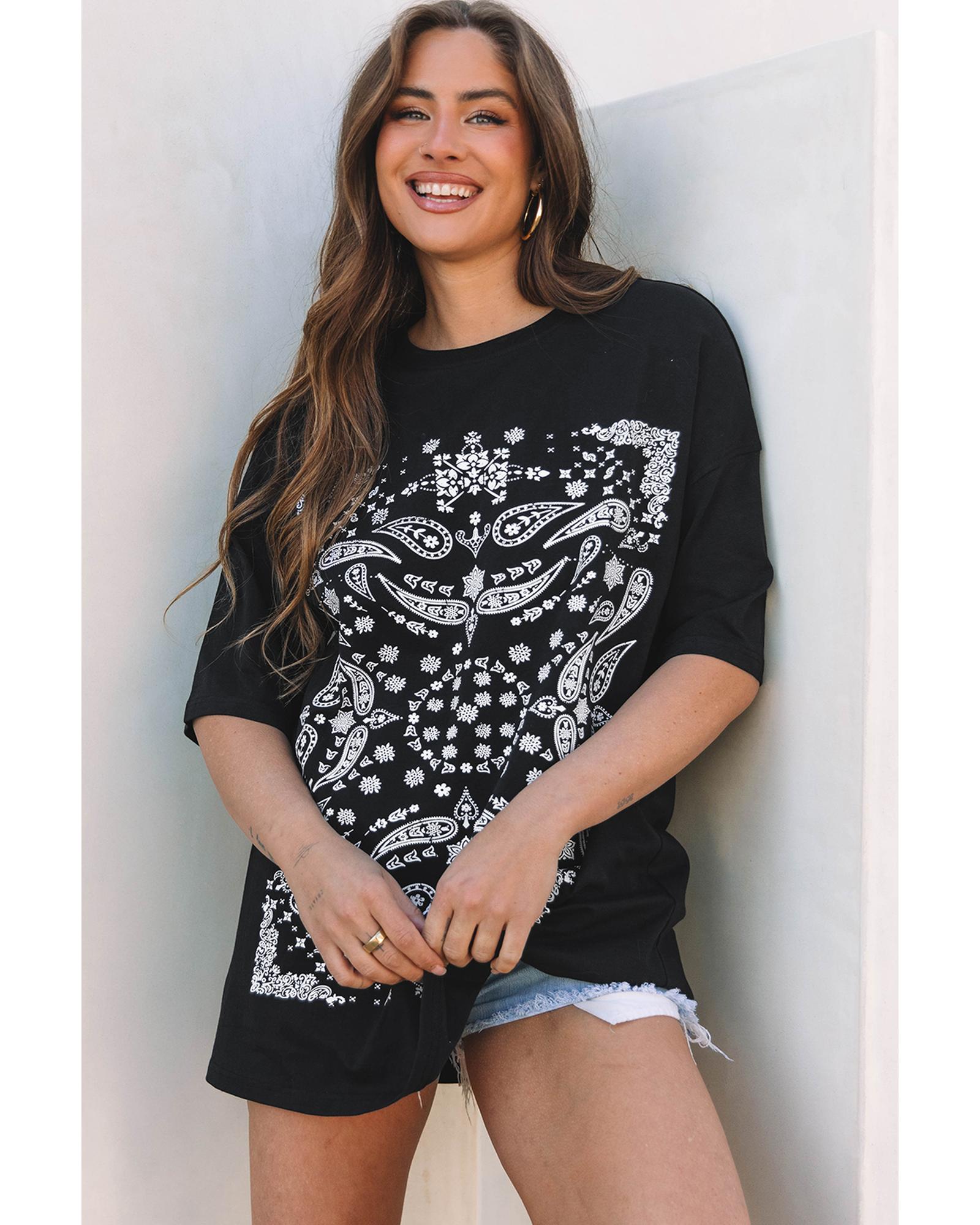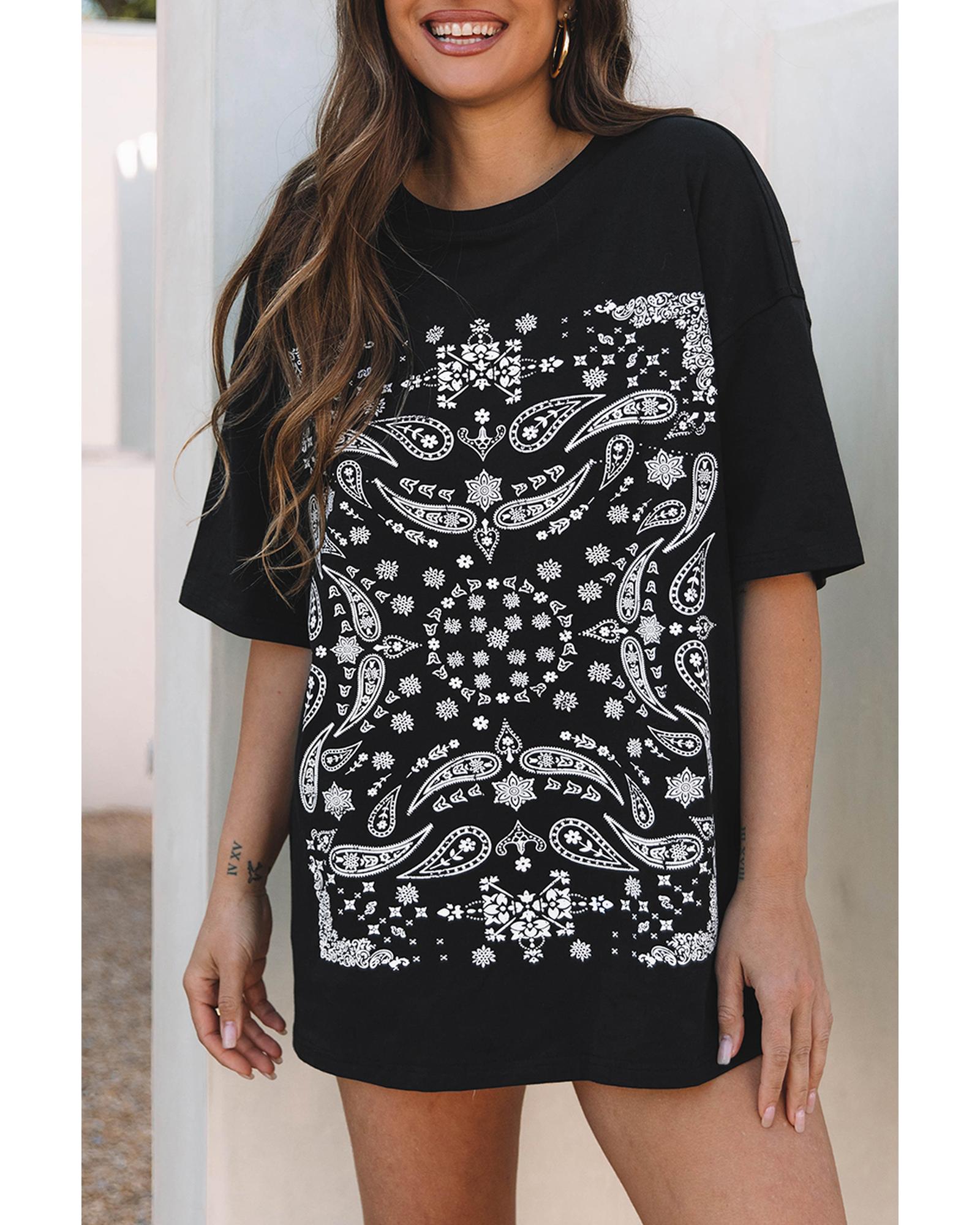 - Black Paisley Print Crew Neck Loose Fit Tunic Tee