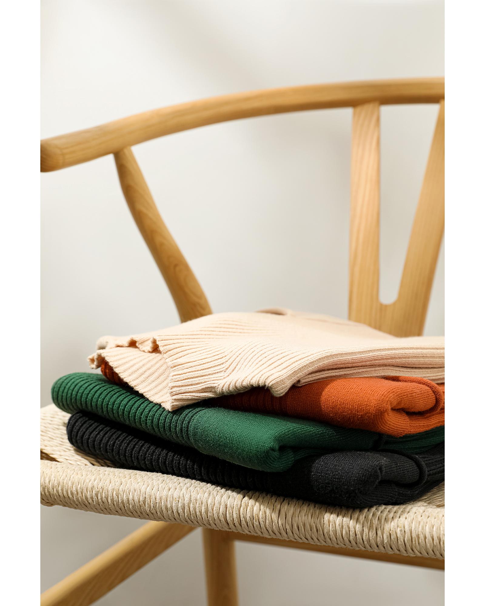 Green Color Block Striped Buttoned Shoulder Split Sweater - M