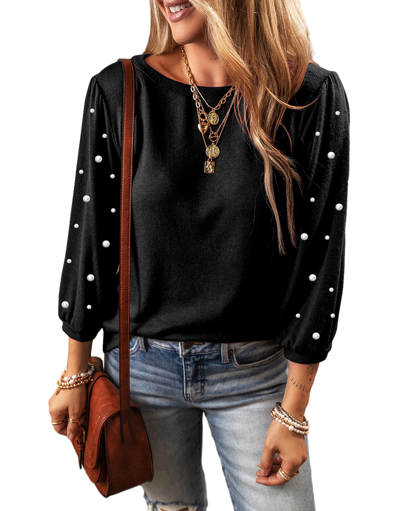 Black Pearl Decor 3/4 Sleeve Crew Neck T Shirt – L