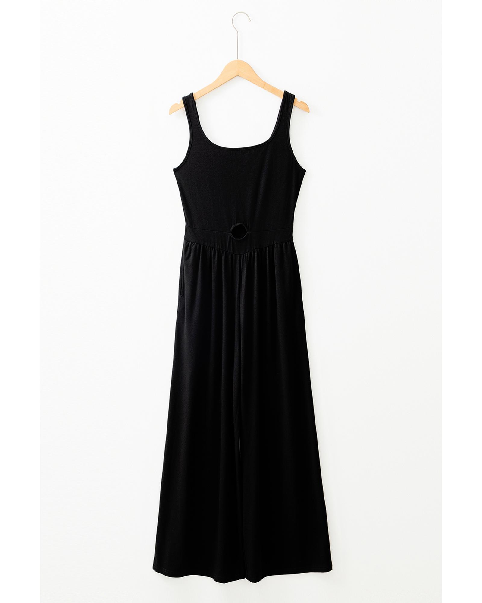 Black Peekaboo Wide Leg Square Neck Sleeveless Jumpsuit – L